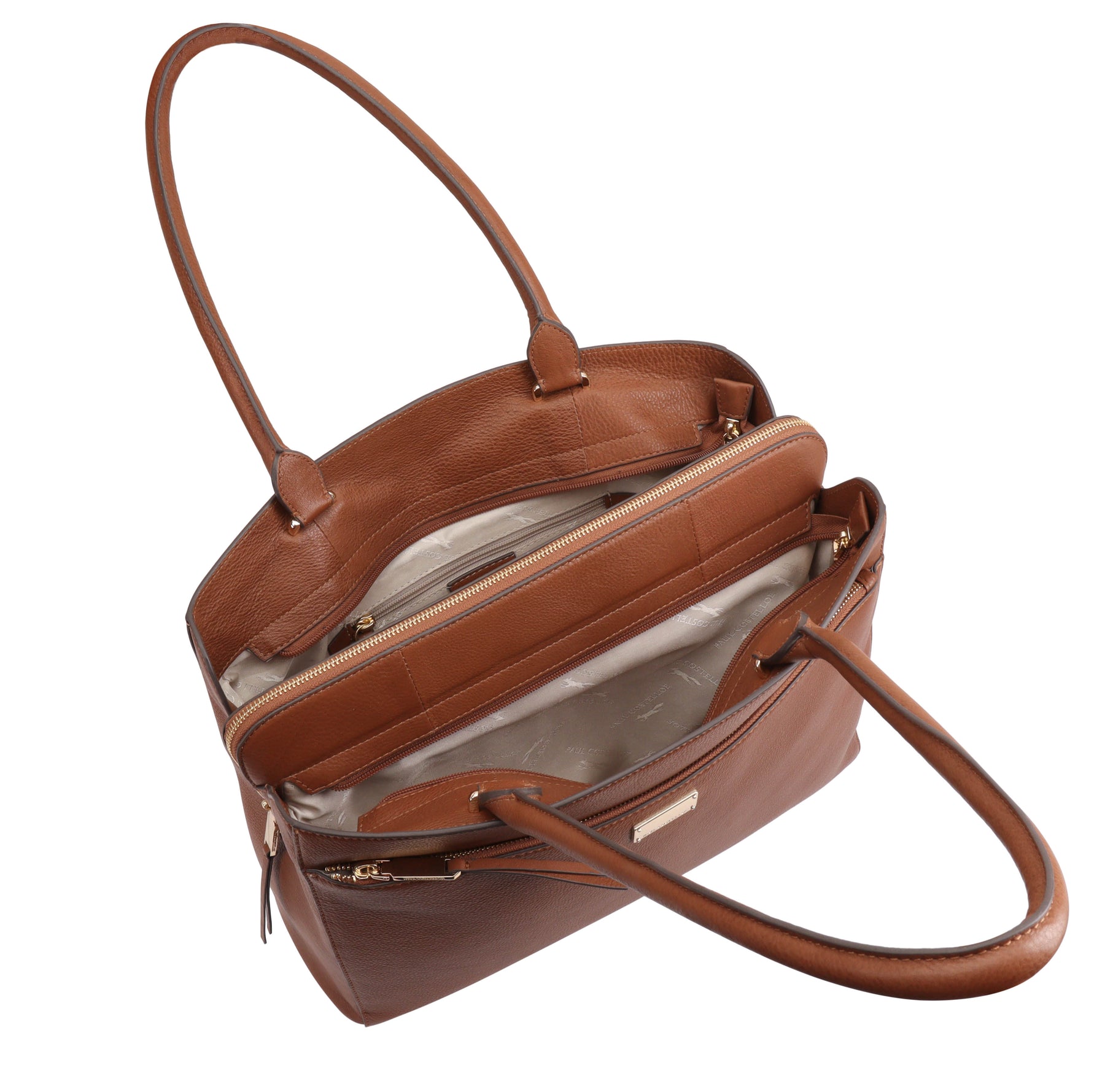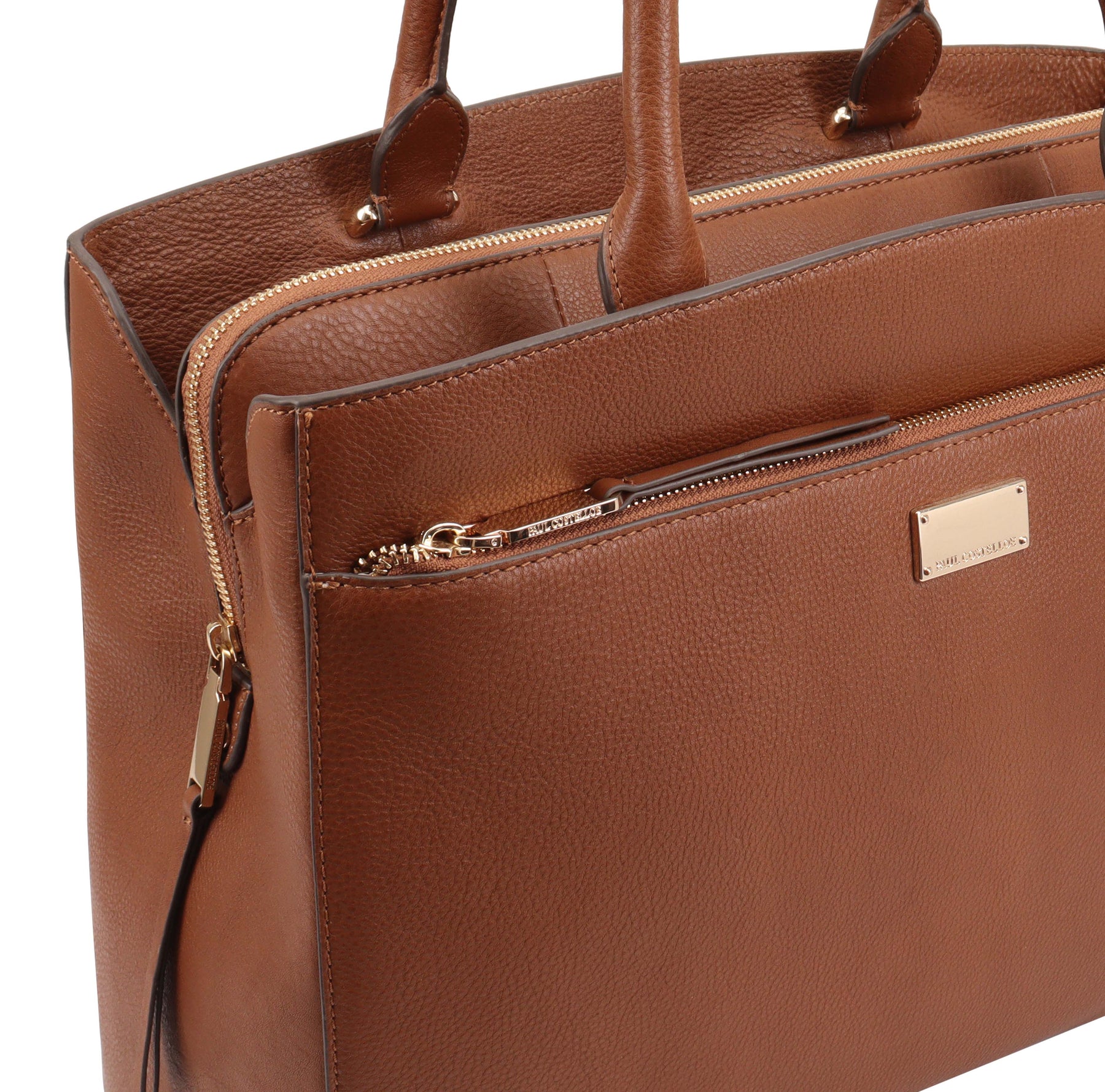 The Paul Costelloe HAARLEM is crafted from smooth leather, the structured tote is equipped with double-top handles suitable for laptops, four spacious main compartments and internal slip pockets to provide ample space for your essentials. D:13cm W:38cm H:30cm
