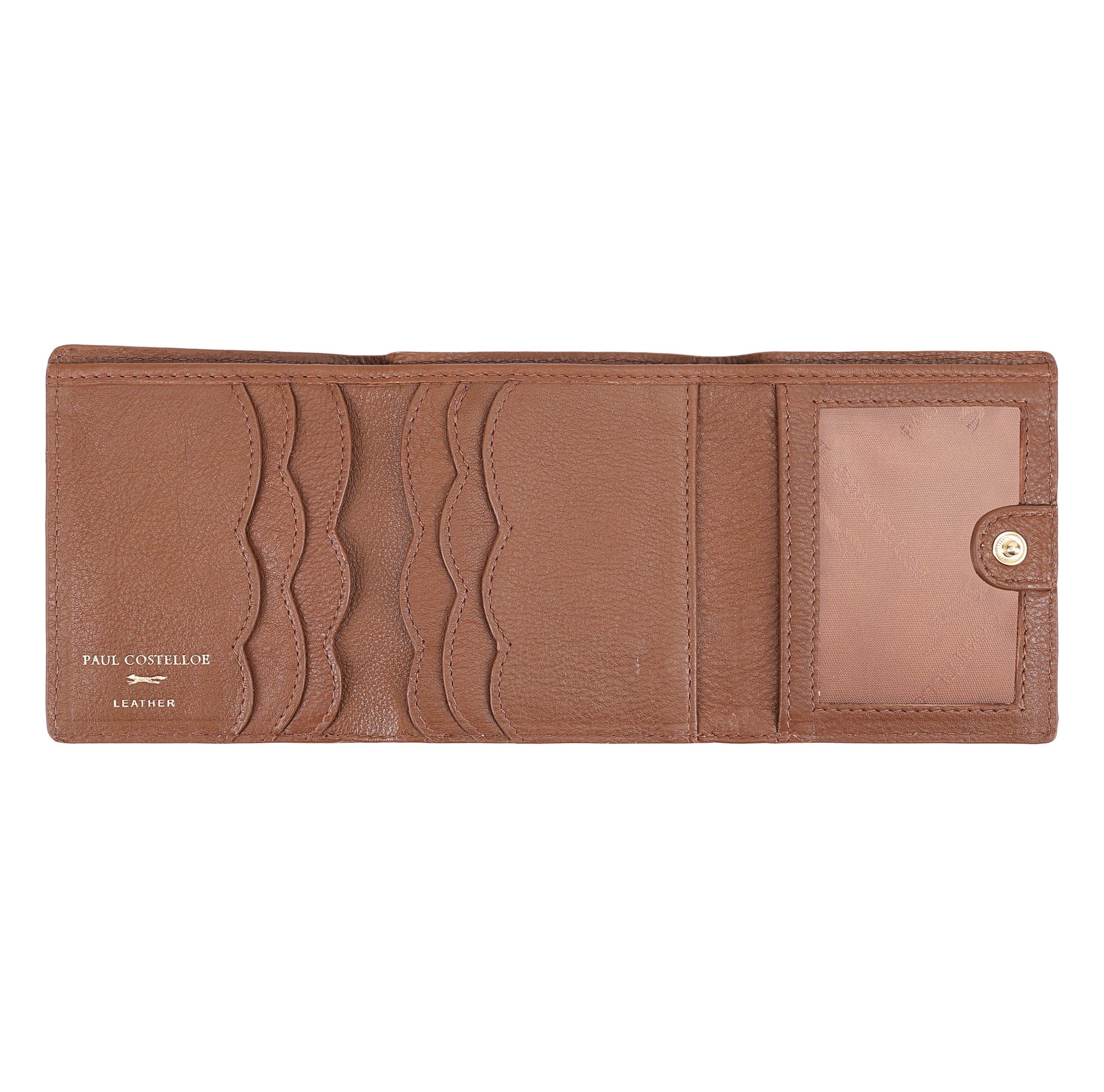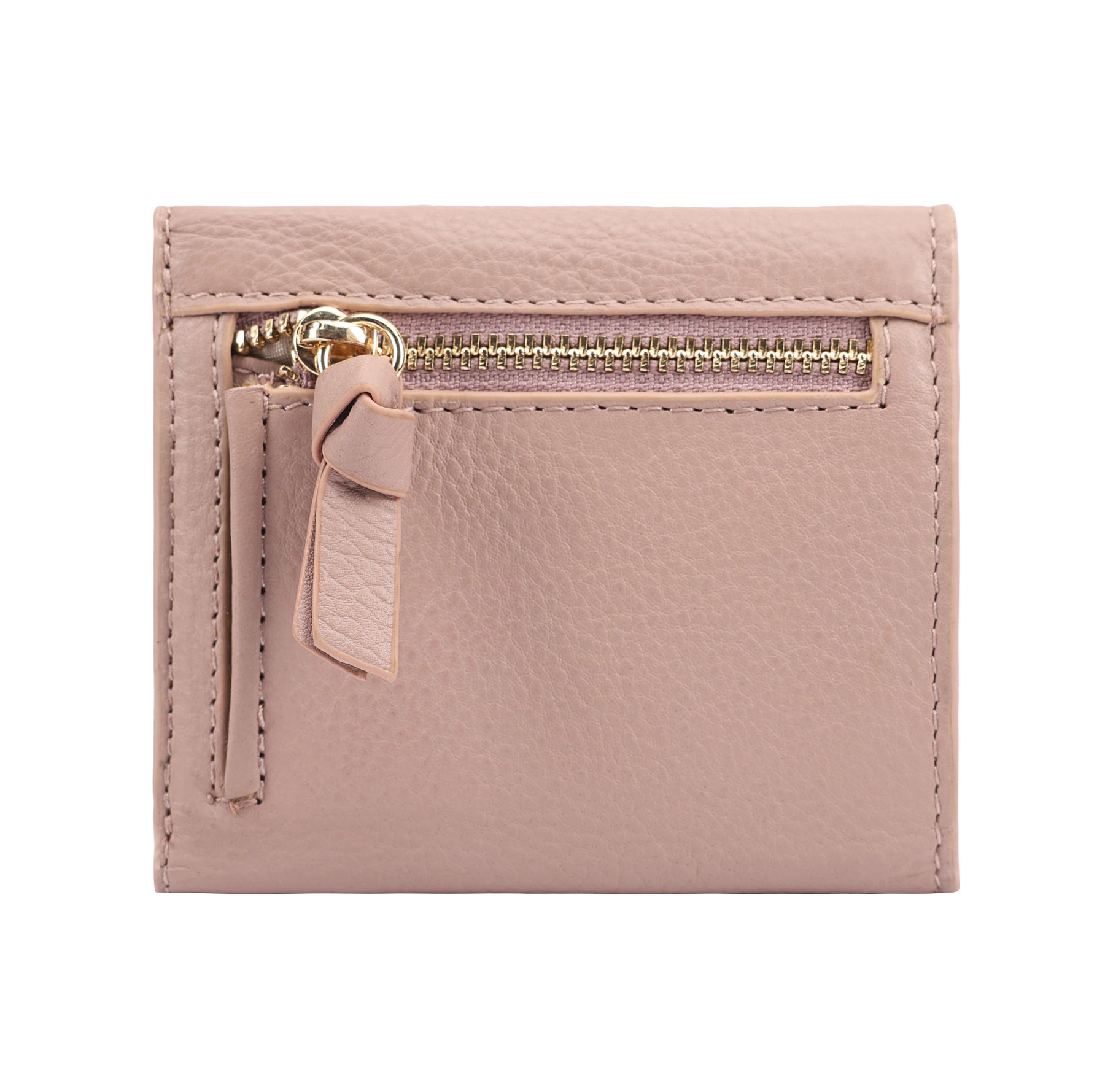 A stylish leather tri-fold card and note holder crafted from soft, supple leather, designed to keep your essentials effortlessly organized. It features a transparent ID slot for easy access while traveling, plus a discreet zipped pocket on the back for coins and small essentials. Compact, elegant, and perfect for carrying everything you need with ease and style. D:2.5cm W:10.2cm H:9.2cm