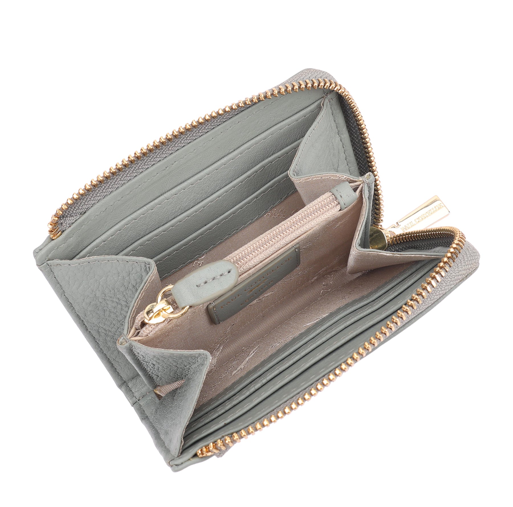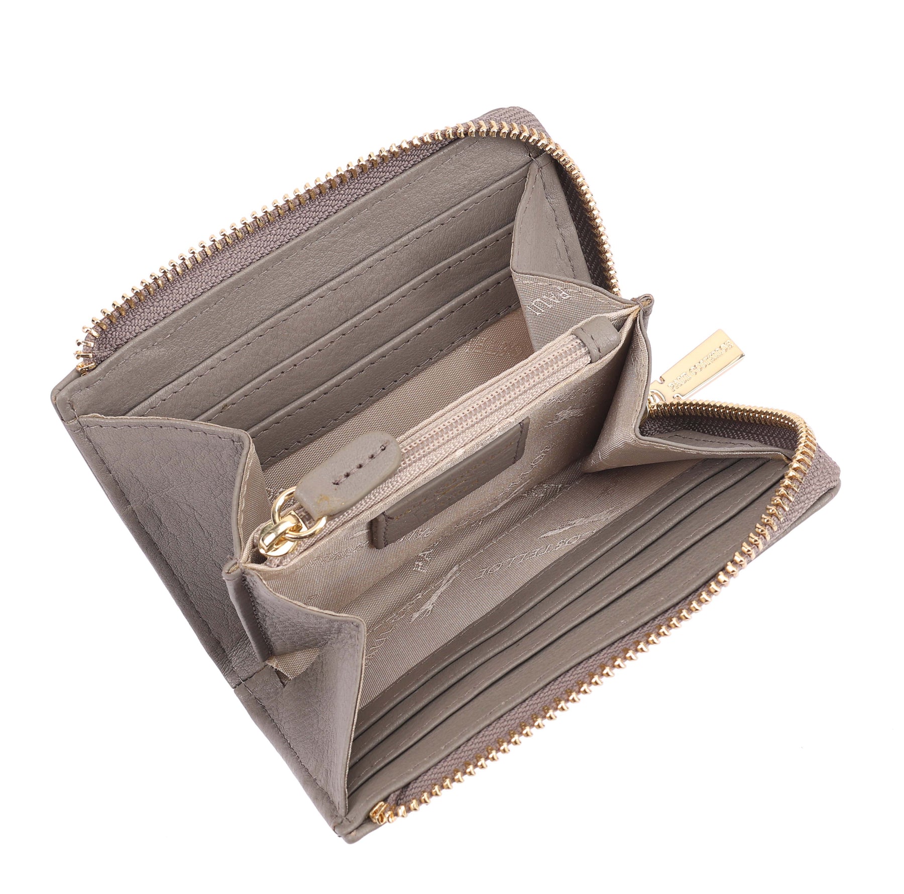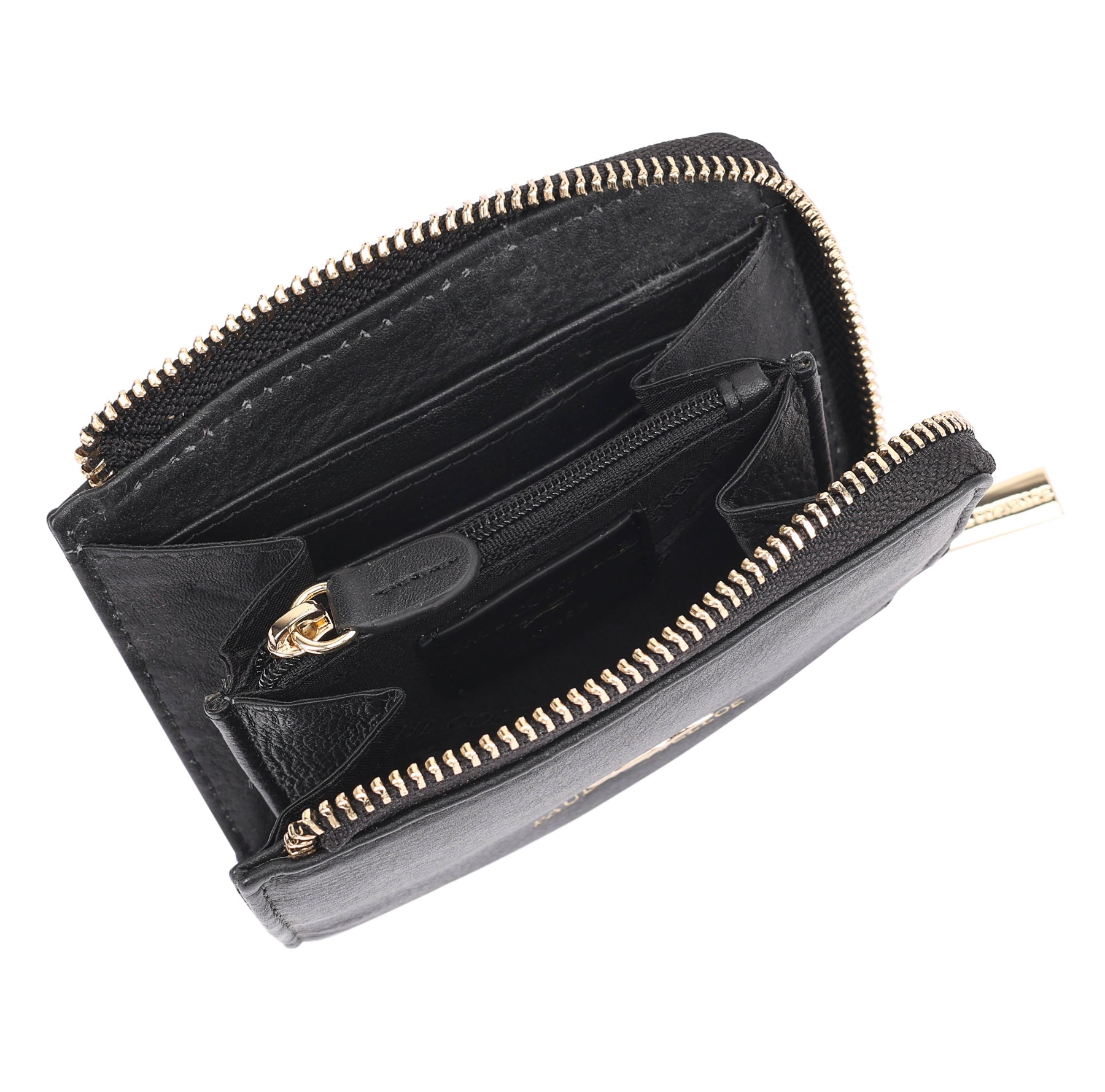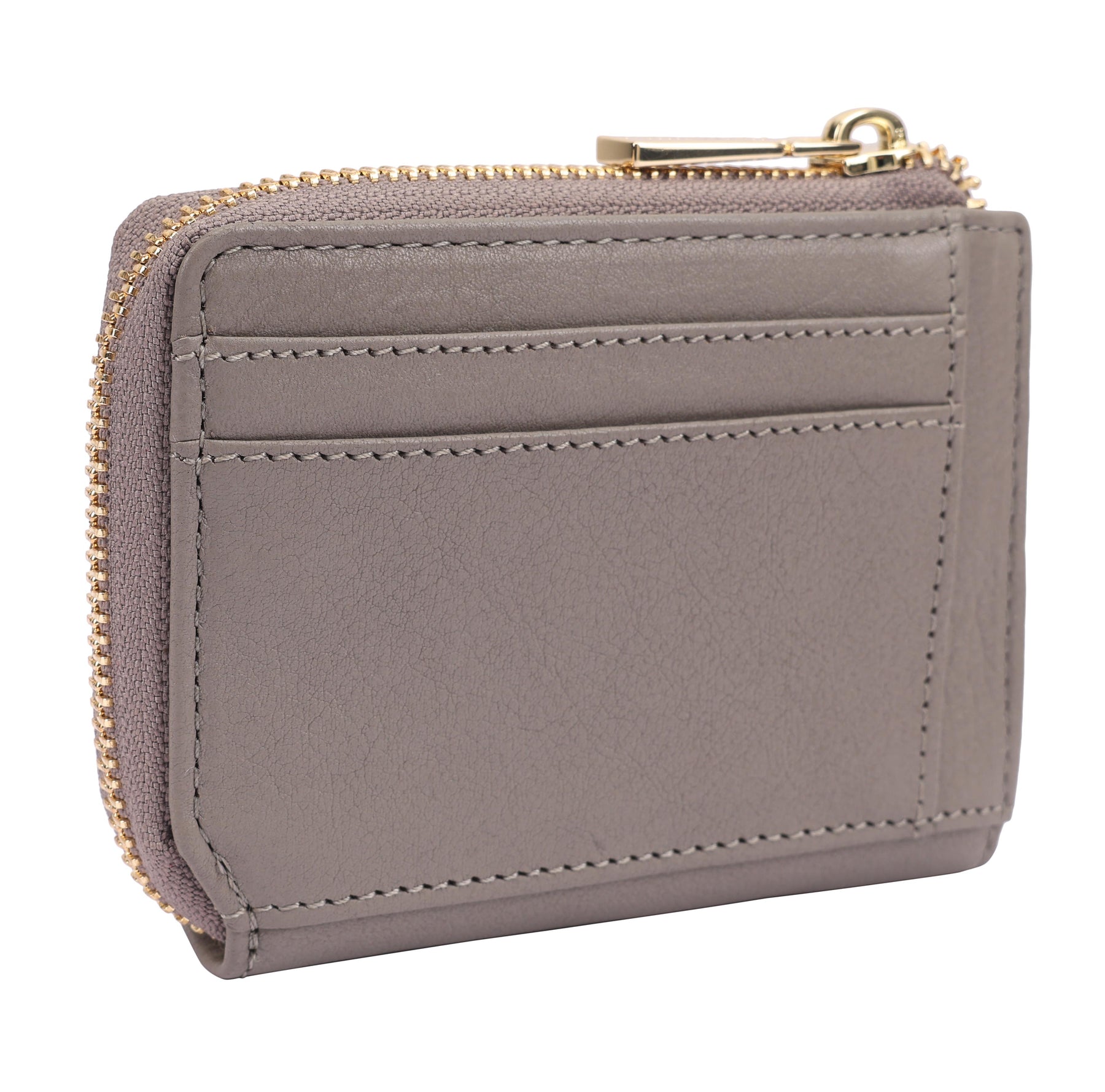 A small and compact leather purse crafted from smooth, supple leather for everyday ease. It features multiple card slots, a secure top zip closure, and an internal zipped pocket with two compartments on either side to keep essentials neatly organised. Three additional card slots on the outer back offer quick access on the go, making it a perfect everyday and travel companion. D:2.3cm W:12cm H:9cm