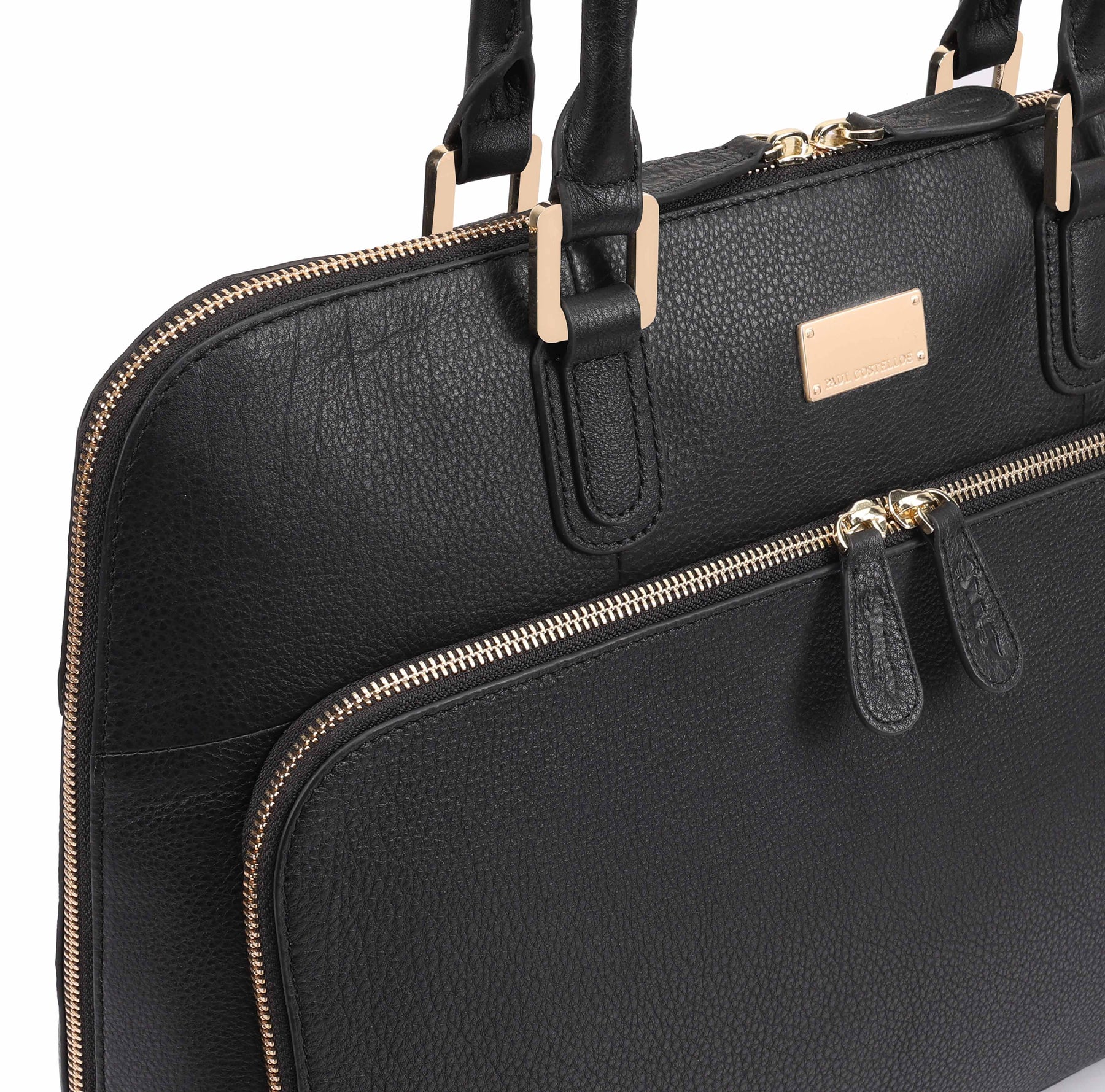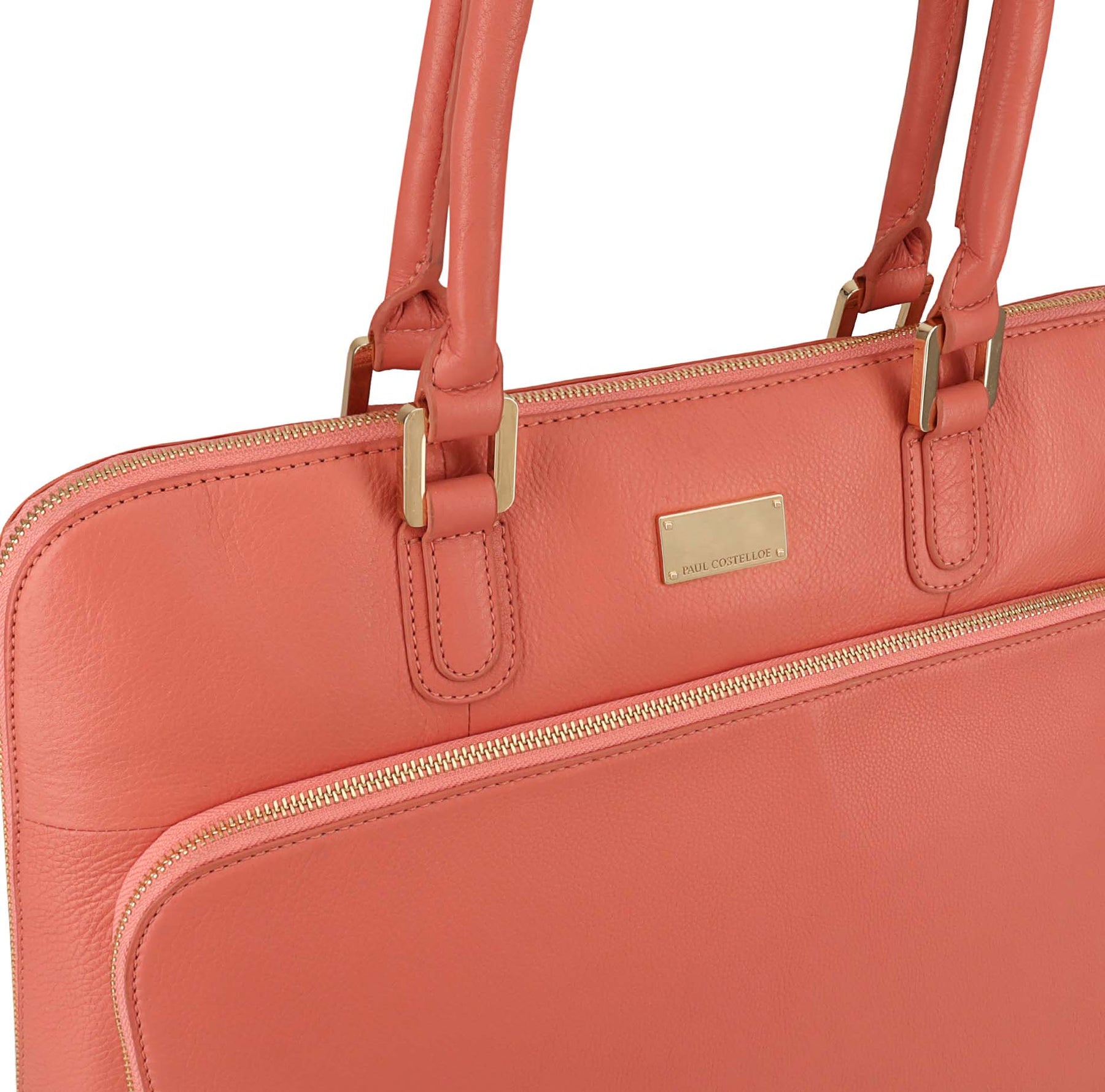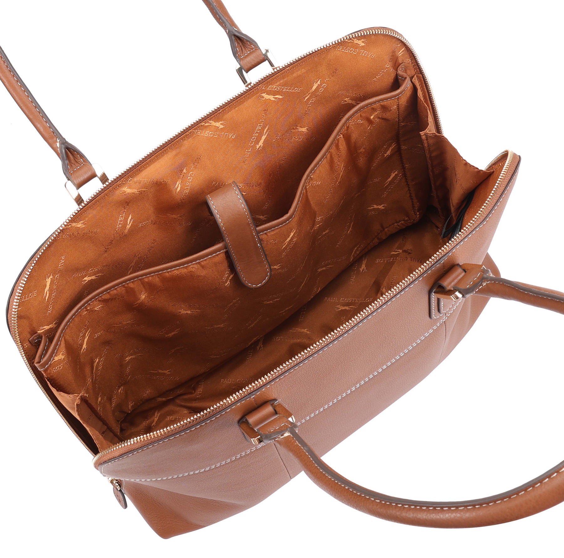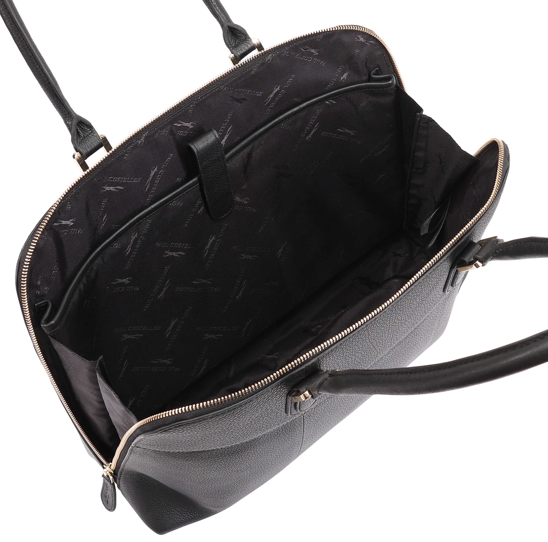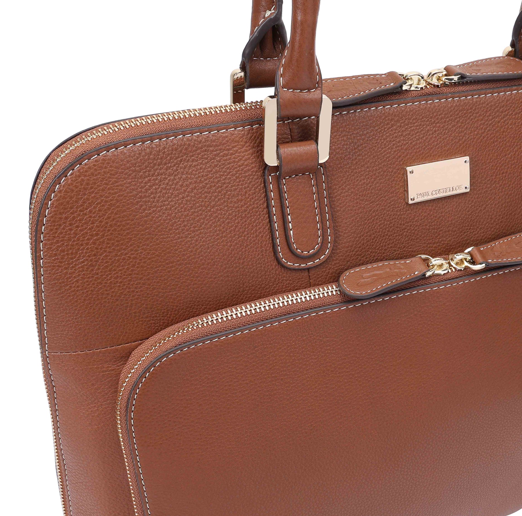 Paul Costelloe's the Filton is a brilliantly versatile choice. Boasting an organised interior, this business accessory is finished with our iconic charm and elegant gold finsihed hardware, making it an ideal office/ everyday companion. Crafted from luxurious pebble leather this chic accessory features a front zipped pocket to stash your phone, cards and cash. Main zipped pocket opens up to reveal a spacious interior with padded space to store your laptop/ tablet and a zipped compartment to keep your valuables safe. D:12cm W:36cm H:34cm