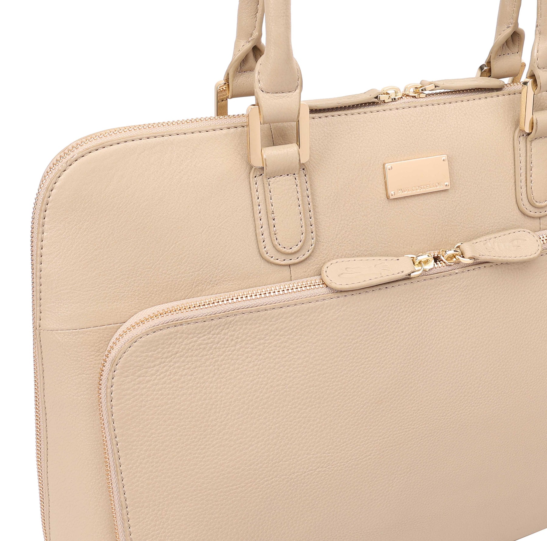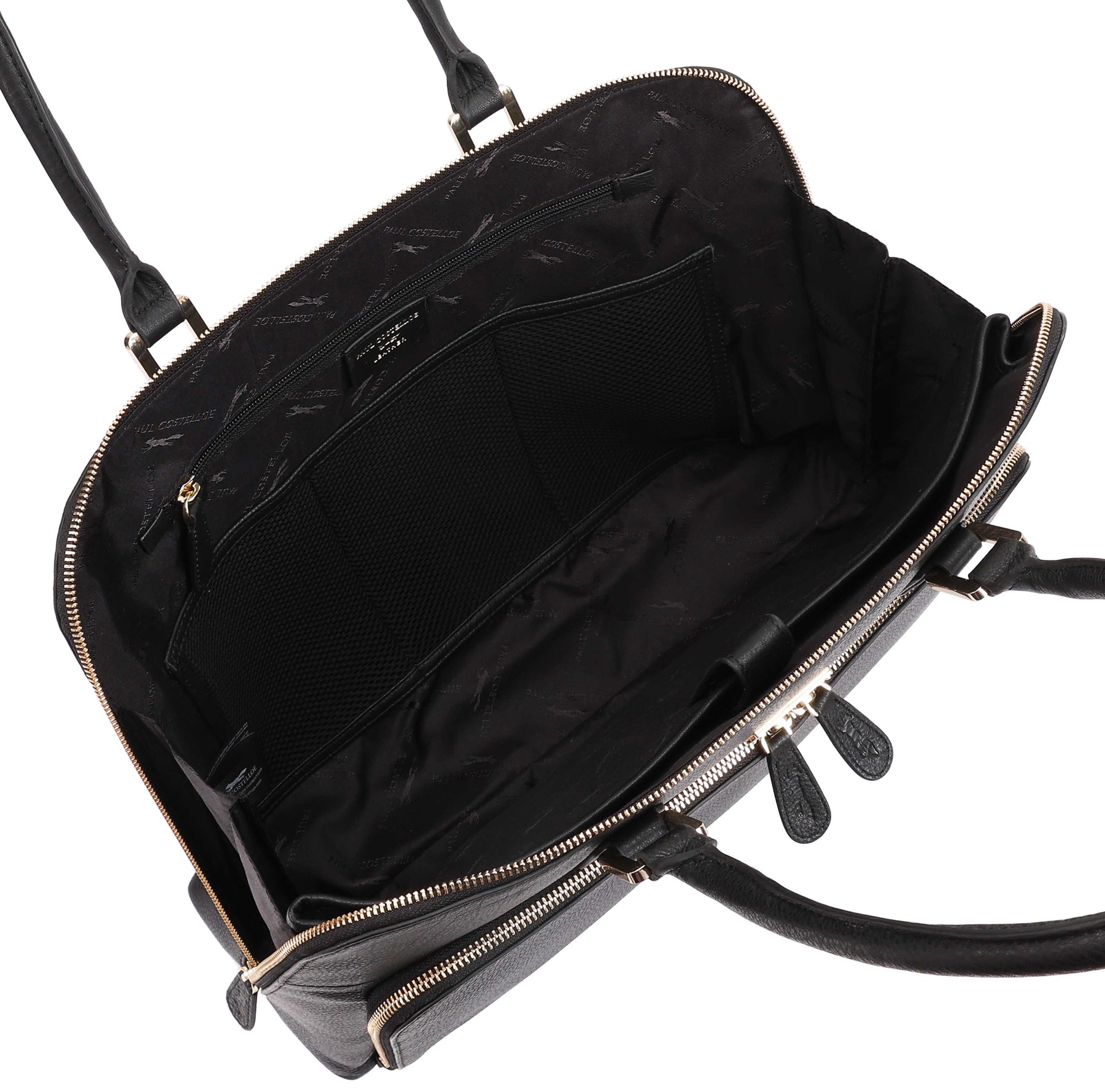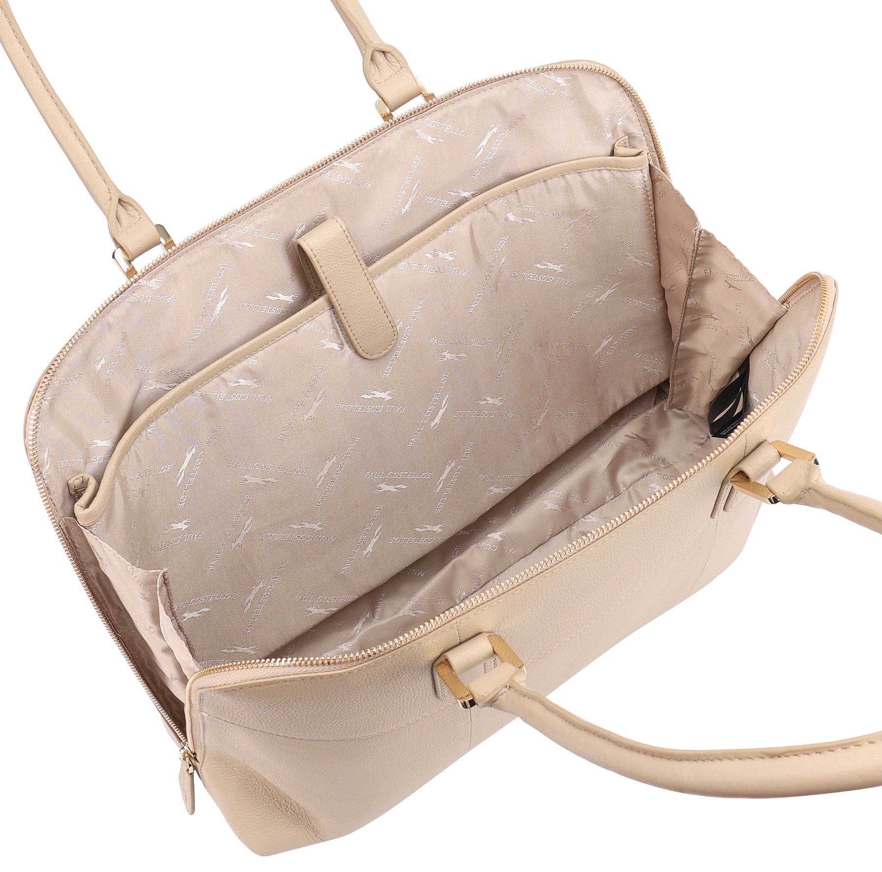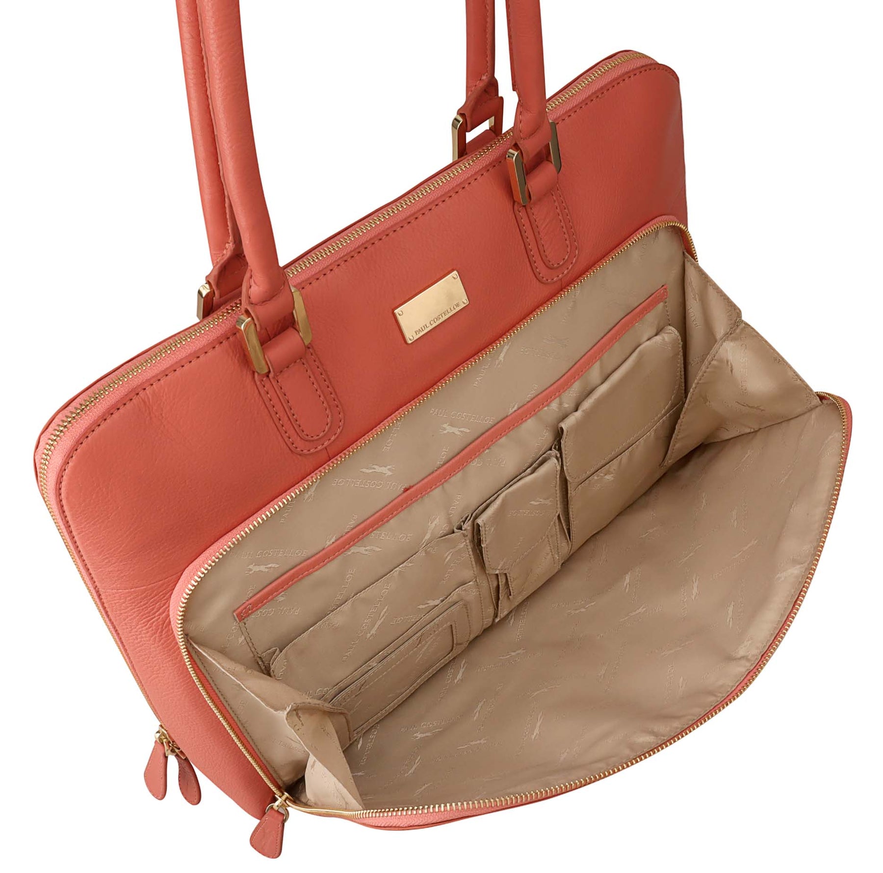 Paul Costelloe's the Filton is a brilliantly versatile choice. Boasting an organised interior, this business accessory is finished with our iconic charm and elegant gold finsihed hardware, making it an ideal office/ everyday companion. Crafted from luxurious pebble leather this chic accessory features a front zipped pocket to stash your phone, cards and cash. Main zipped pocket opens up to reveal a spacious interior with padded space to store your laptop/ tablet and a zipped compartment to keep your valuables safe. D:12cm W:36cm H:34cm
