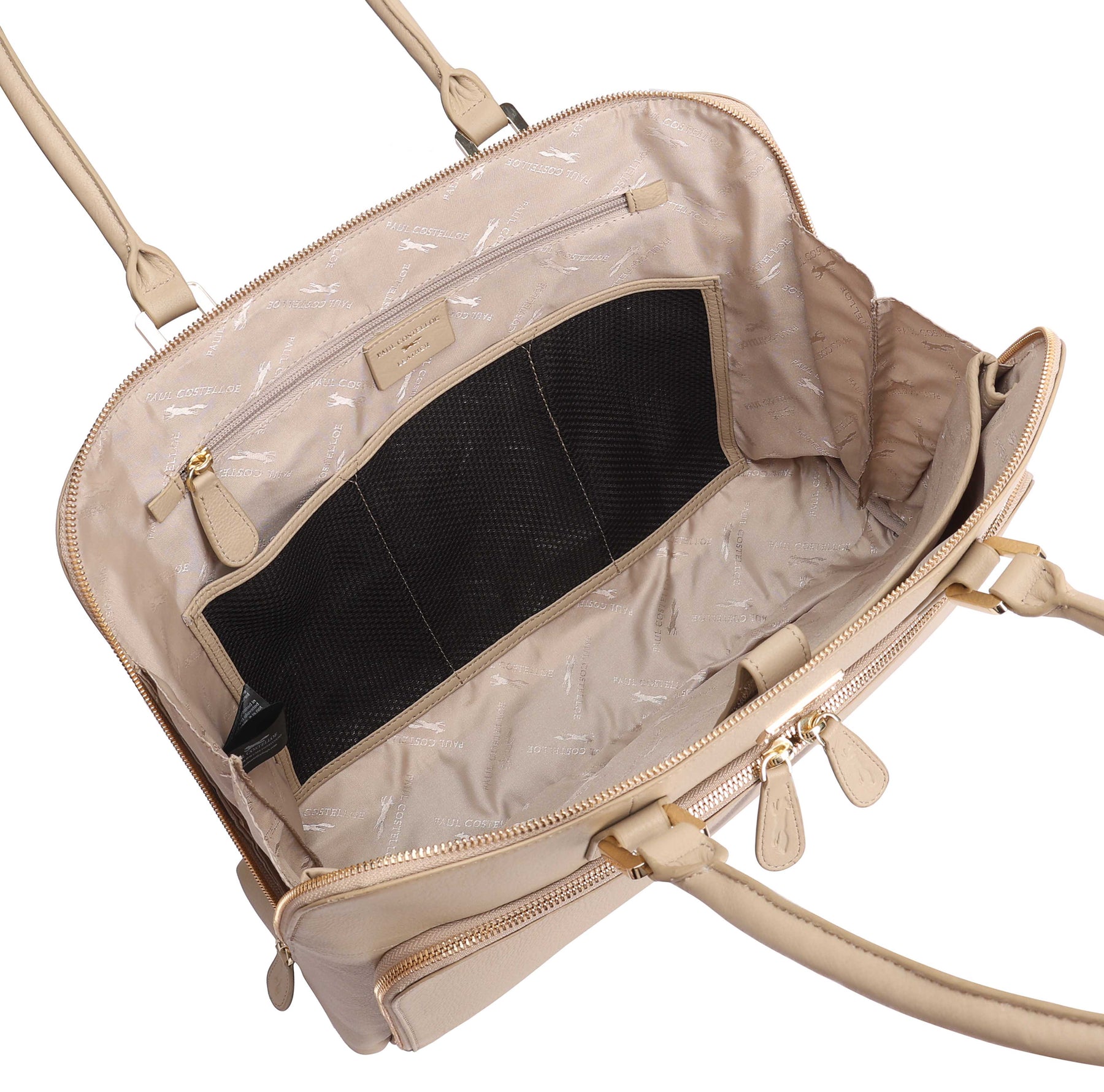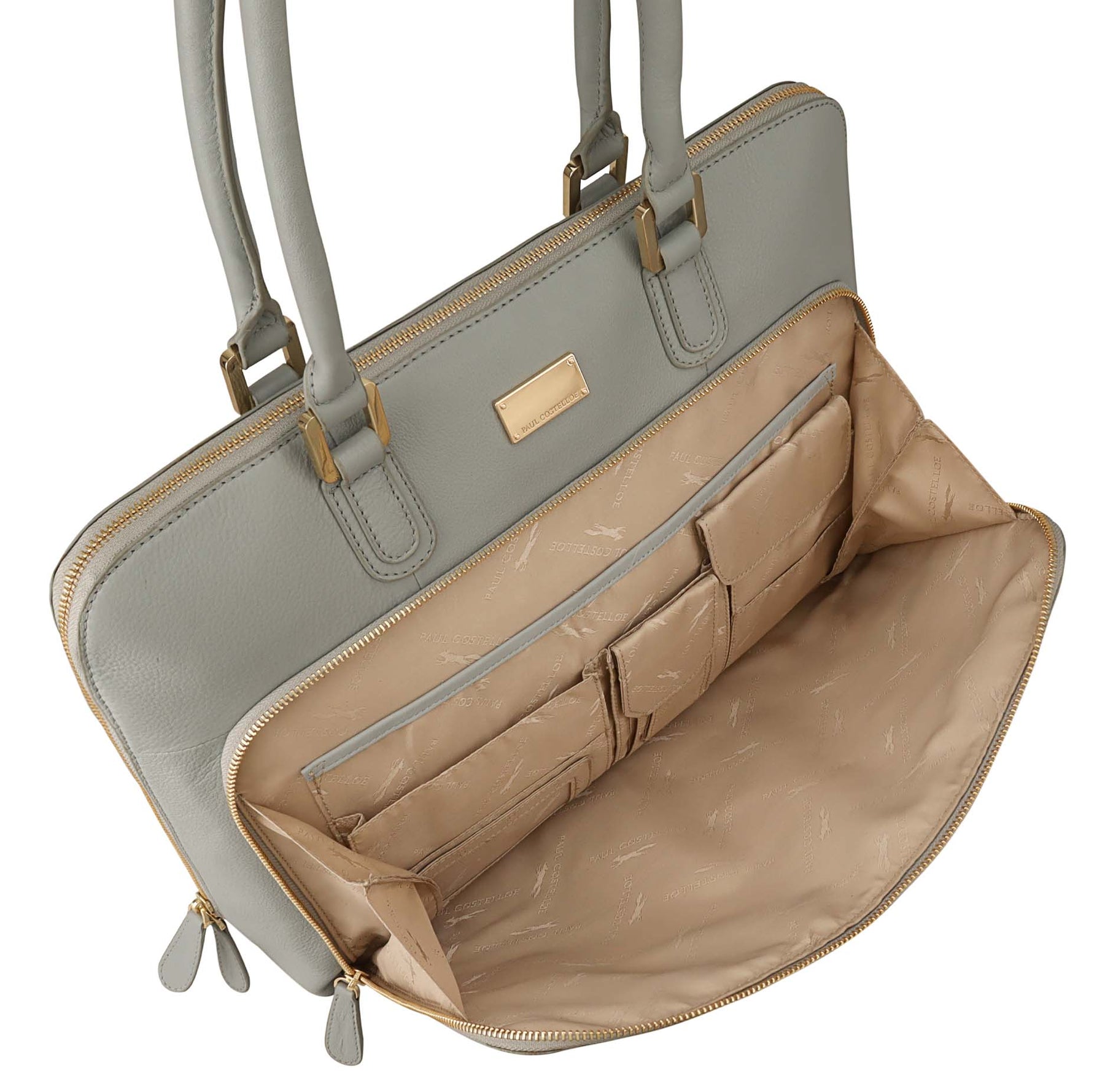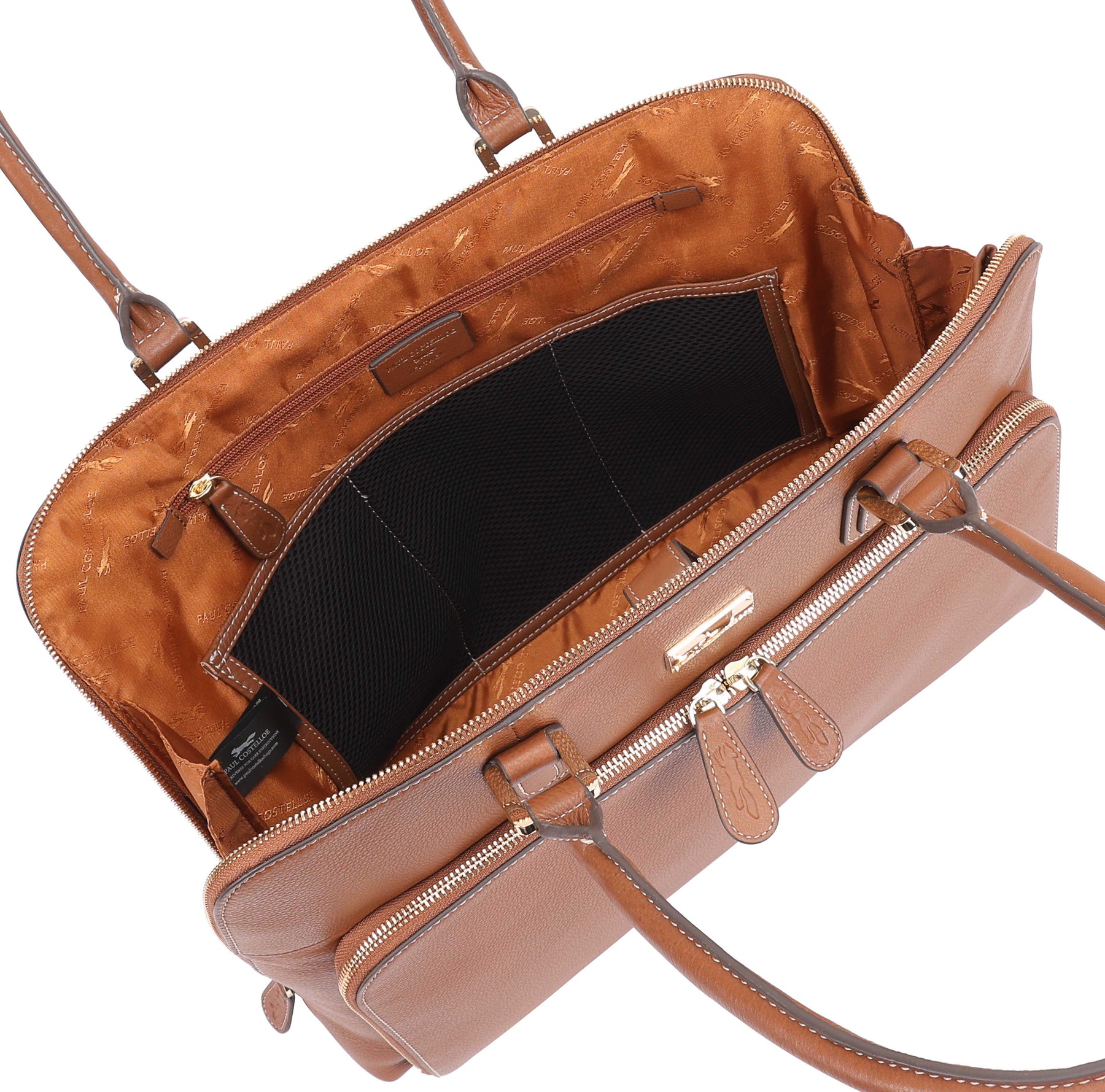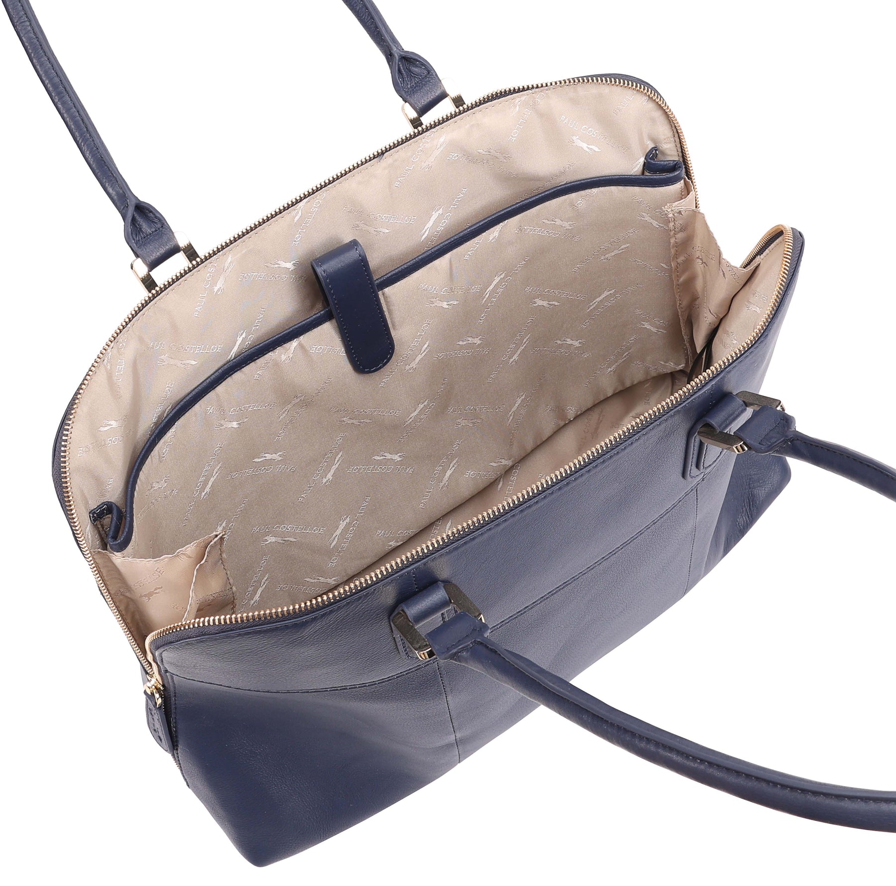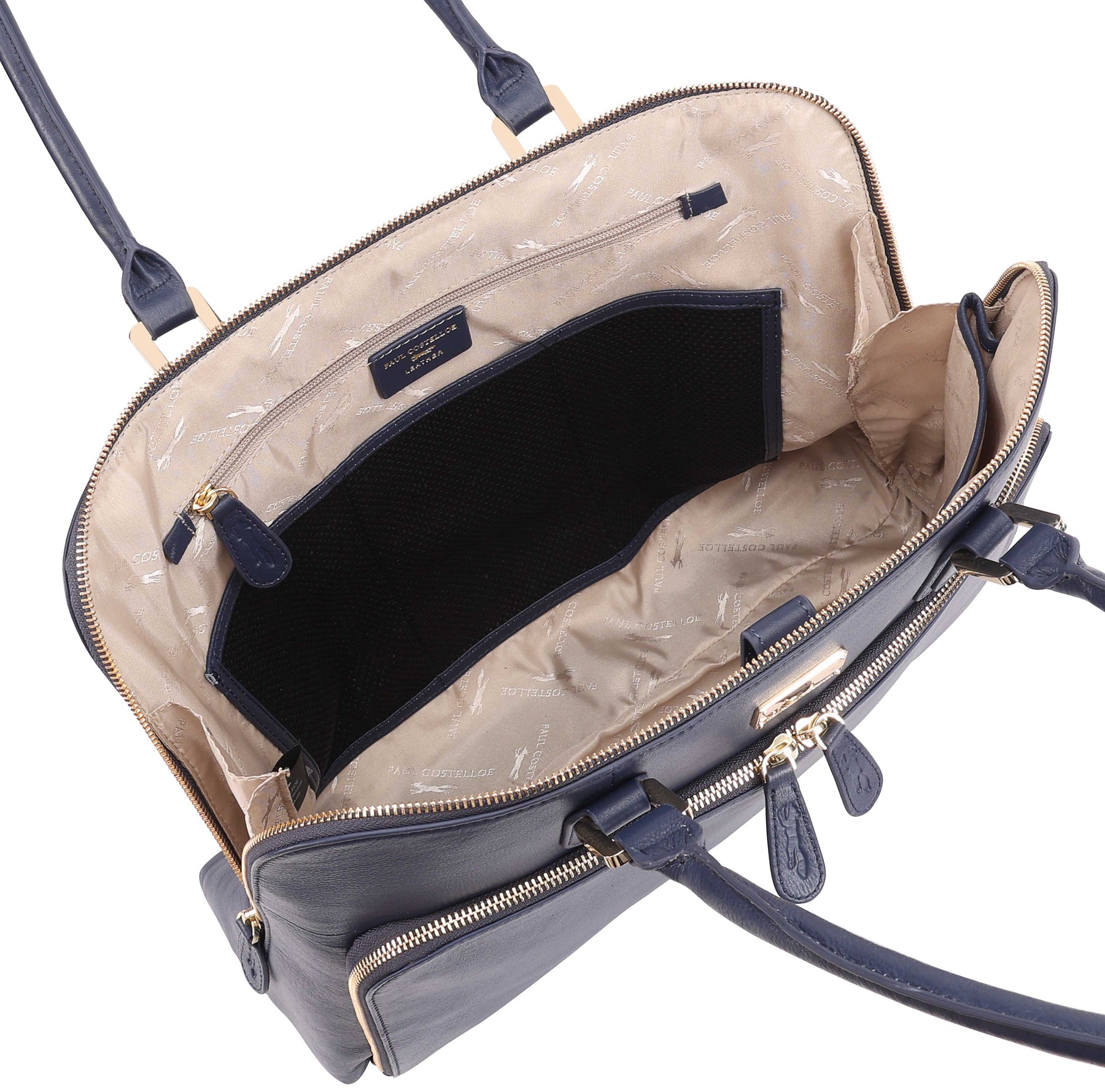 Paul Costelloe's the Filton is a brilliantly versatile choice. Boasting an organised interior, this business accessory is finished with our iconic charm and elegant gold finsihed hardware, making it an ideal office/ everyday companion. Crafted from luxurious pebble leather this chic accessory features a front zipped pocket to stash your phone, cards and cash. Main zipped pocket opens up to reveal a spacious interior with padded space to store your laptop/ tablet and a zipped compartment to keep your valuables safe. D:12cm W:36cm H:34cm