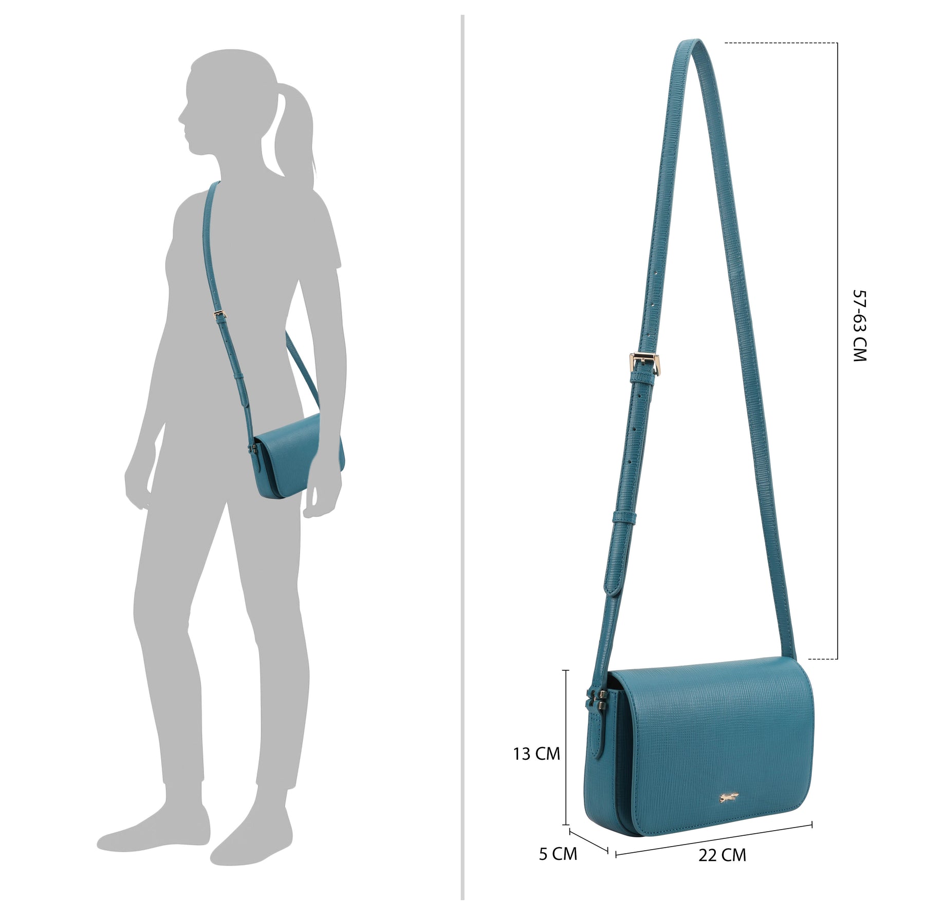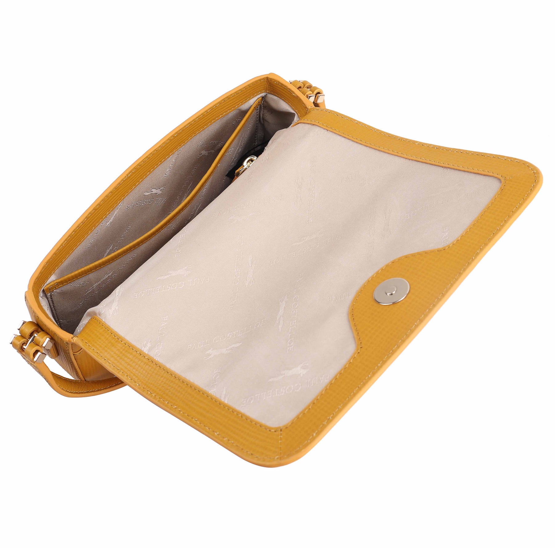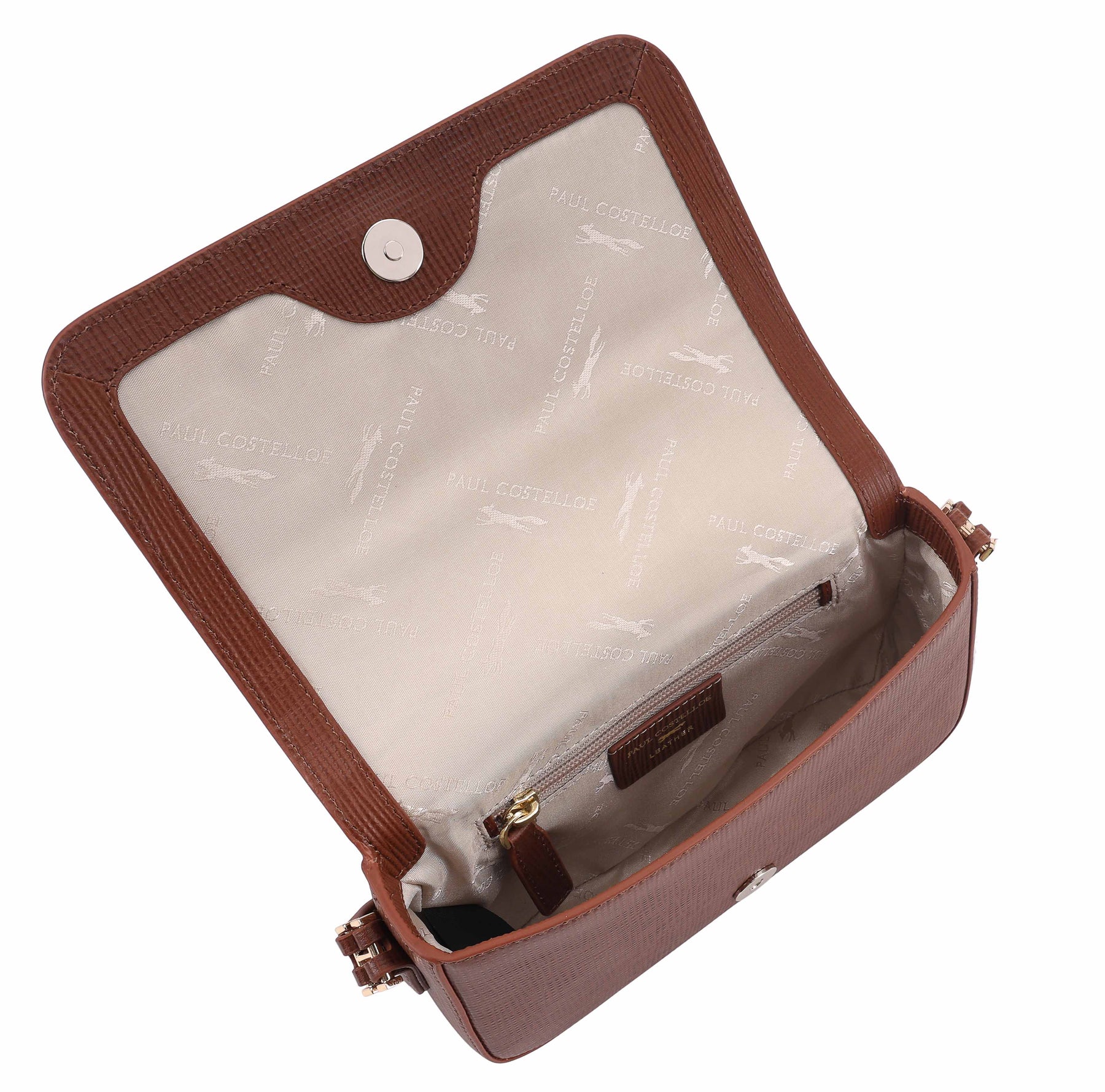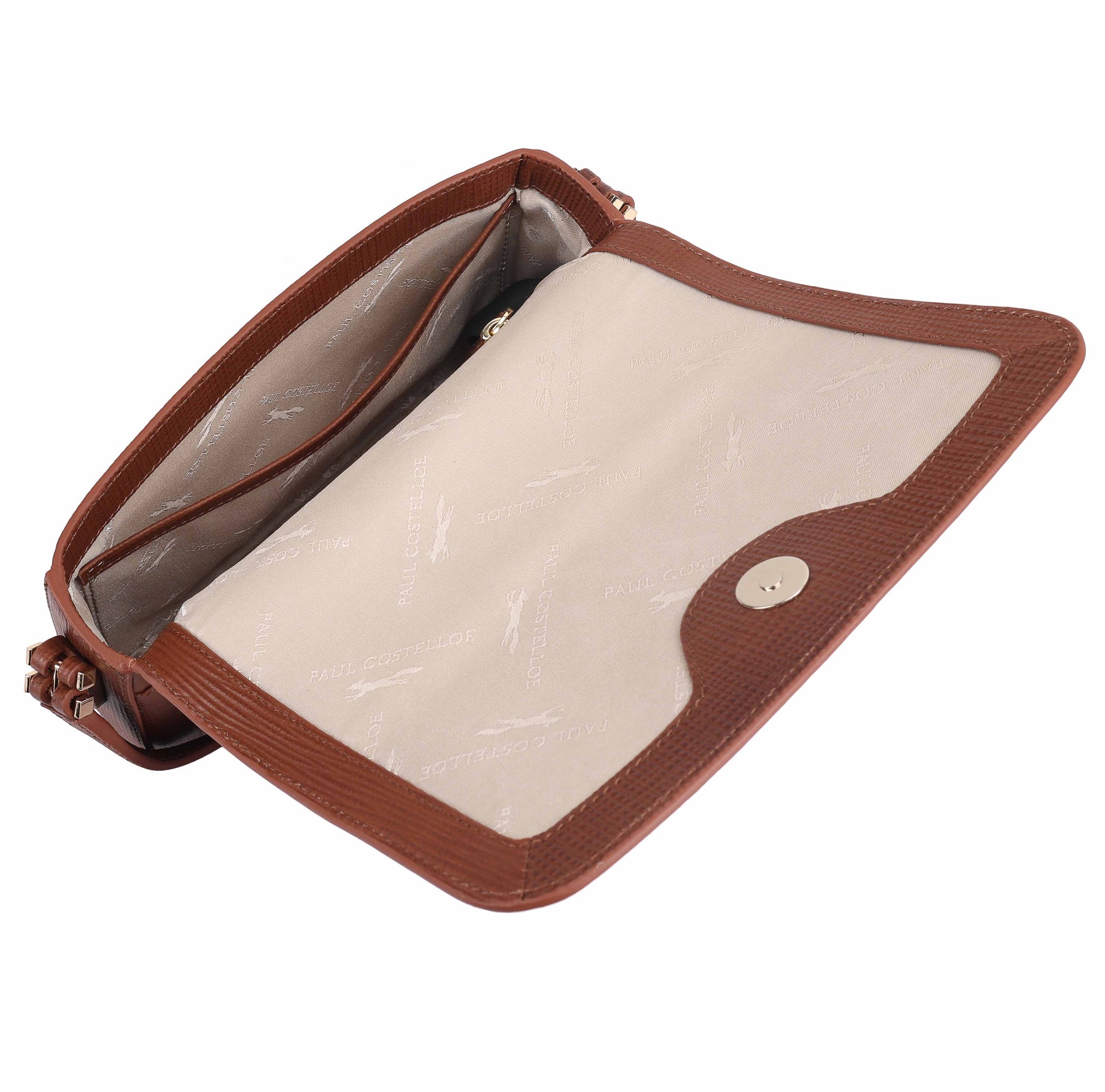 The Paul Costelloe AURELIA crossbody bag is crafted from Franz emboss textured leather, giving it a polished and contemporary look. The elegant flap design with a magnetic closure opens to a well-organised interior with an internal zip pocket and slip pocket for easy organisation. An adjustable crossbody strap ensures comfortable wear, making it a practical choice for both everyday outings and evenings out. D:5cm W:22cm H:13cm