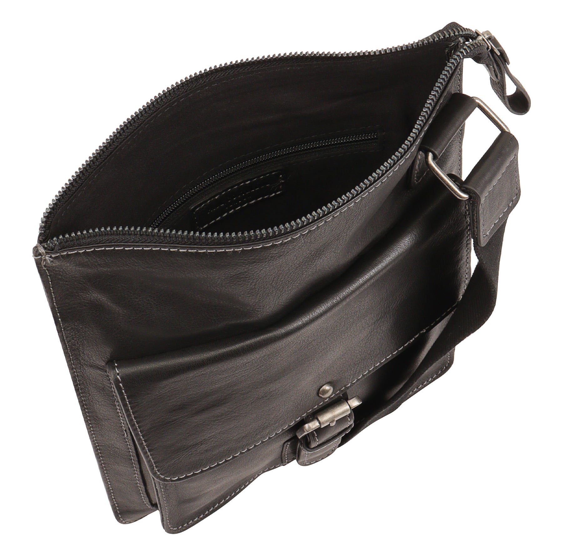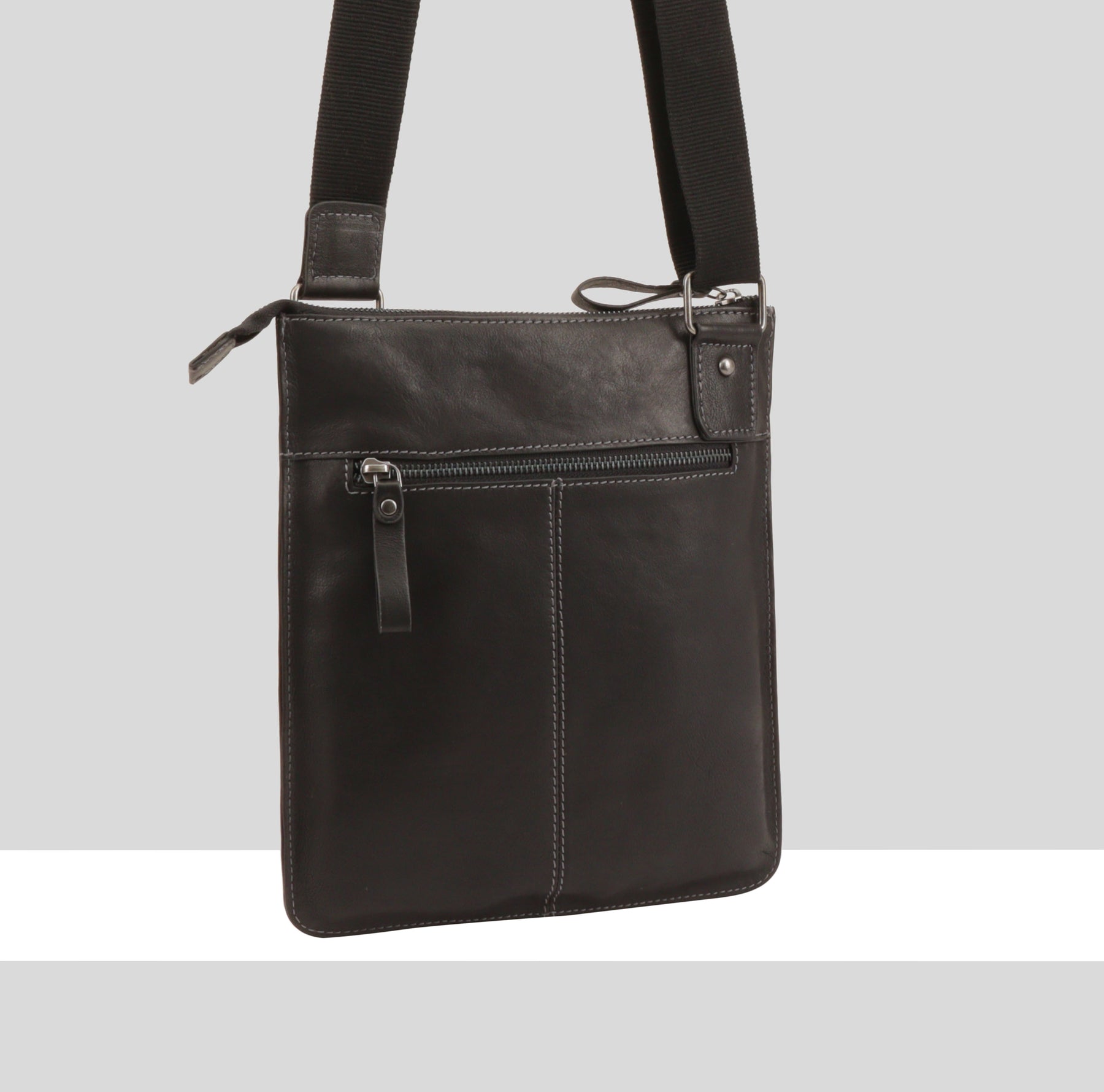 This sleek leather crossbody bag combines style and functionality, featuring a top zip closure and a secure flapped pocket on the front for easy access. Crafted from soft, smooth leather with distinctive stitch detailing, it includes an internal zipped pocket and an additional zipped pocket on the back for optimal organization. The comfortable webbing shoulder strap ensures a perfect fit, making this bag an ideal accessory for everyday use.