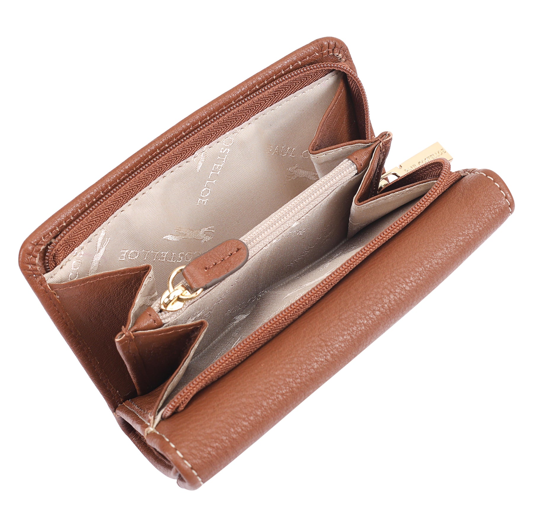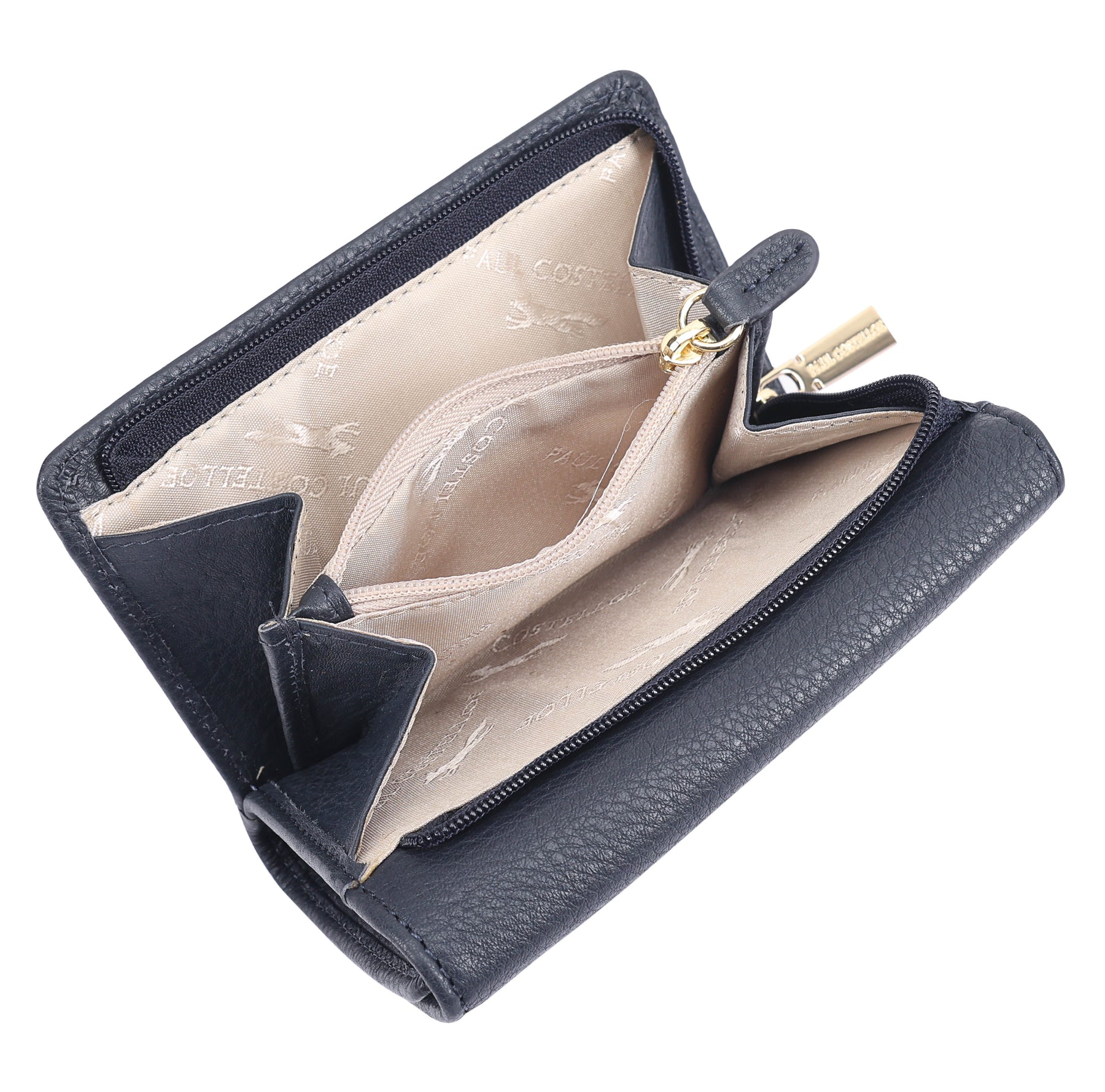 Cut from soft leather, Panay is a sleek and stylish tri-fold wallet that combines functionality with style, featuring multiple card slots and separate cash sections for organized storage. Additionally, it includes a separate dual-compartment secured with a zip and button, perfect for coins and small essentials. Its sleek and compact design ensures convenience without compromising on capacity. Adorned with Paul Costelloe's hardware, this compact wallet is best suited for your everyday needs. D:3.7cm W:13.5cm H:9.5cm