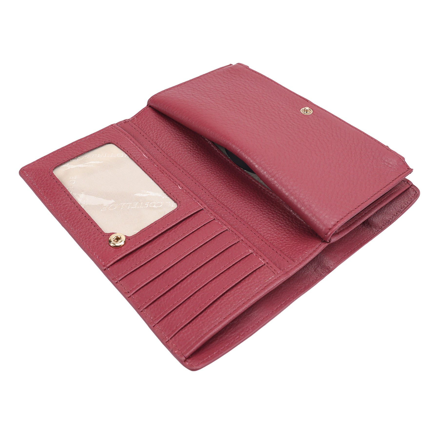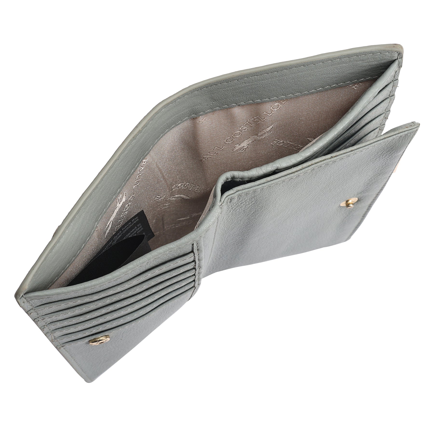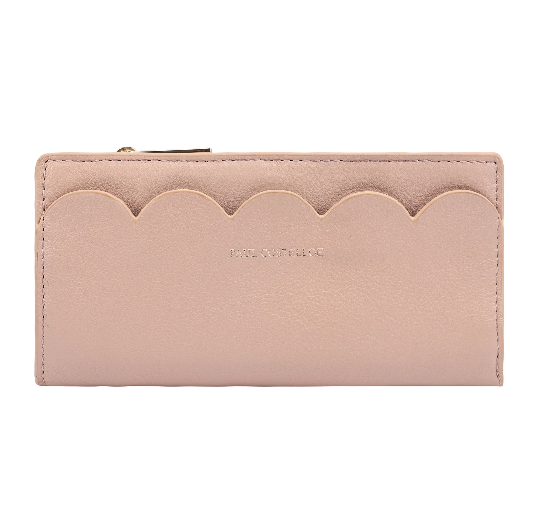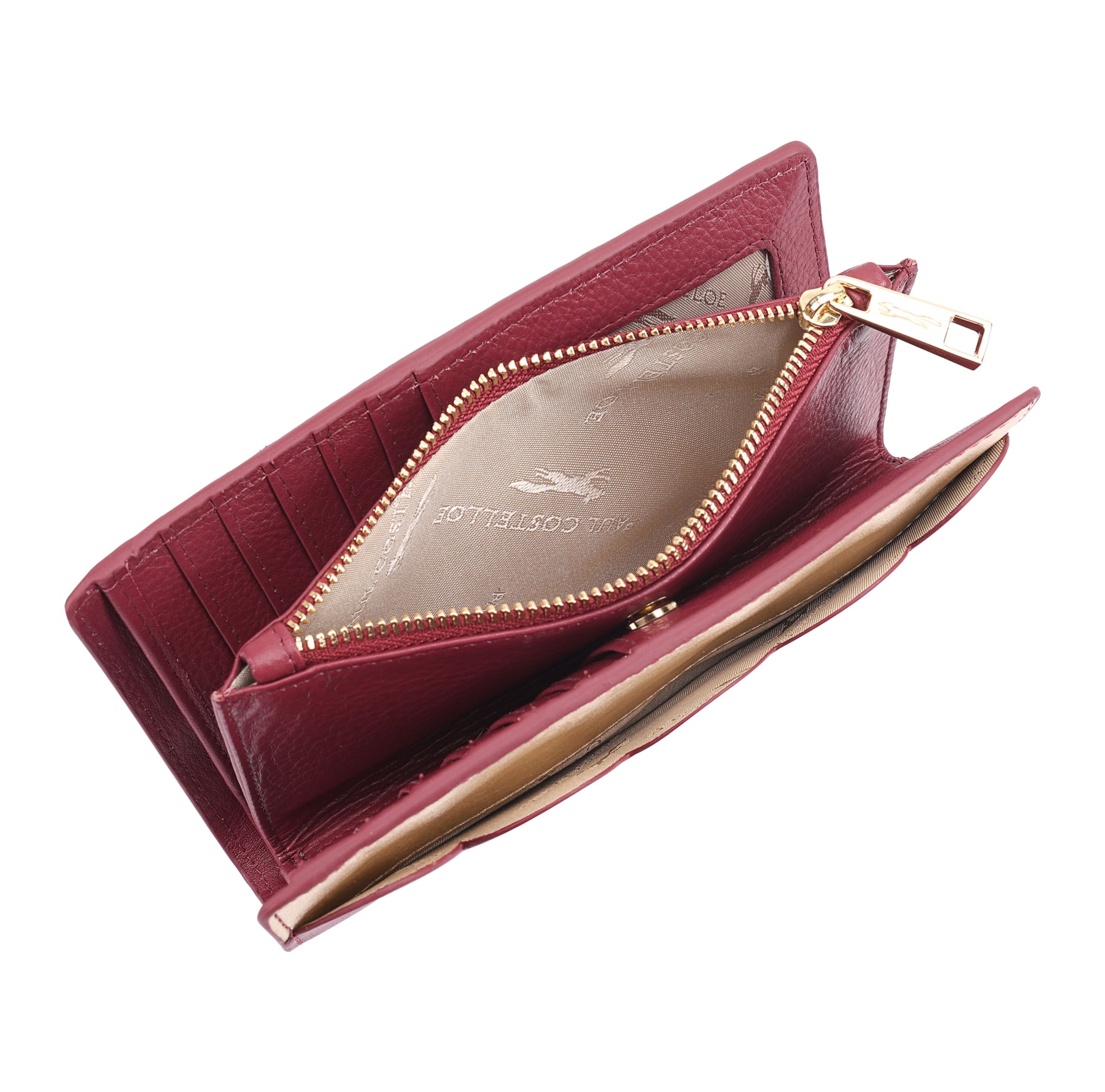 This genuine leather flap-over purse TAZA combines elegance and practicality in a compact design. Featuring a stylish scalloped detail on the front, it offers multiple card slots, twin note sections, and an interior zipped pocket perfect for coins and keys. Sleek, multifunctional, and travel-ready, it's the ideal everyday companion for staying organized in style. D:2.4cm W:18.2cm H:9.4cm