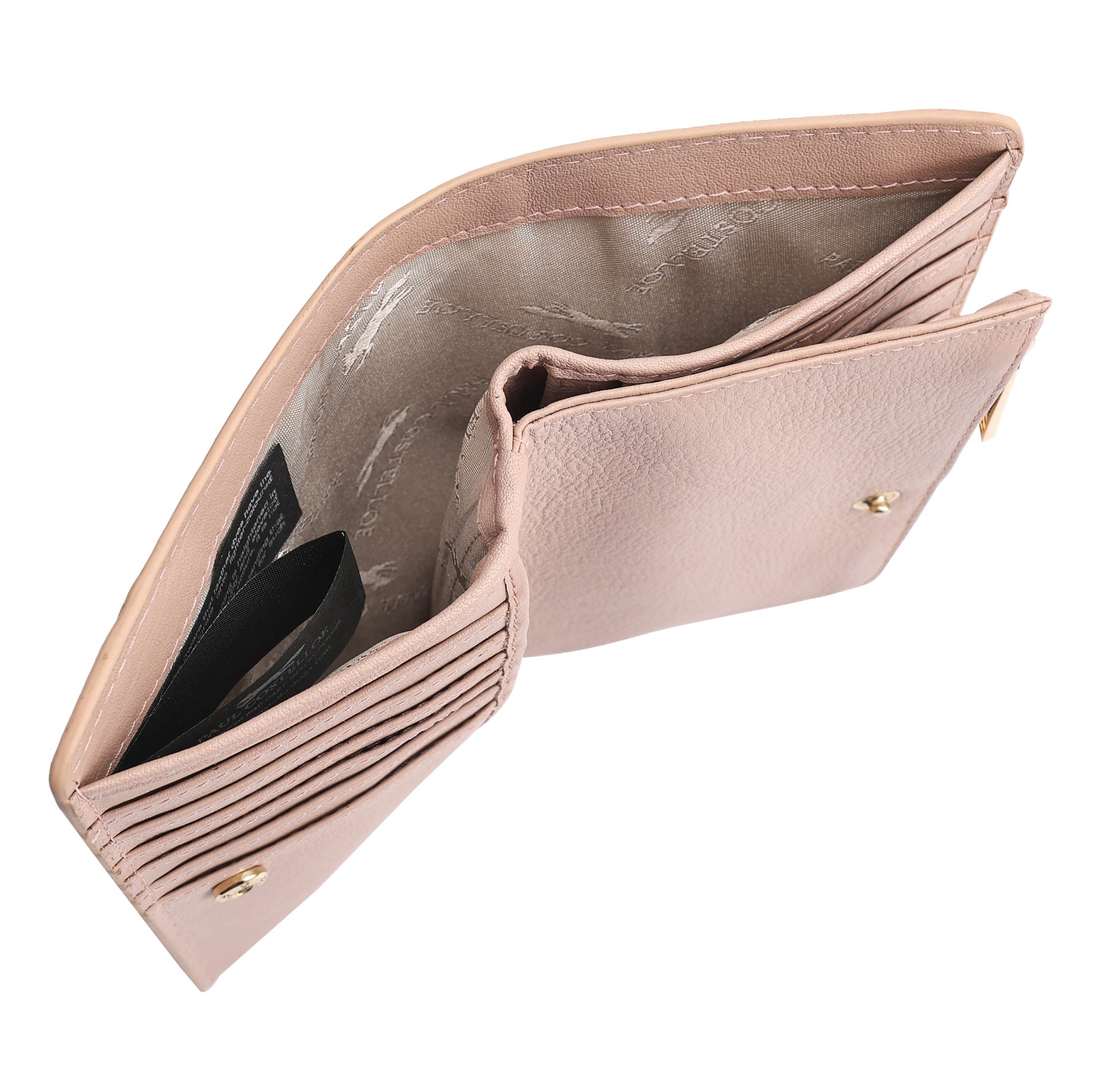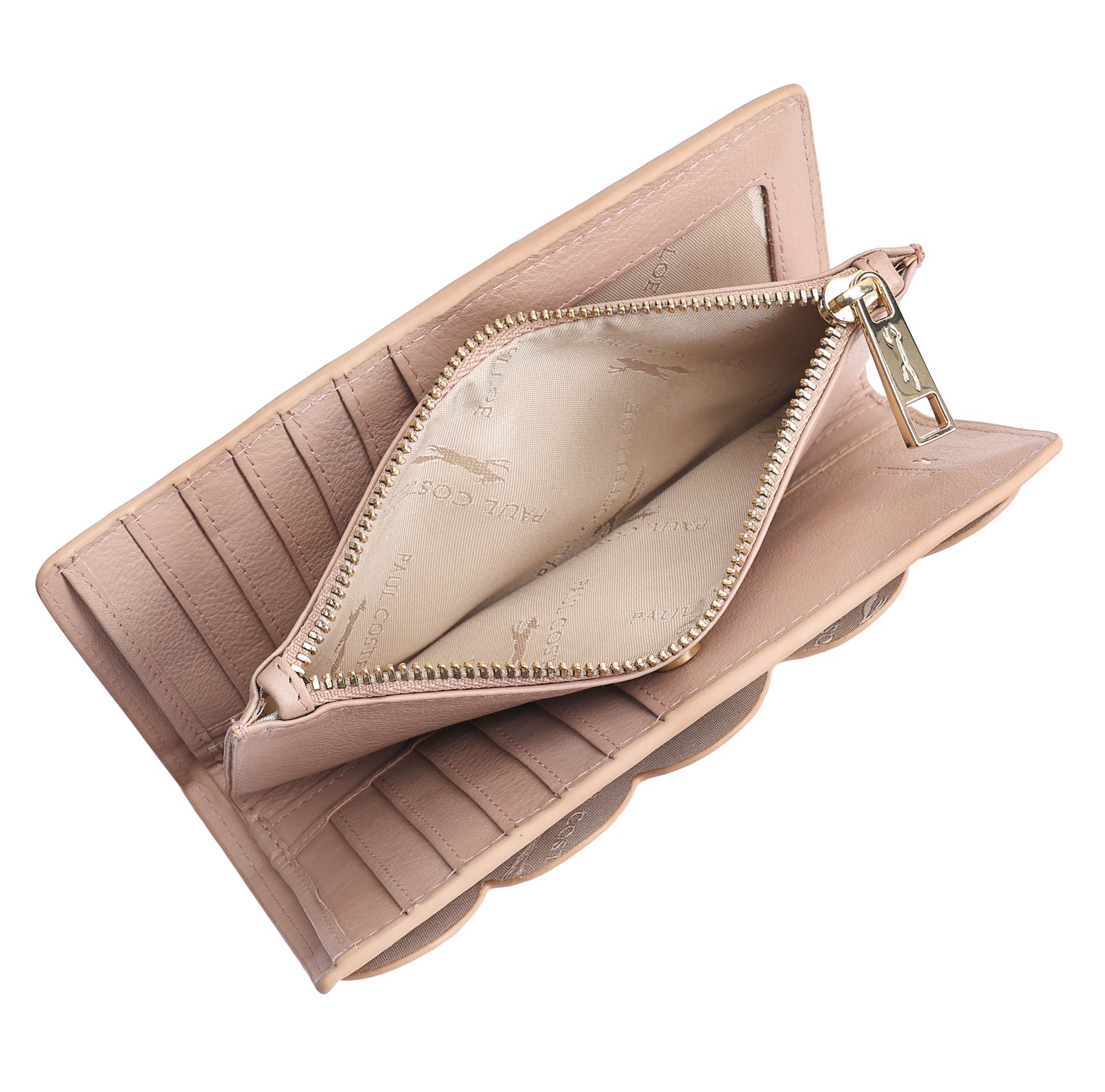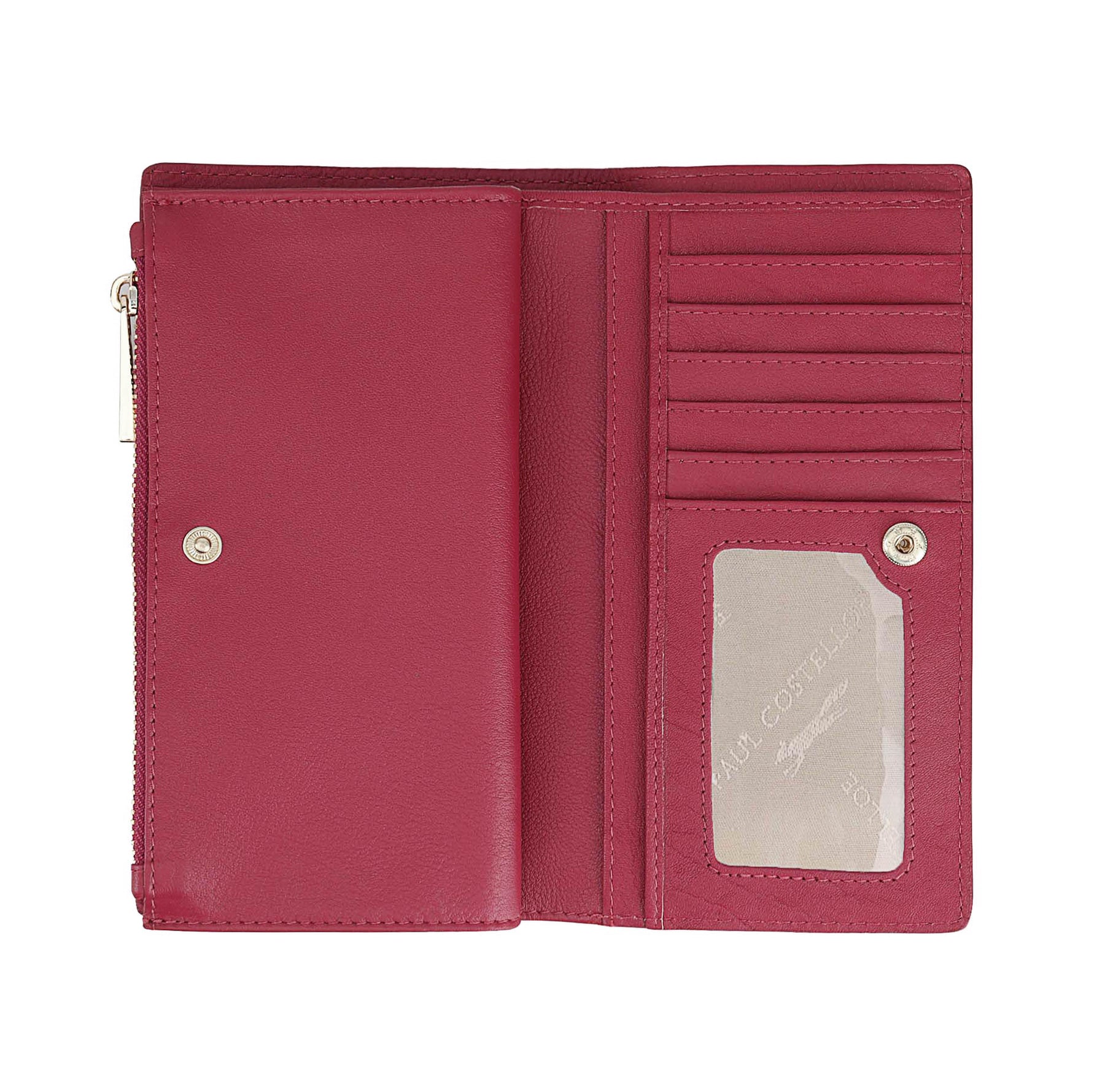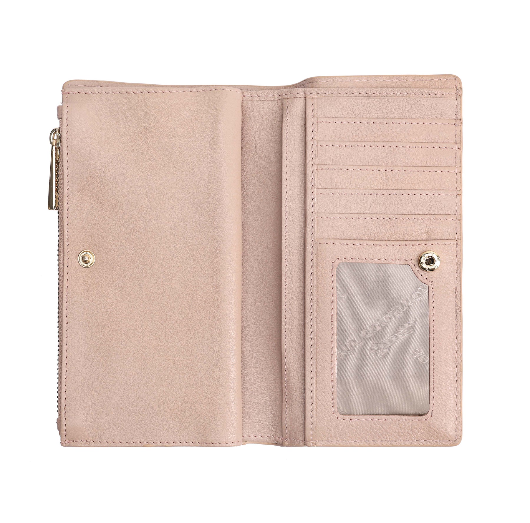 This genuine leather flap-over purse TAZA combines elegance and practicality in a compact design. Featuring a stylish scalloped detail on the front, it offers multiple card slots, twin note sections, and an interior zipped pocket perfect for coins and keys. Sleek, multifunctional, and travel-ready, it's the ideal everyday companion for staying organized in style. D:2.4cm W:18.2cm H:9.4cm
