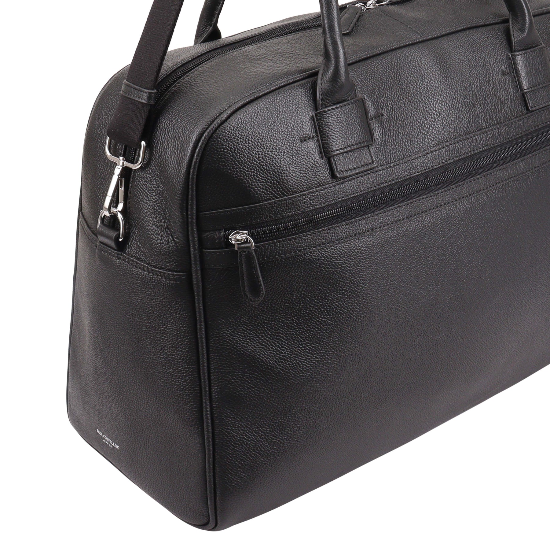 Elevate your travel experience with our meticulously crafted leather weekend bag, designed for both style and convenience. The detailed handle anchorage guarantees durability and ease of carrying, while the convenient front slip pocket offers quick access to your essentials. With an adjustable soft webbing shoulder strap, this bag ensures comfort on the go, making it the perfect companion for your weekend adventures. D:23cm W:49cm H:33.5cm