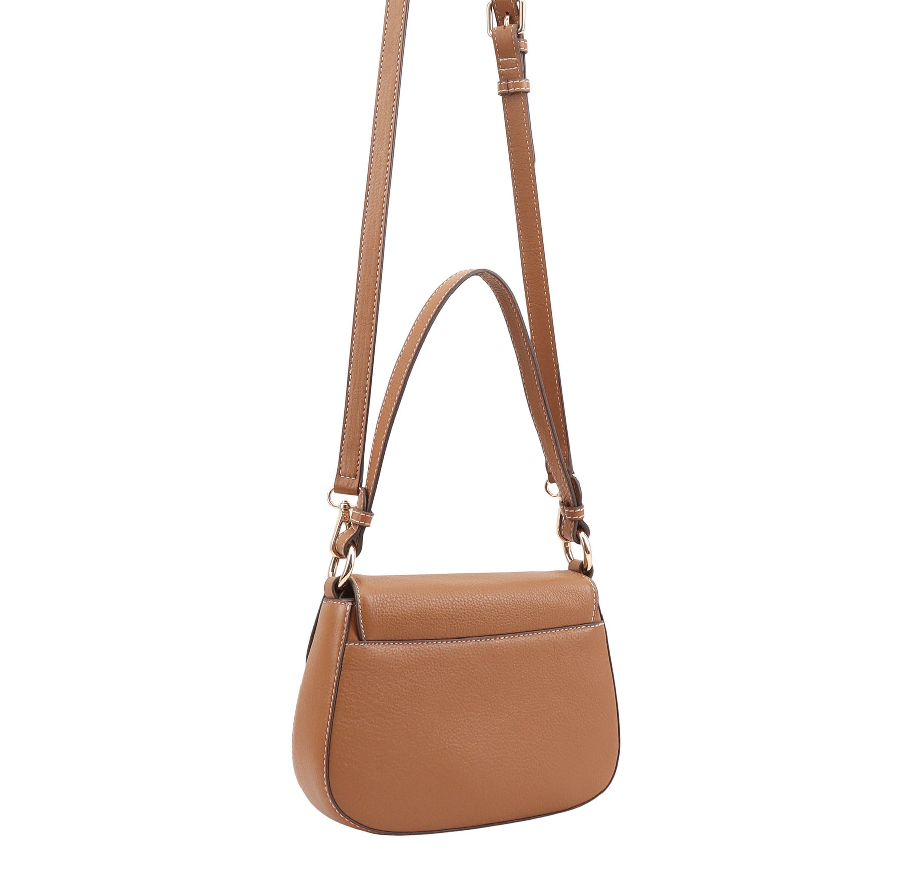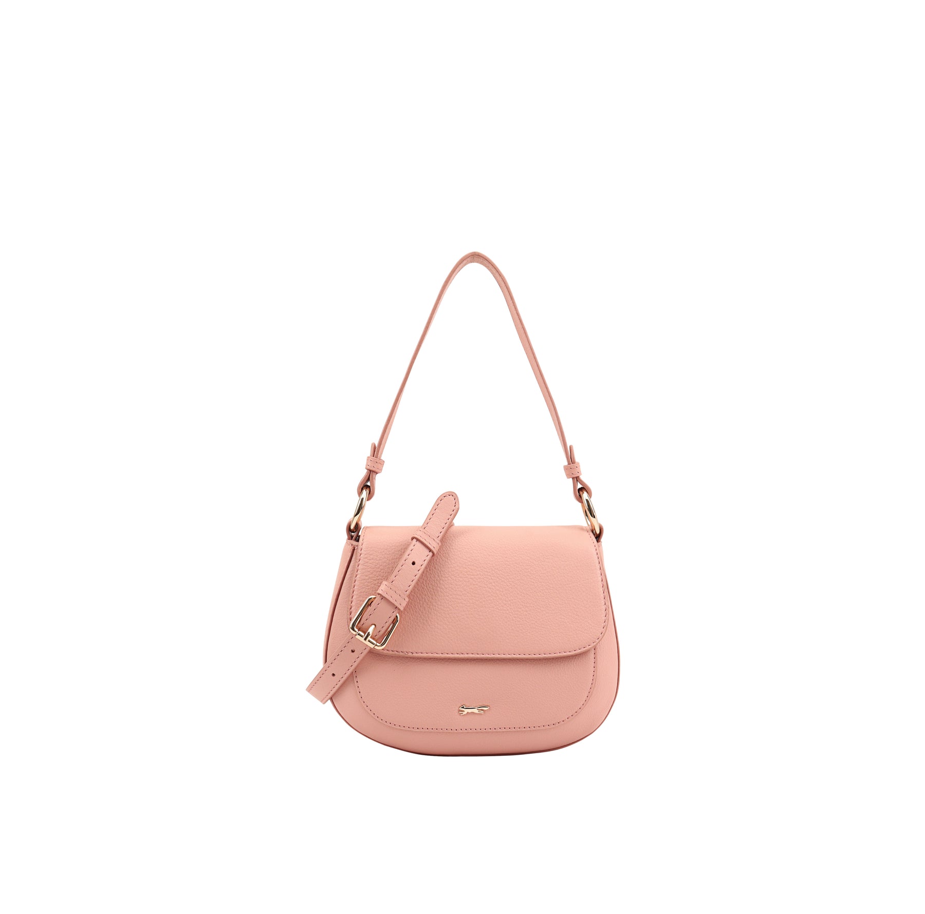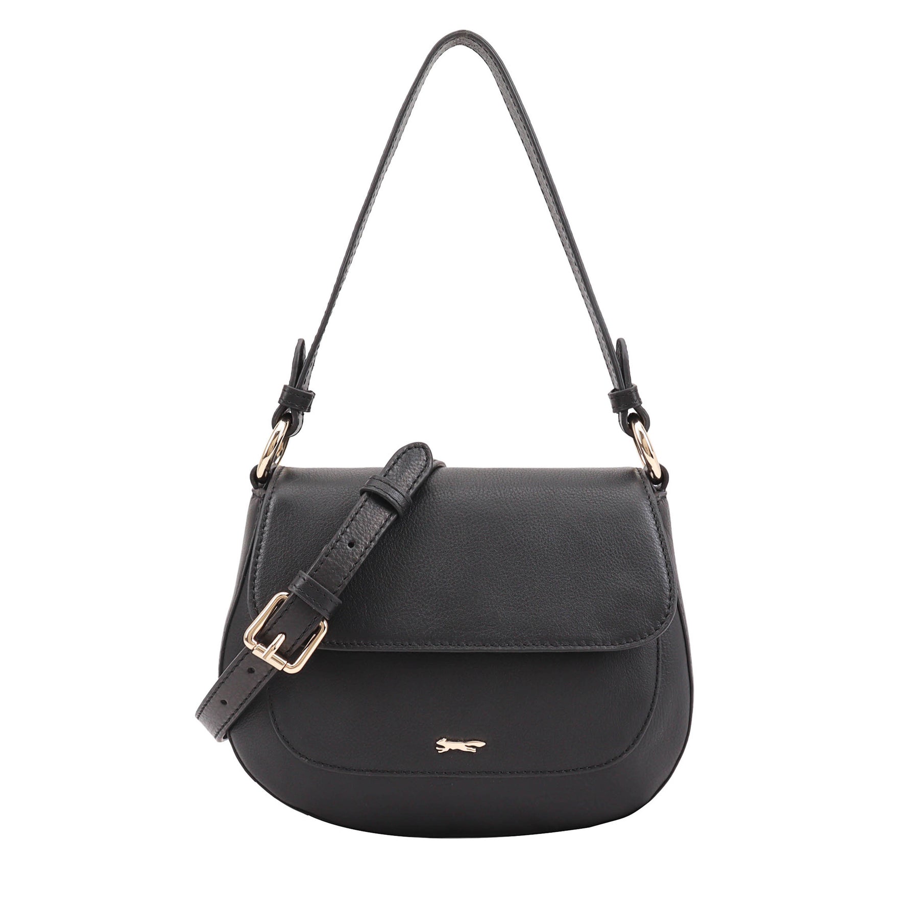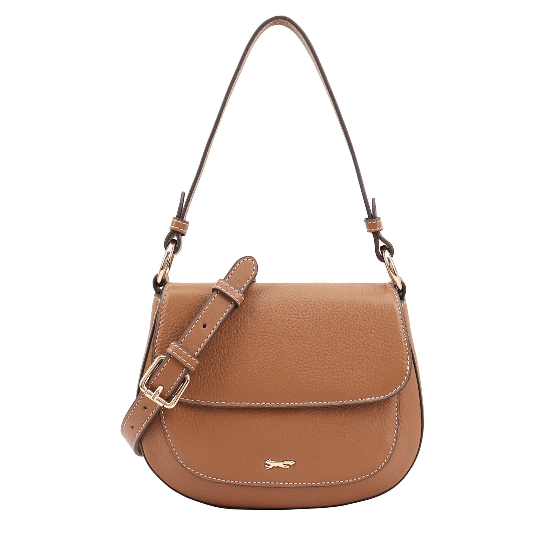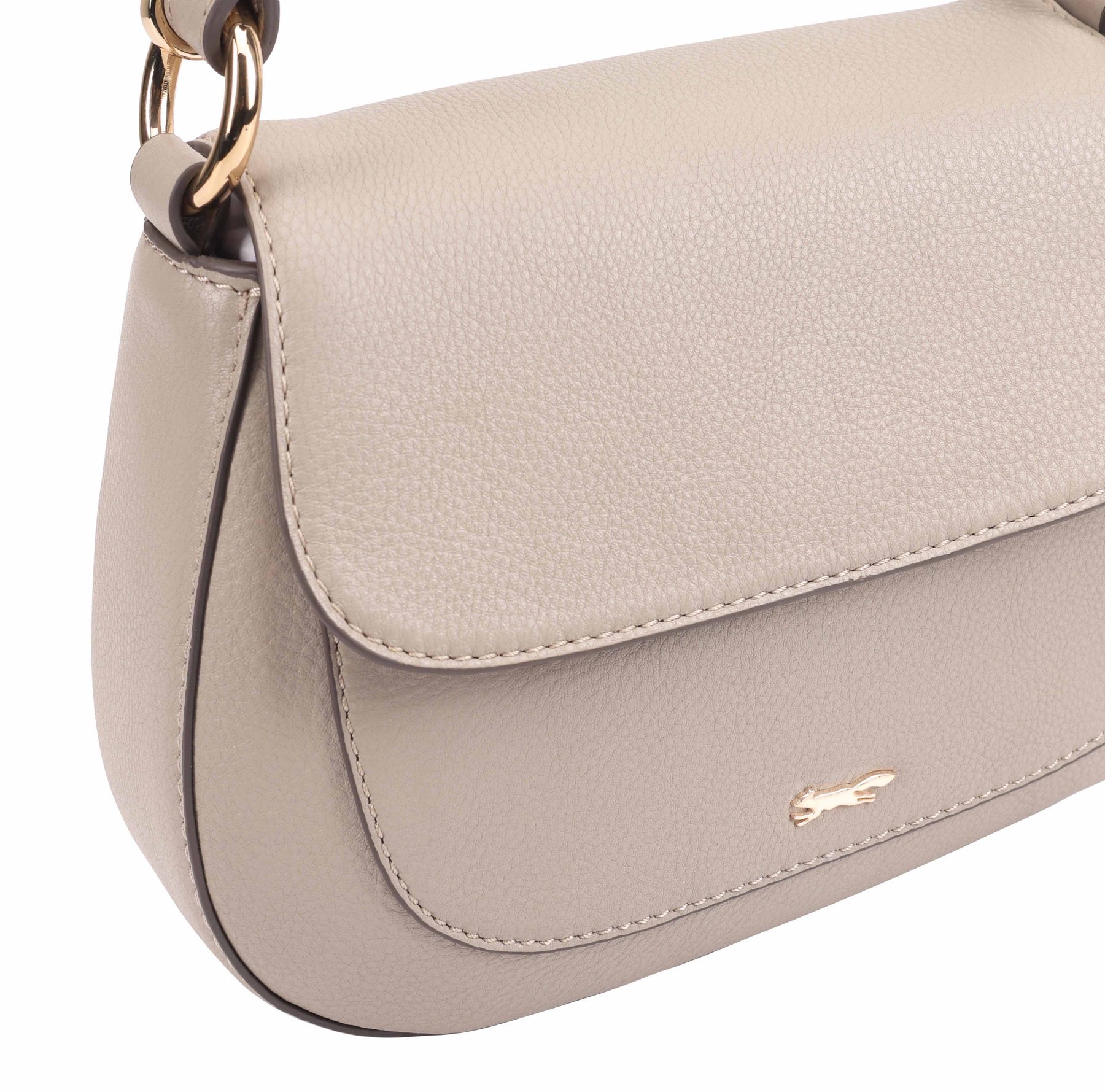 This EVERLY leather shoulder bag features a sophisticated rounded design with flap and is adorned with an elegant metal logo of the brand on the front, adding a touch of luxury. It comes with a removable and adjustable shoulder strap, providing versatile styling options for any occasion. Perfectly blending functionality with style, this bag is an essential accessory for a polished, modern look. D:8cm W:22cm H:16.5cm