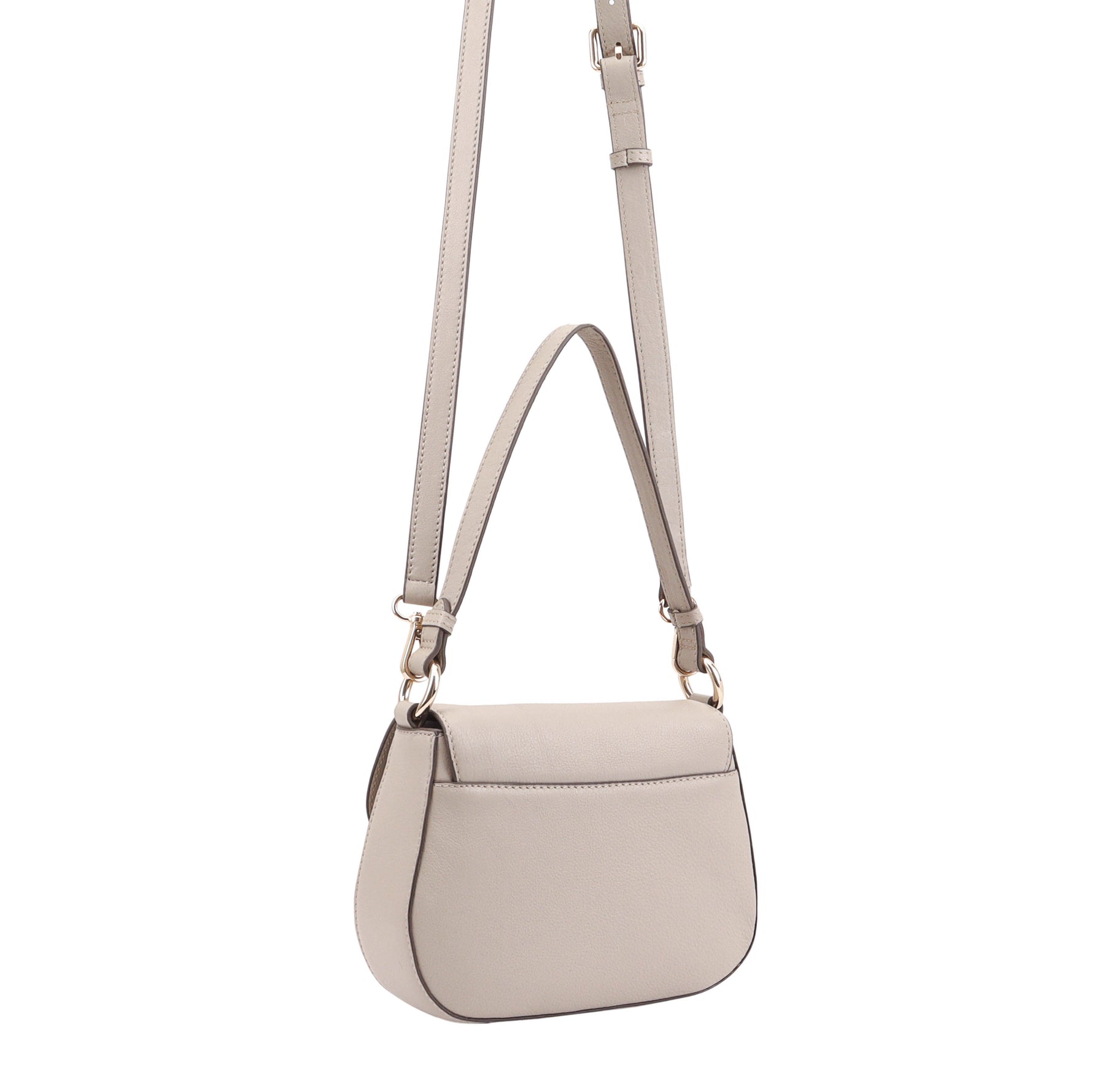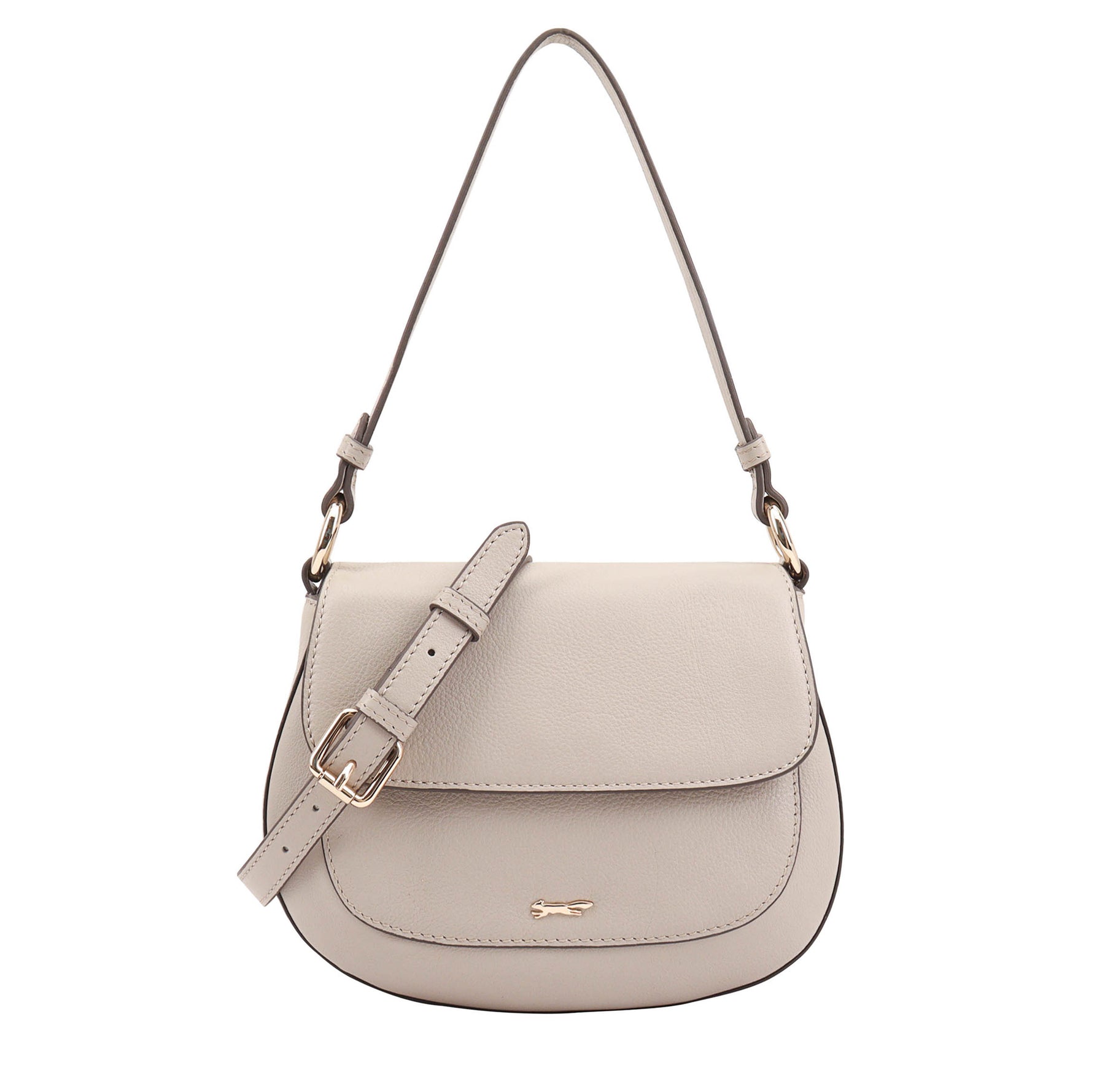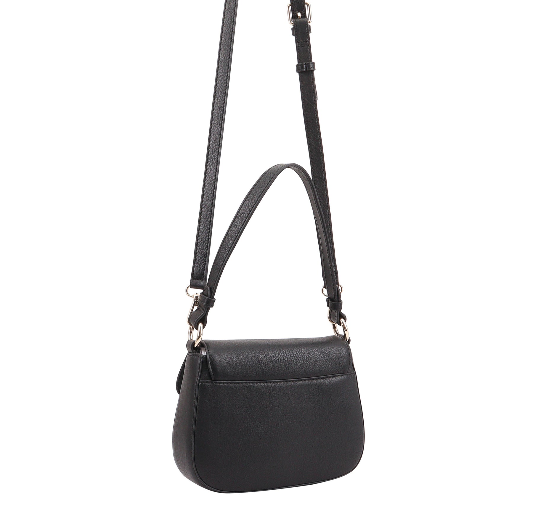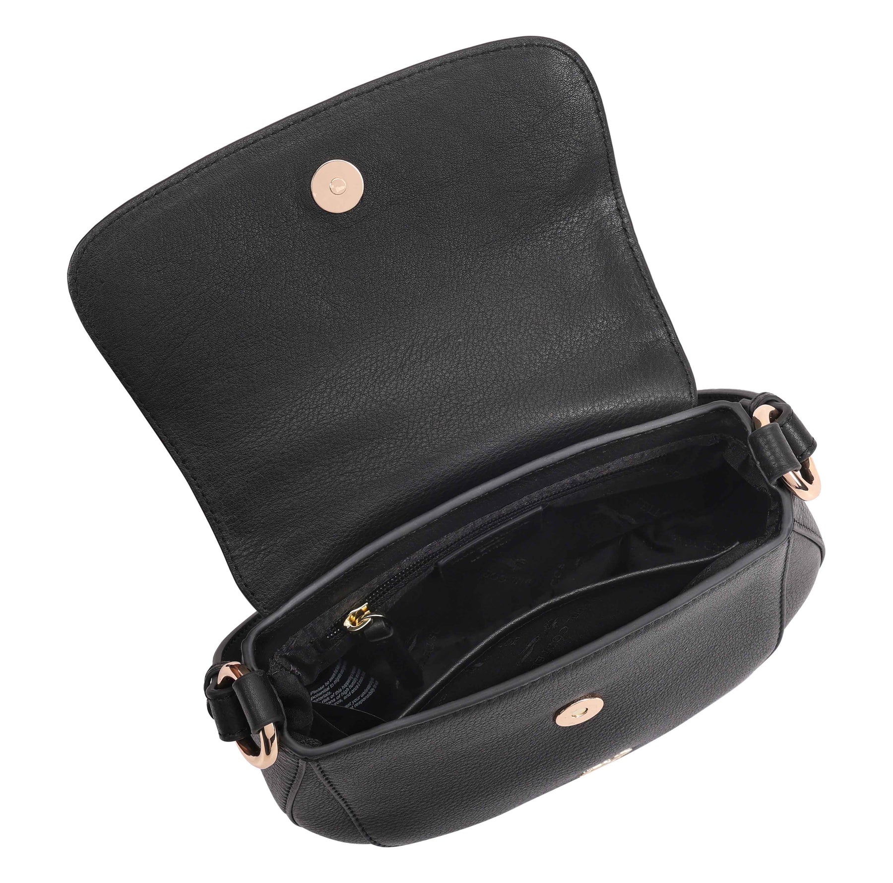 This EVERLY leather shoulder bag features a sophisticated rounded design with flap and is adorned with an elegant metal logo of the brand on the front, adding a touch of luxury. It comes with a removable and adjustable shoulder strap, providing versatile styling options for any occasion. Perfectly blending functionality with style, this bag is an essential accessory for a polished, modern look. D:8cm W:22cm H:16.5cm