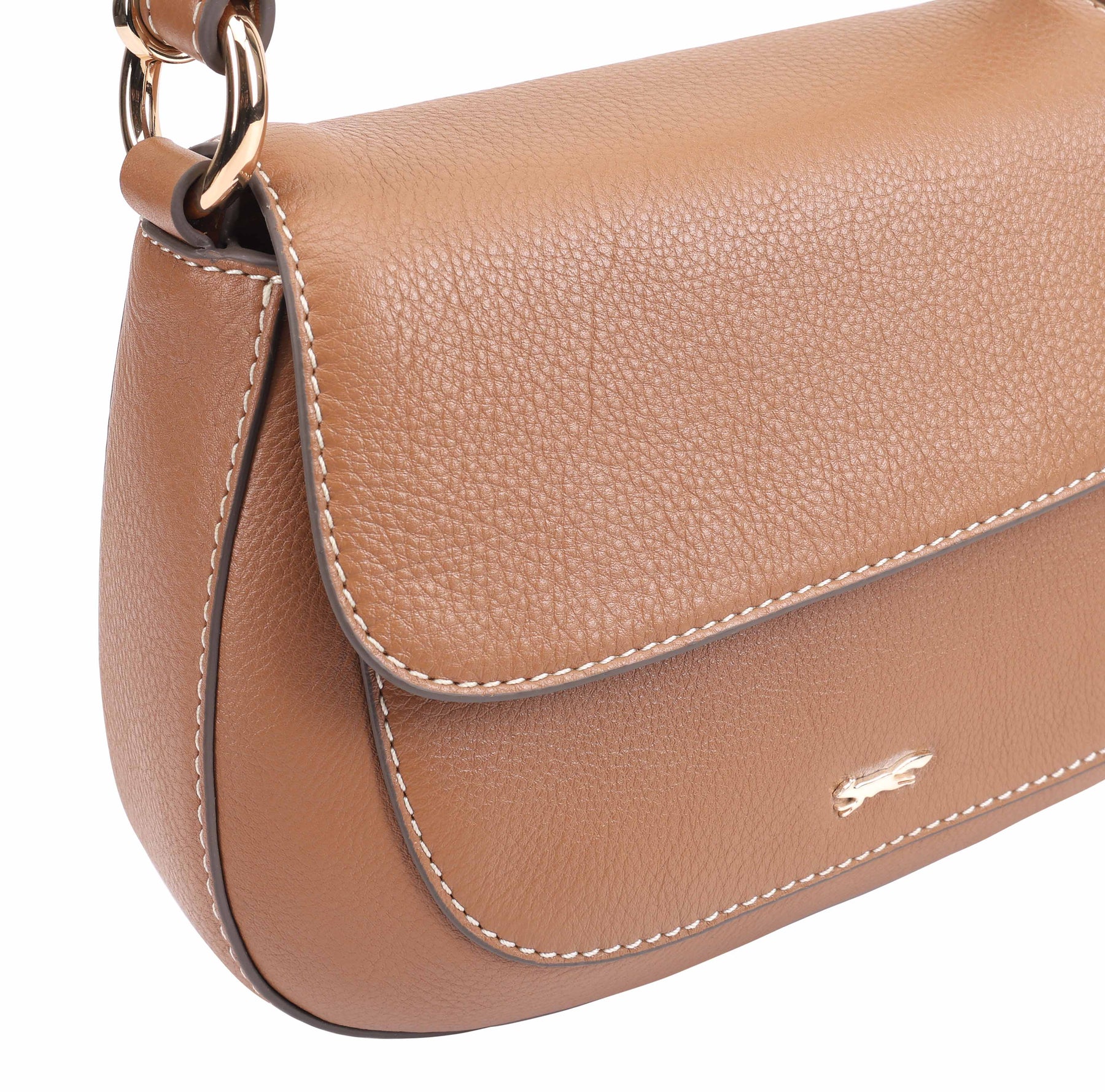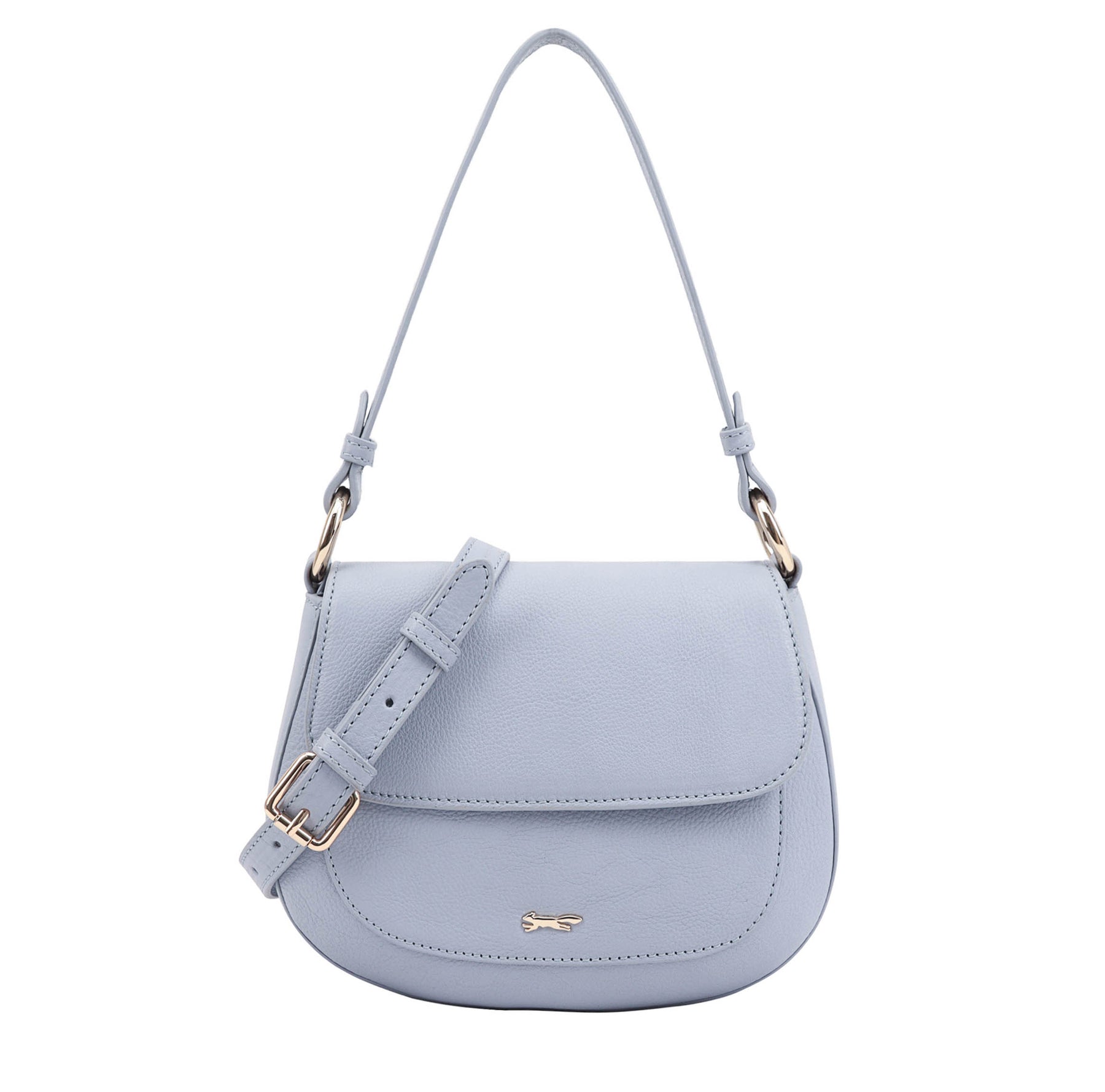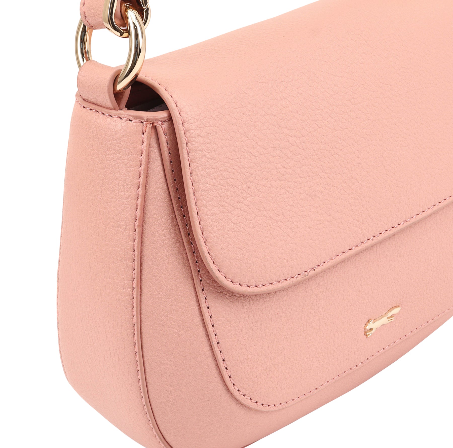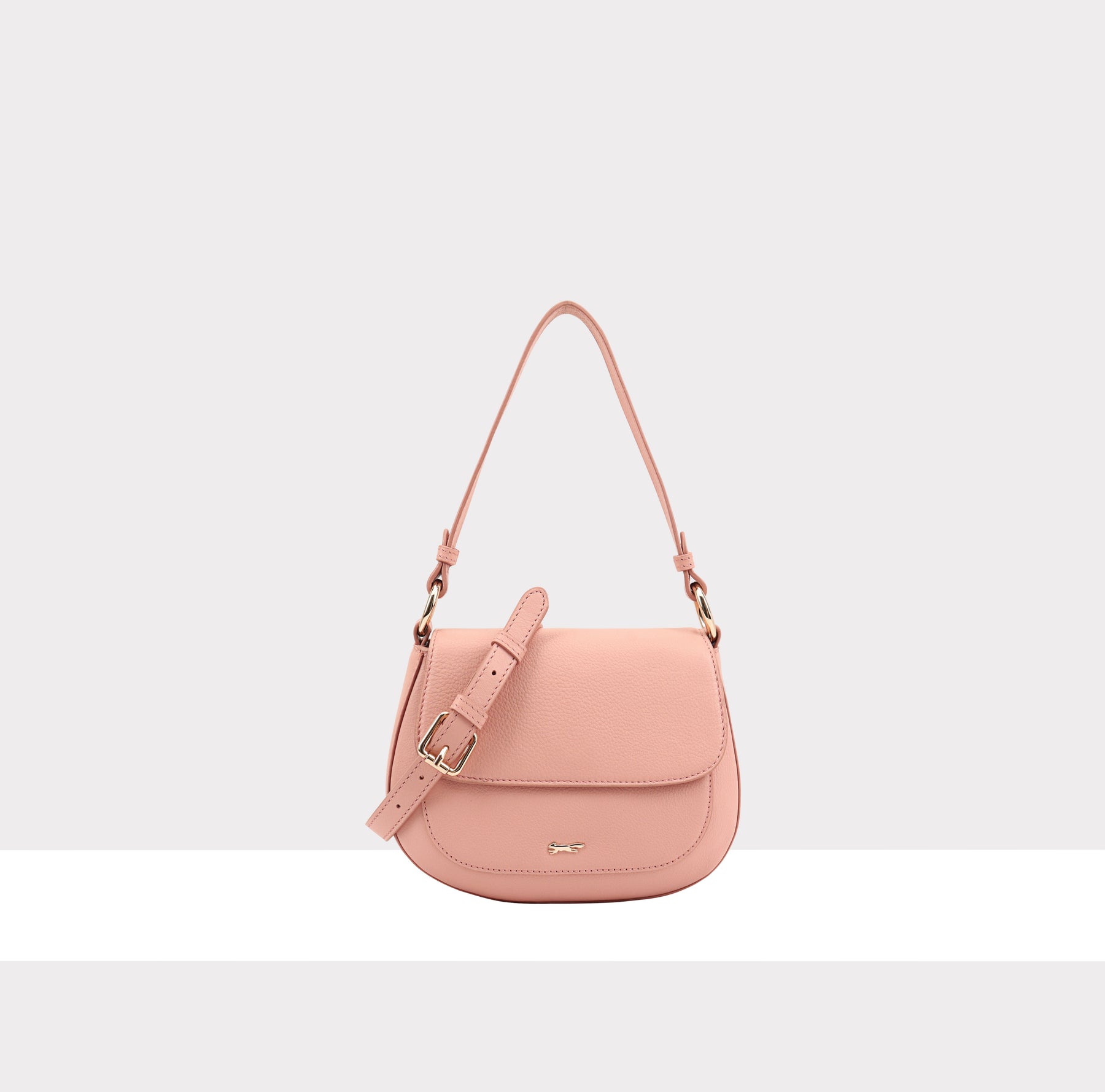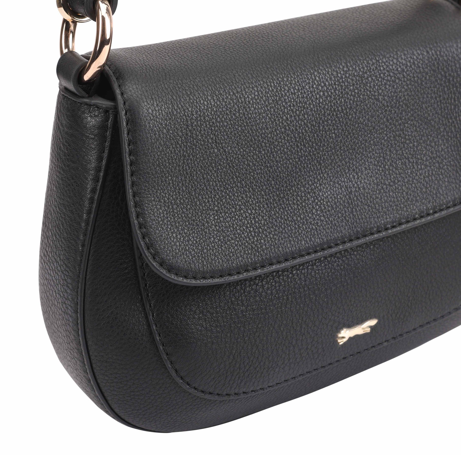 This EVERLY leather shoulder bag features a sophisticated rounded design with flap and is adorned with an elegant metal logo of the brand on the front, adding a touch of luxury. It comes with a removable and adjustable shoulder strap, providing versatile styling options for any occasion. Perfectly blending functionality with style, this bag is an essential accessory for a polished, modern look. D:8cm W:22cm H:16.5cm