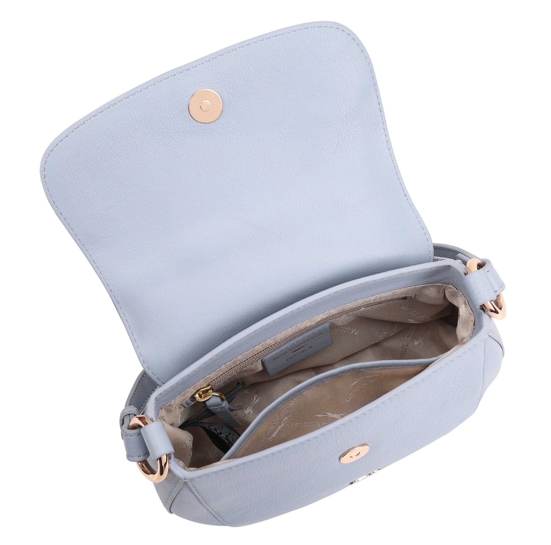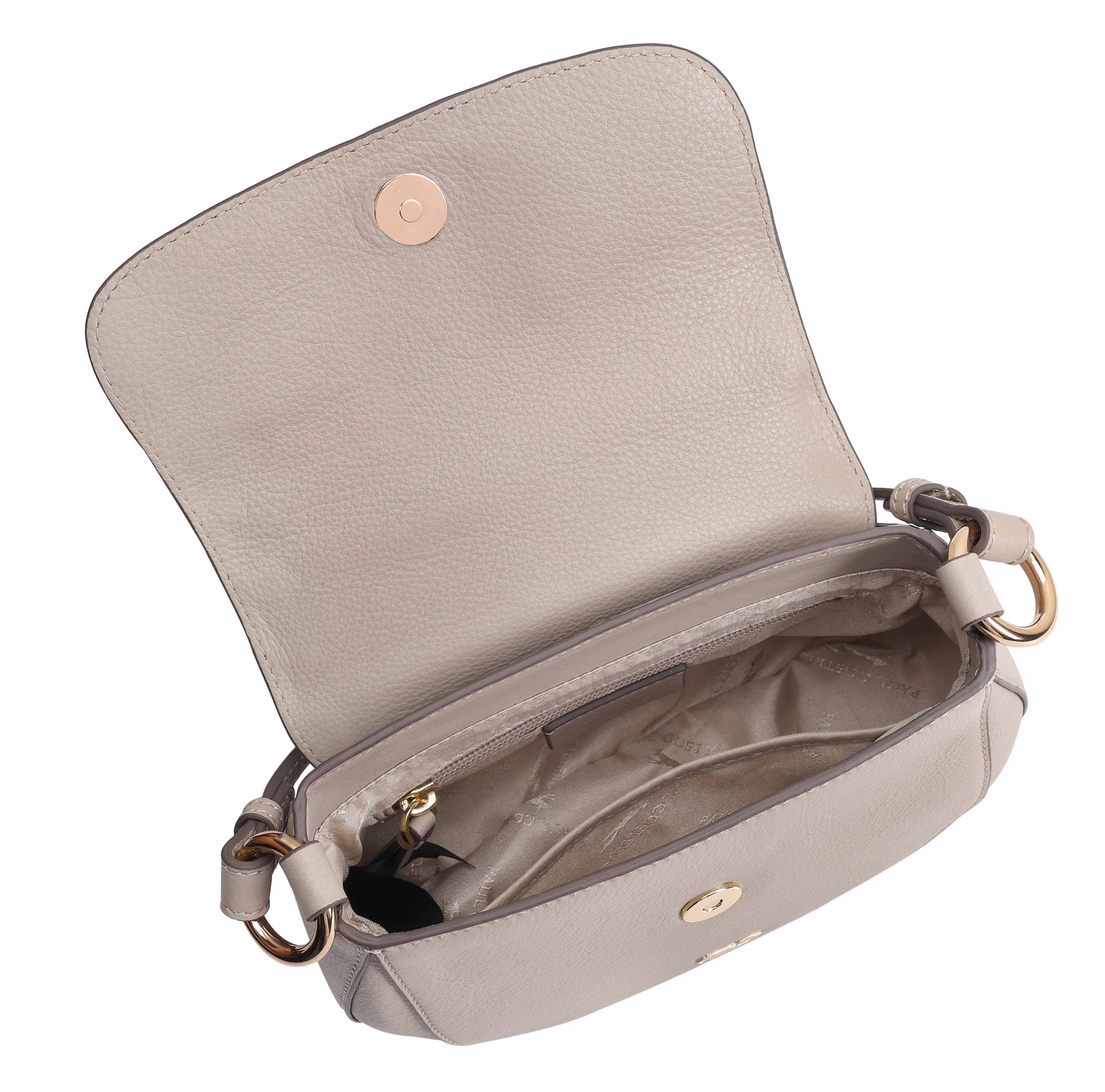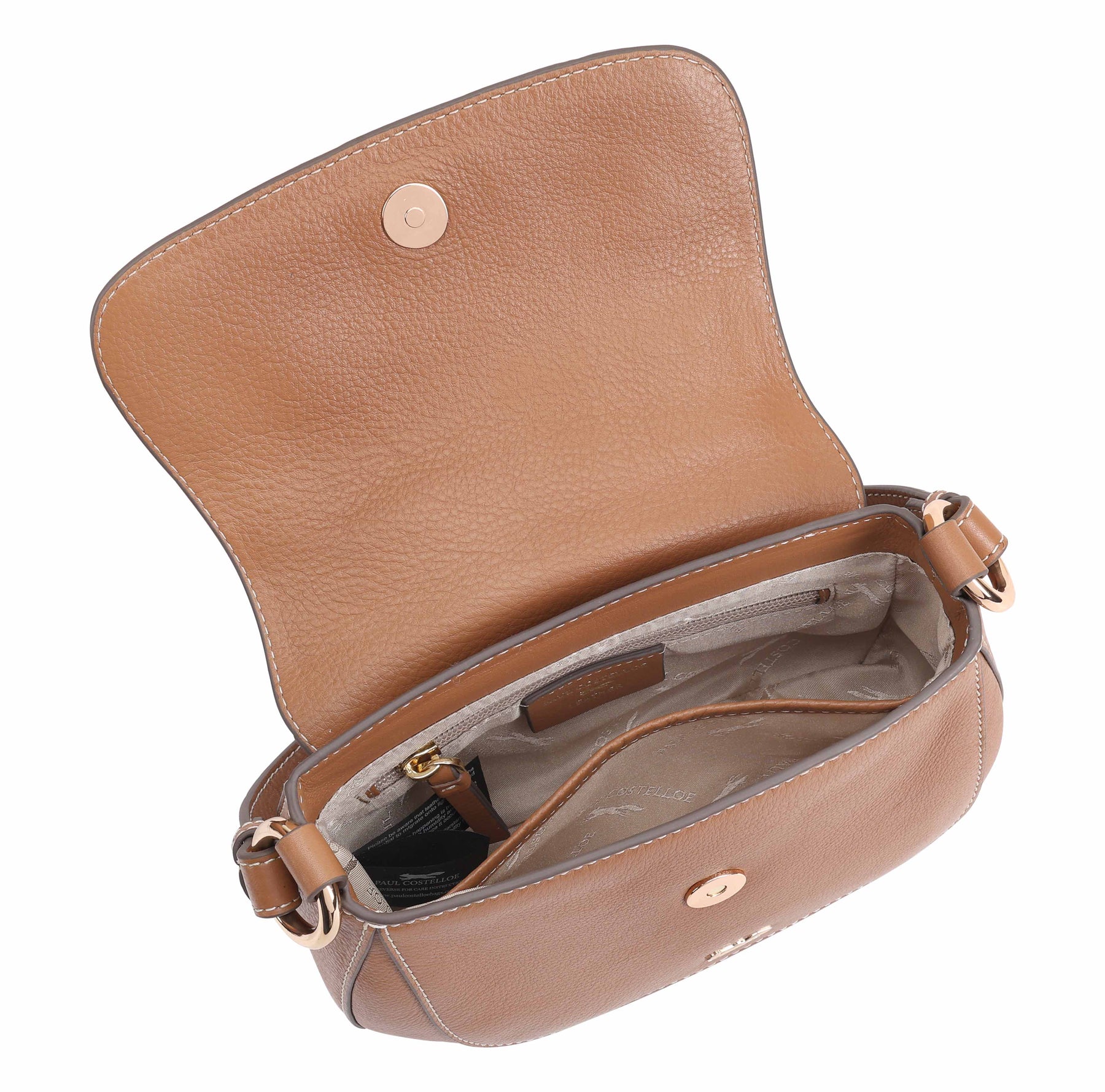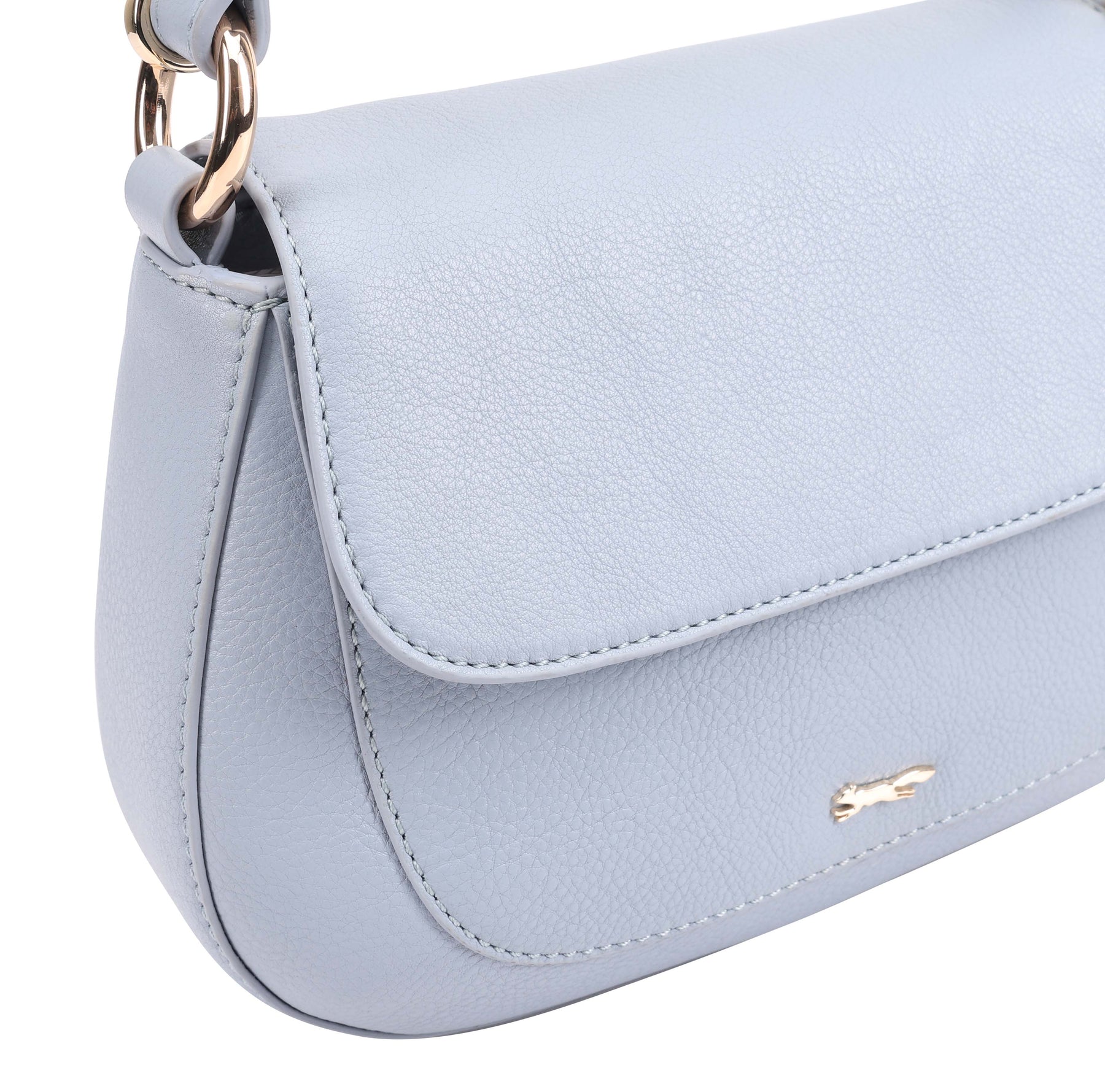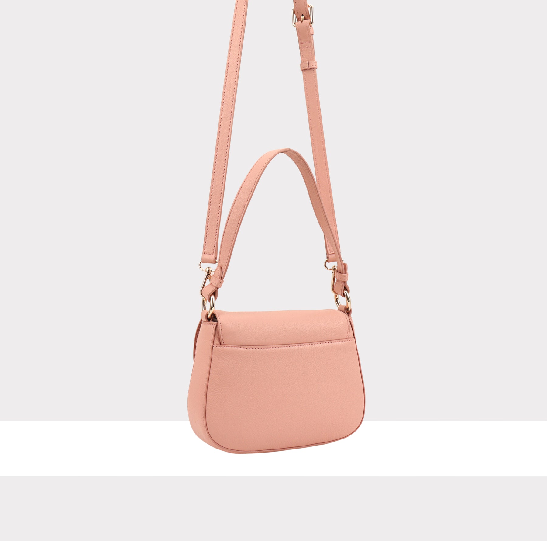 This EVERLY leather shoulder bag features a sophisticated rounded design with flap and is adorned with an elegant metal logo of the brand on the front, adding a touch of luxury. It comes with a removable and adjustable shoulder strap, providing versatile styling options for any occasion. Perfectly blending functionality with style, this bag is an essential accessory for a polished, modern look. D:8cm W:22cm H:16.5cm