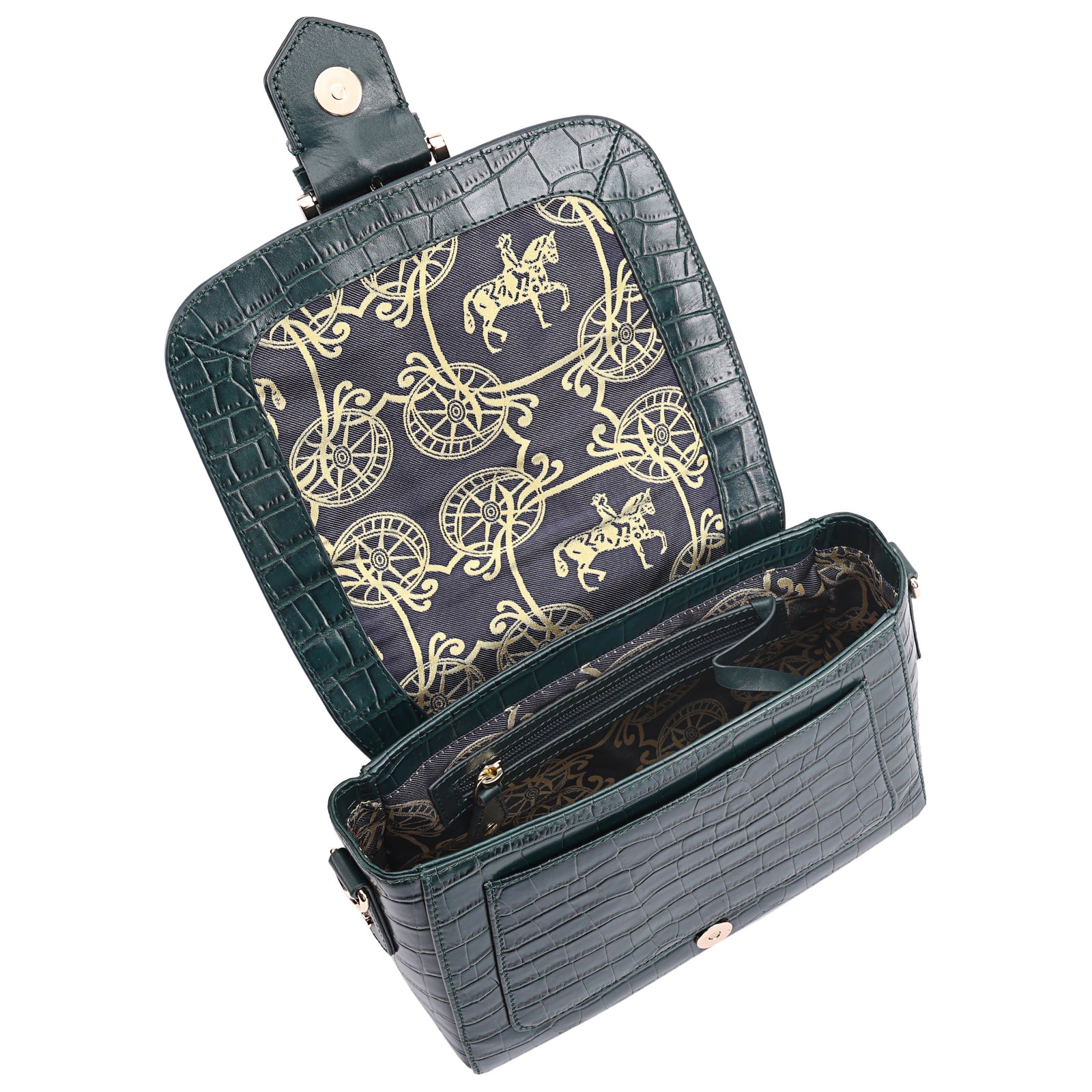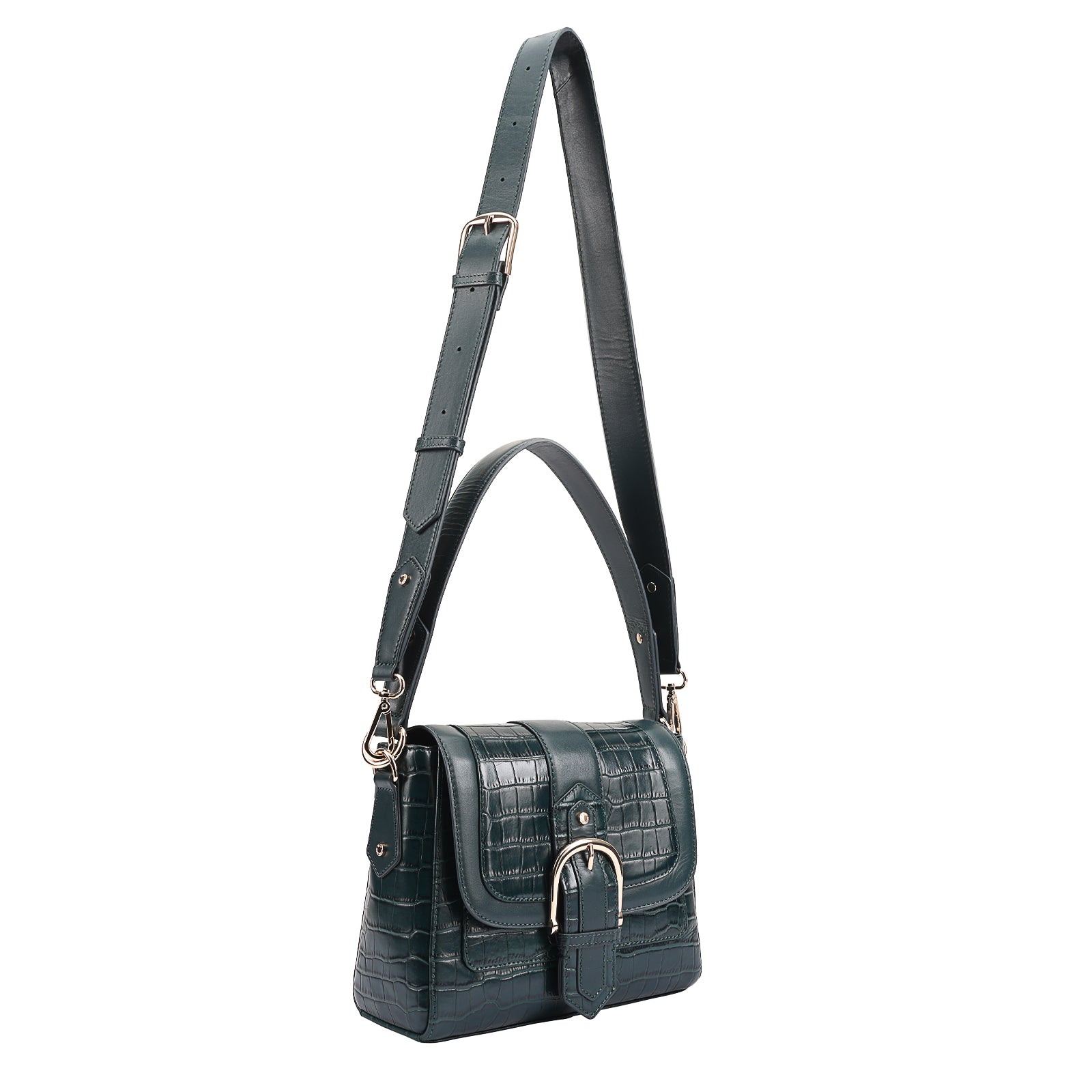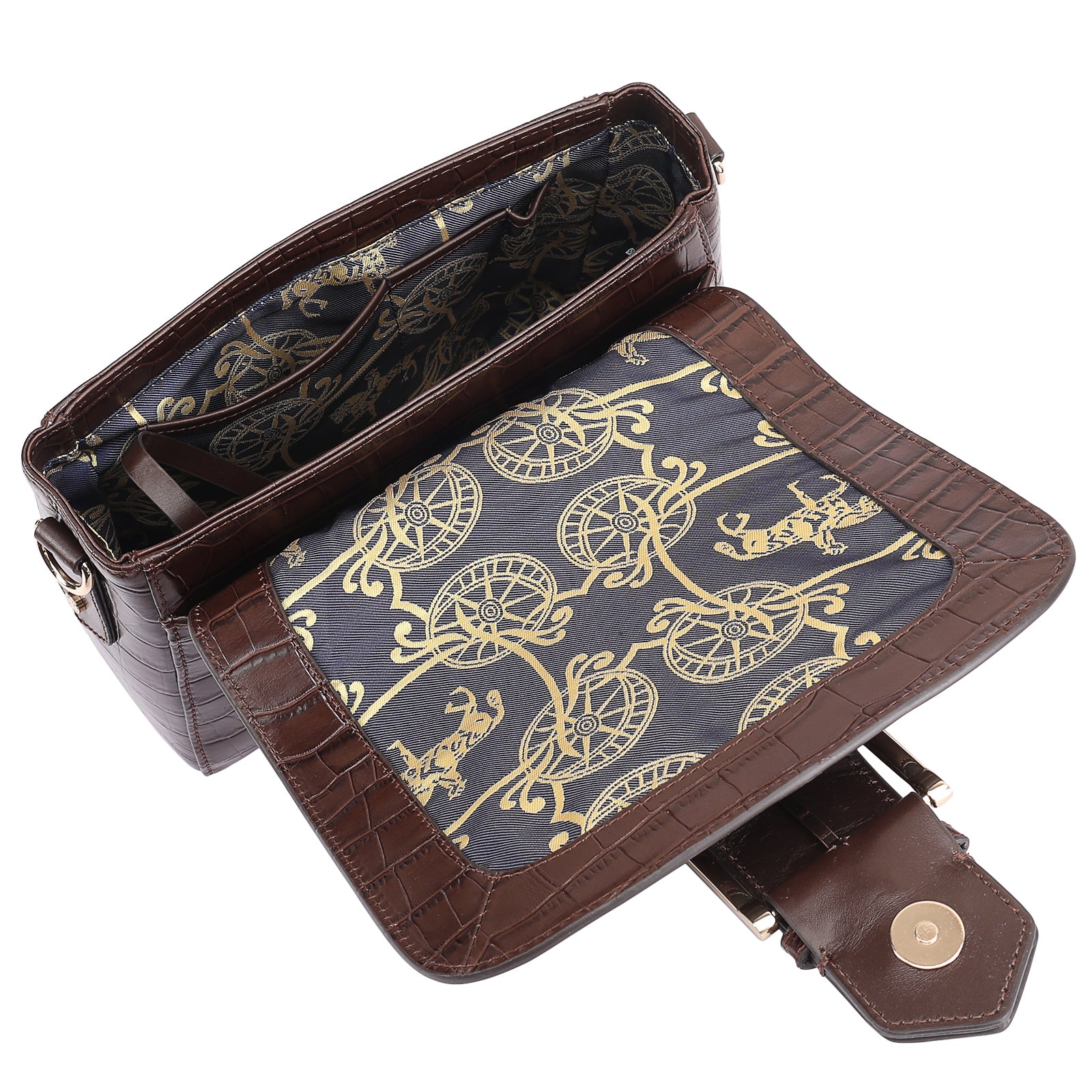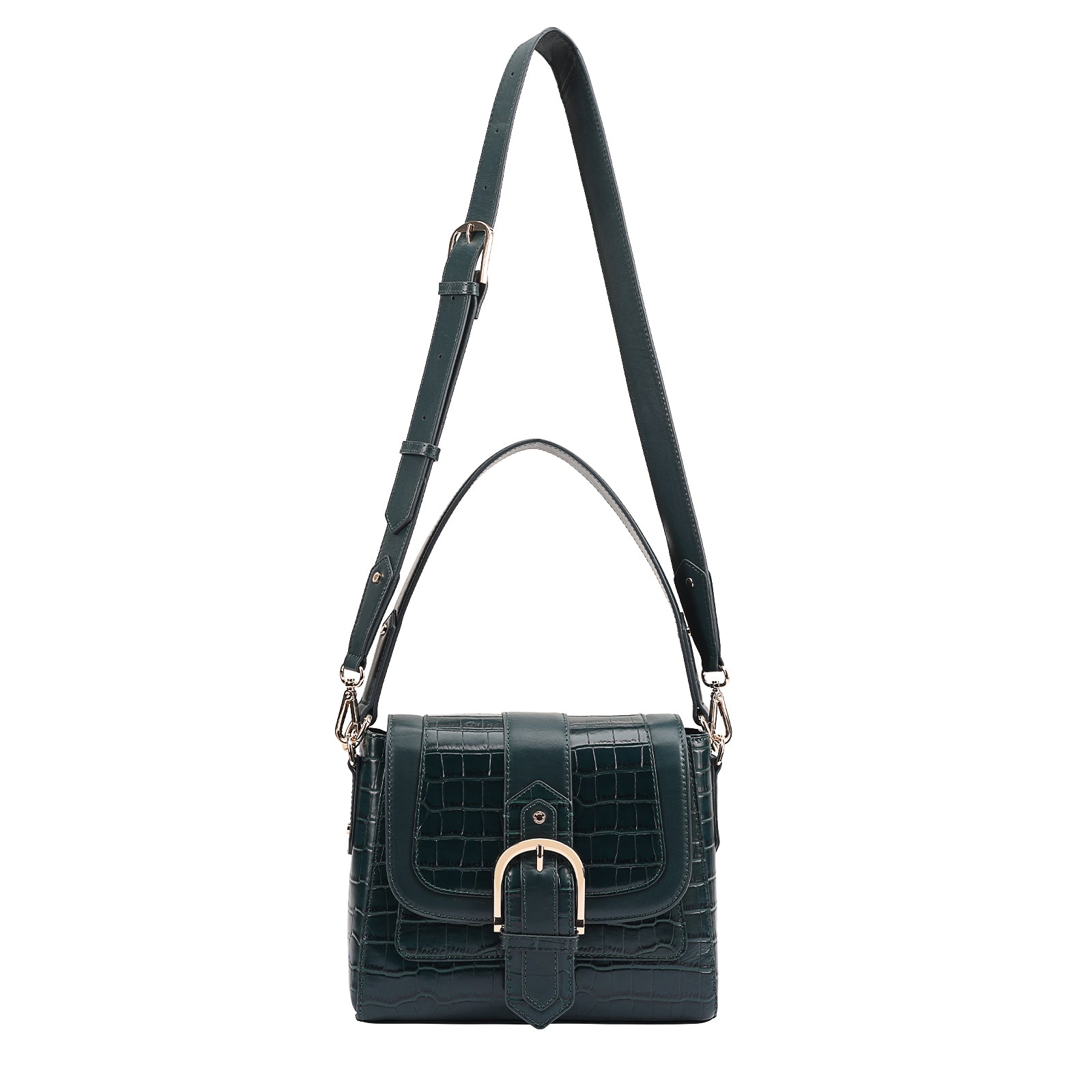 This chic leather shoulder bag is a versatile, multi-carry statement piece crafted from premium croc-embossed leather. Designed with both function and flair, it features detachable wide straps for wearing across the body or over the shoulder with a shorter option. The structured silhouette is elevated by gleaming branded metal fittings, logos, and studs, while the clean, spacious interior—lined with a signature printed fabric—includes a secure zipped pocket and an easy-access slip pocket under the flap. Perfectly blending sophistication and practicality, it’s a great-value designer bag for both work and evening occasions.