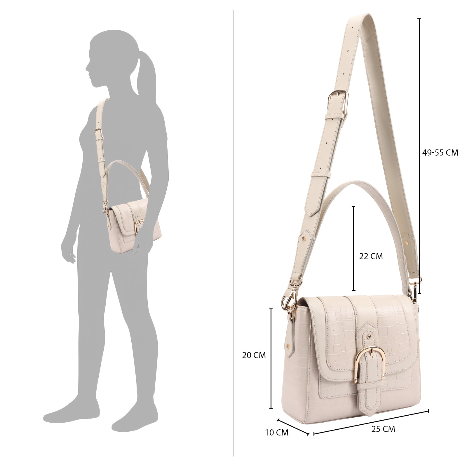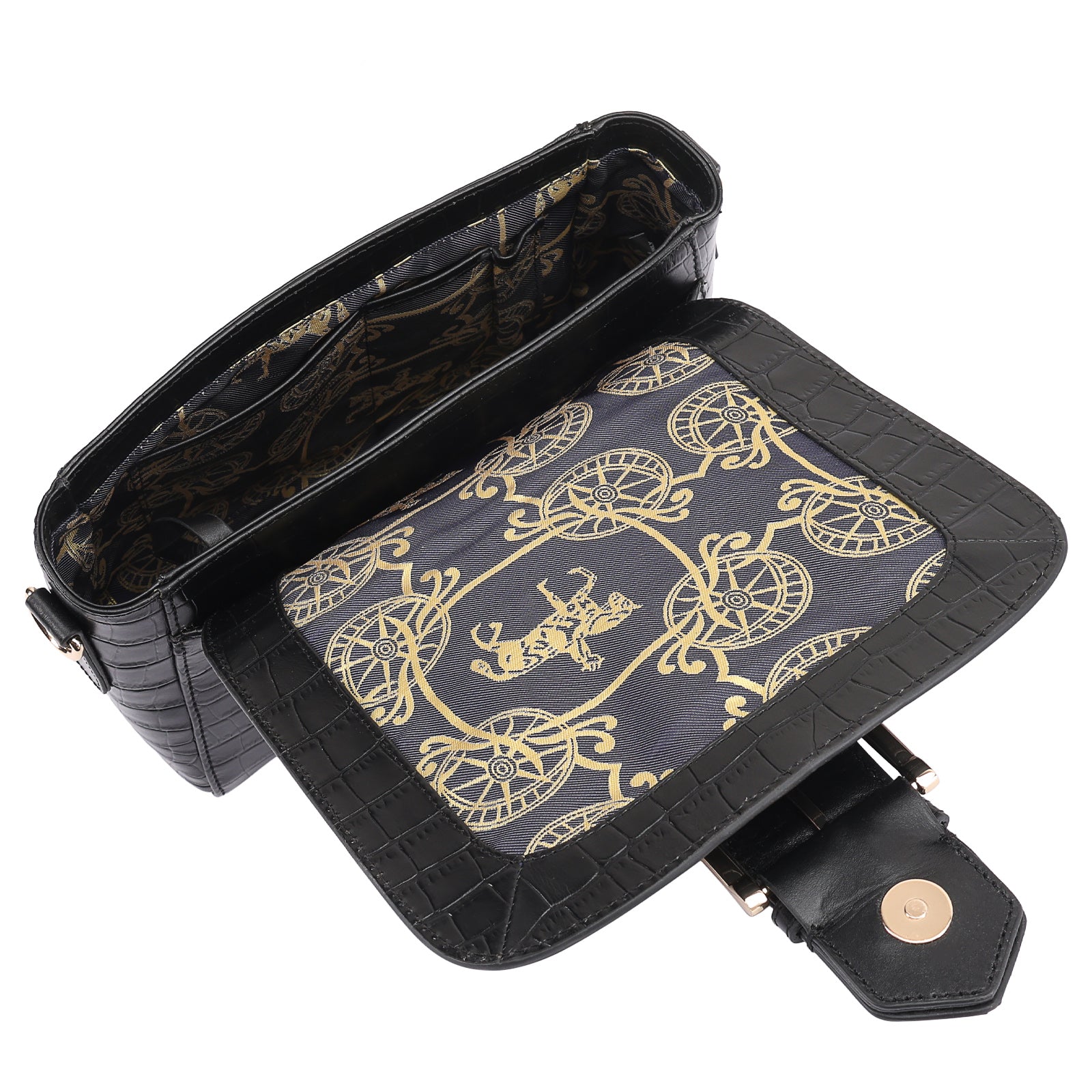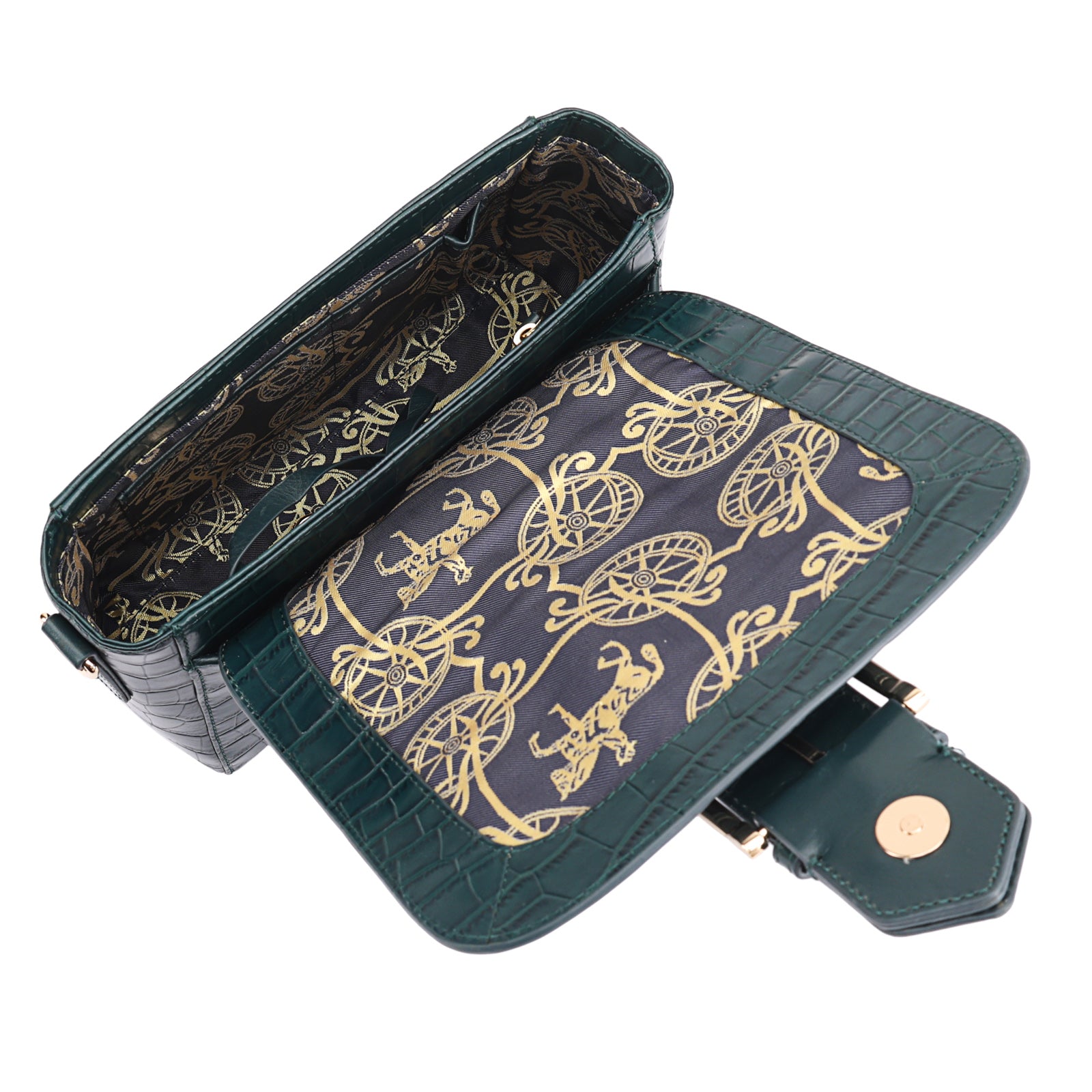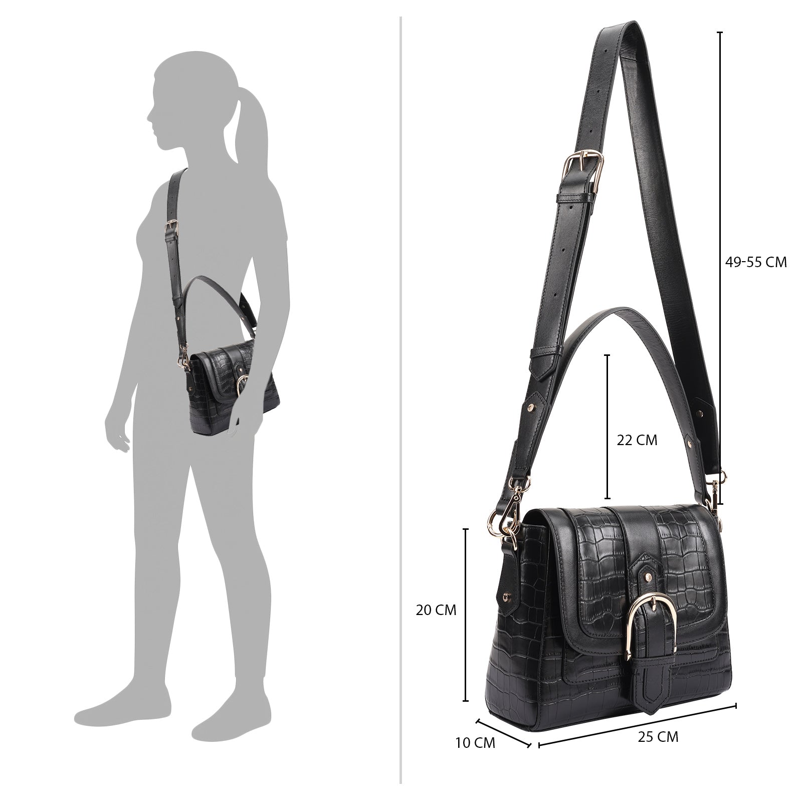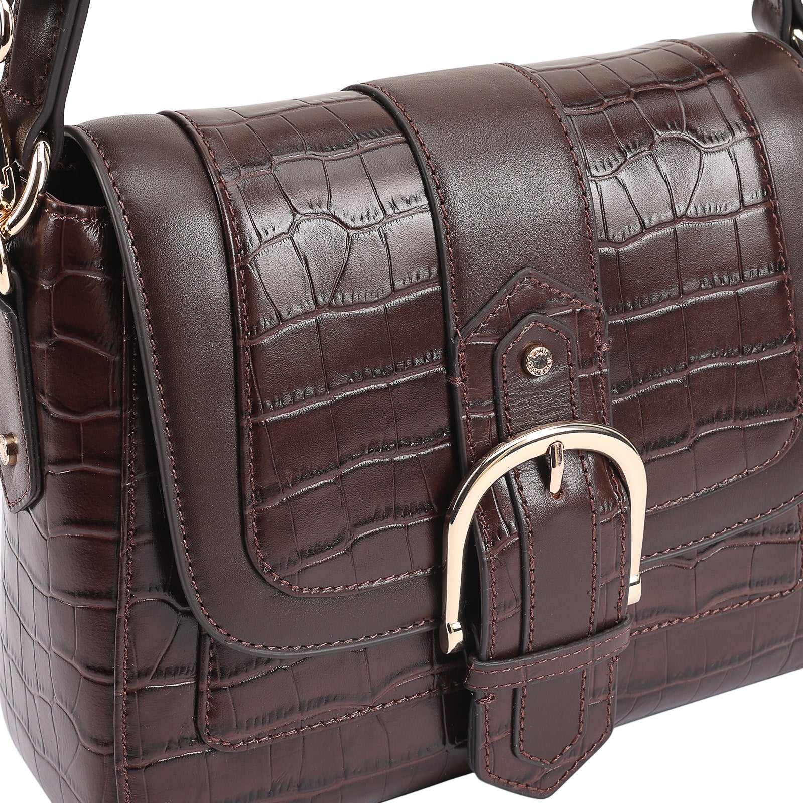 This chic leather shoulder bag is a versatile, multi-carry statement piece crafted from premium croc-embossed leather. Designed with both function and flair, it features detachable wide straps for wearing across the body or over the shoulder with a shorter option. The structured silhouette is elevated by gleaming branded metal fittings, logos, and studs, while the clean, spacious interior—lined with a signature printed fabric—includes a secure zipped pocket and an easy-access slip pocket under the flap. Perfectly blending sophistication and practicality, it’s a great-value designer bag for both work and evening occasions.