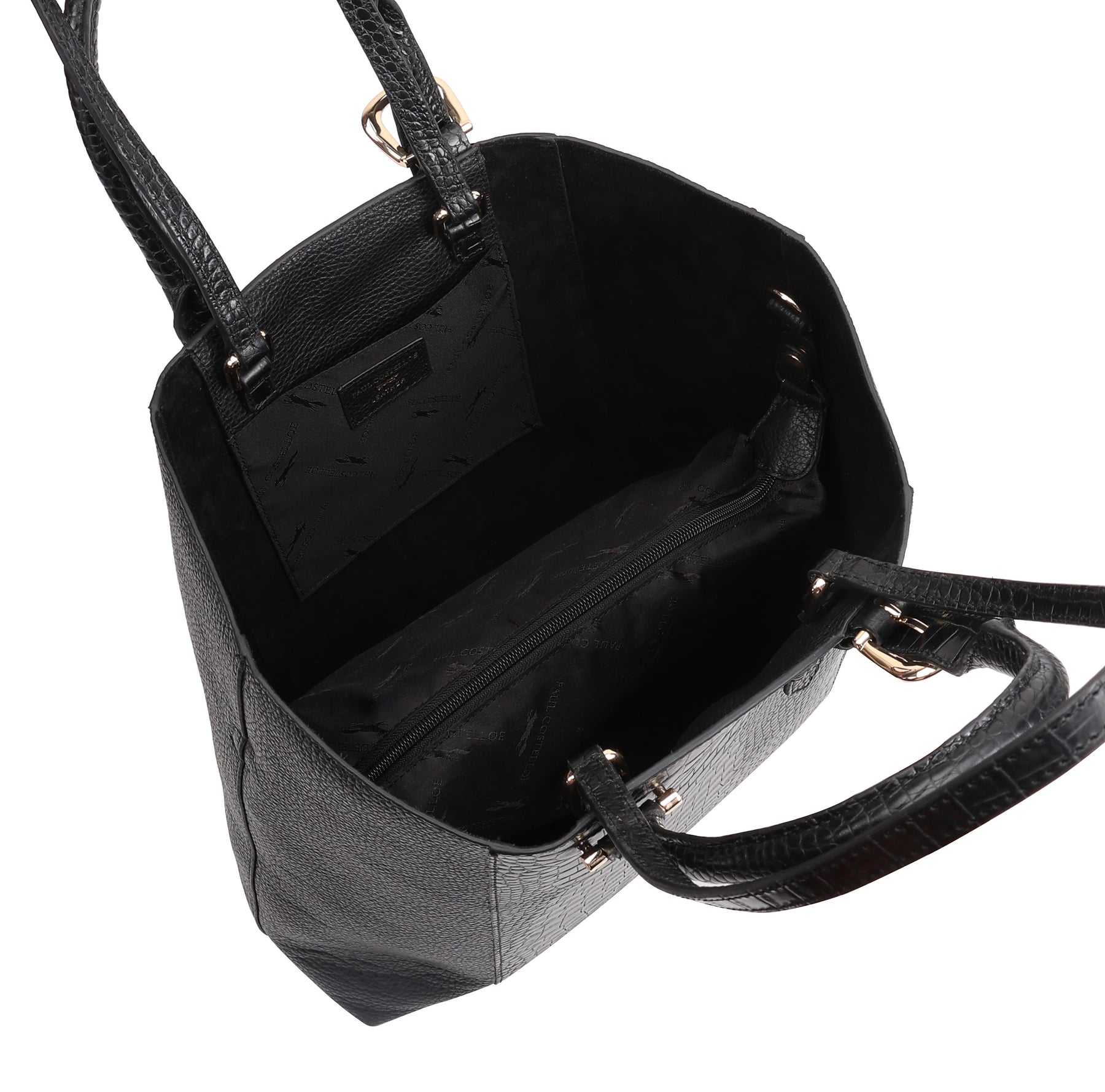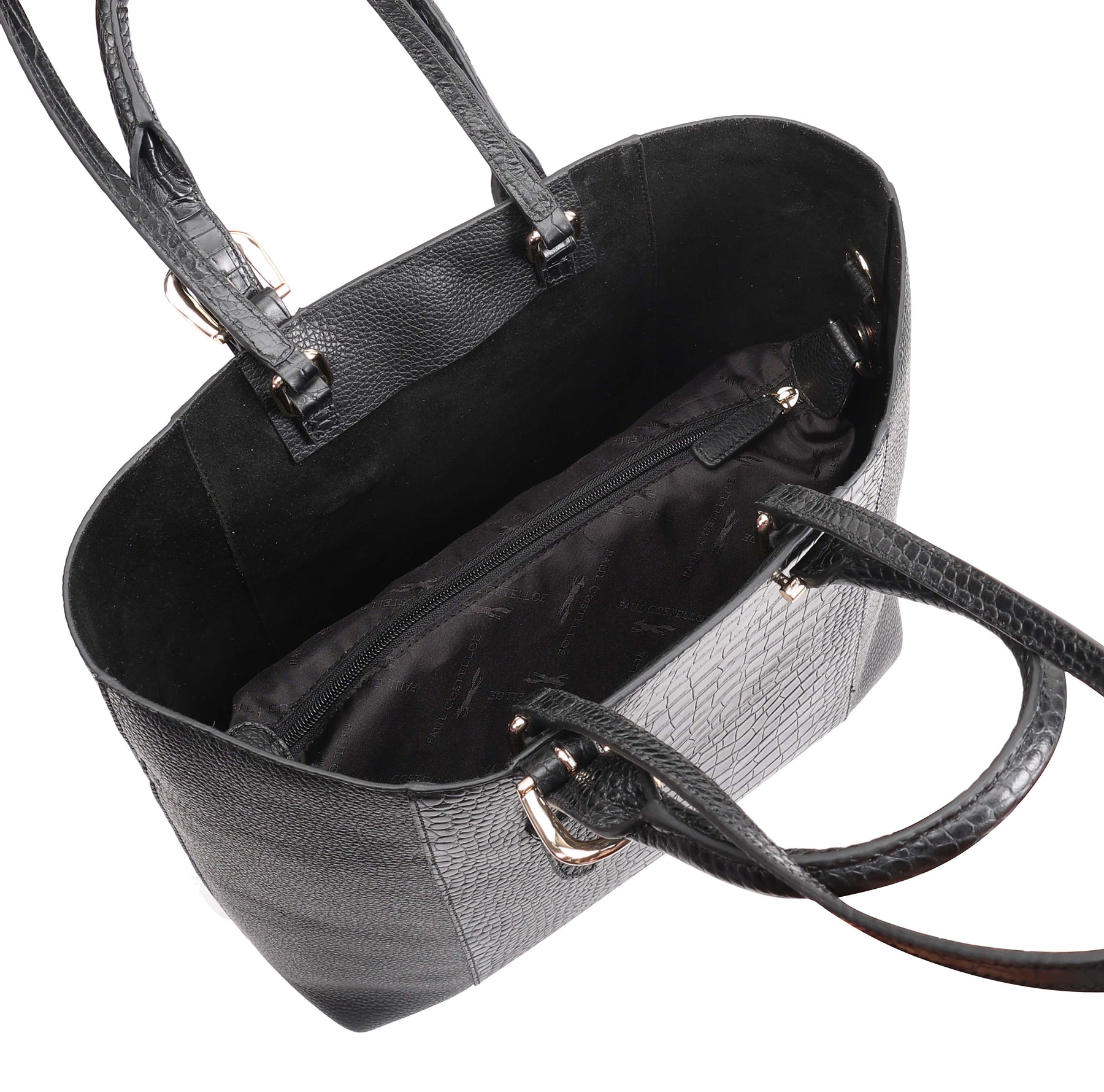 This stylish leather tote bag is crafted from smooth, genuine leather with a luxurious croc pattern, offering both elegance and durability. Designed for versatility, it features multiple carry options to suit your specific needs, whether you prefer shoulder or hand carry. Inside, a removable pouch provides added convenience, perfect for keeping small essentials organized and easily accessible. Ideal for everyday use, this tote combines practicality with sophistication, making it the perfect multipurpose accessory. D:12cm W:34cm H:33cm