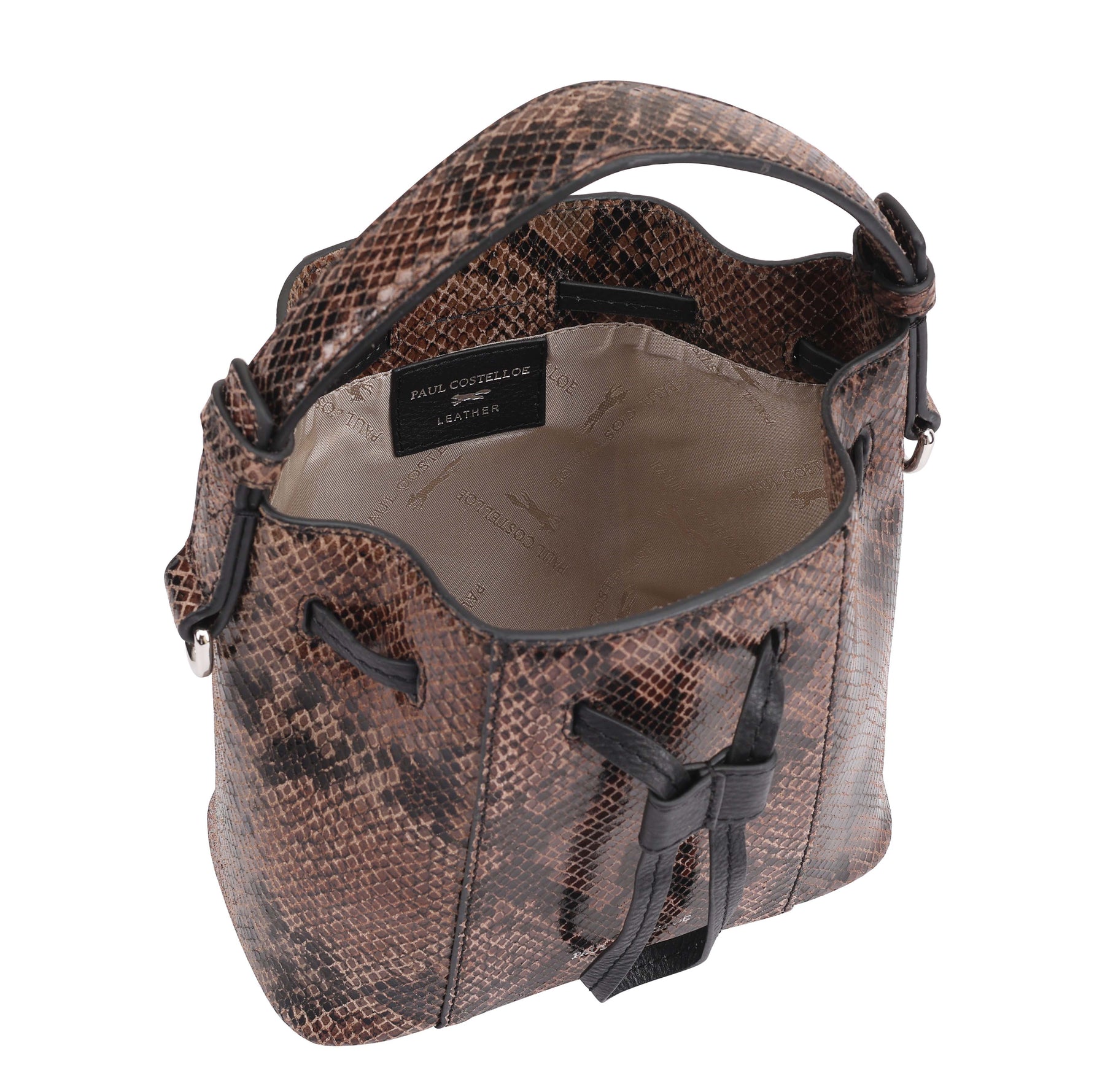 A trendy bucket-shaped multiway bag crafted in premium leather, featuring a secure drawstring closure and spacious, clean-lined interior-perfect for carrying all your travel essentials in style. Designed for versatility, it offers dual carry options with sturdy grab handles and a removable, adjustable shoulder strap, making it a chic and functional companion for everyday or getaway moments..