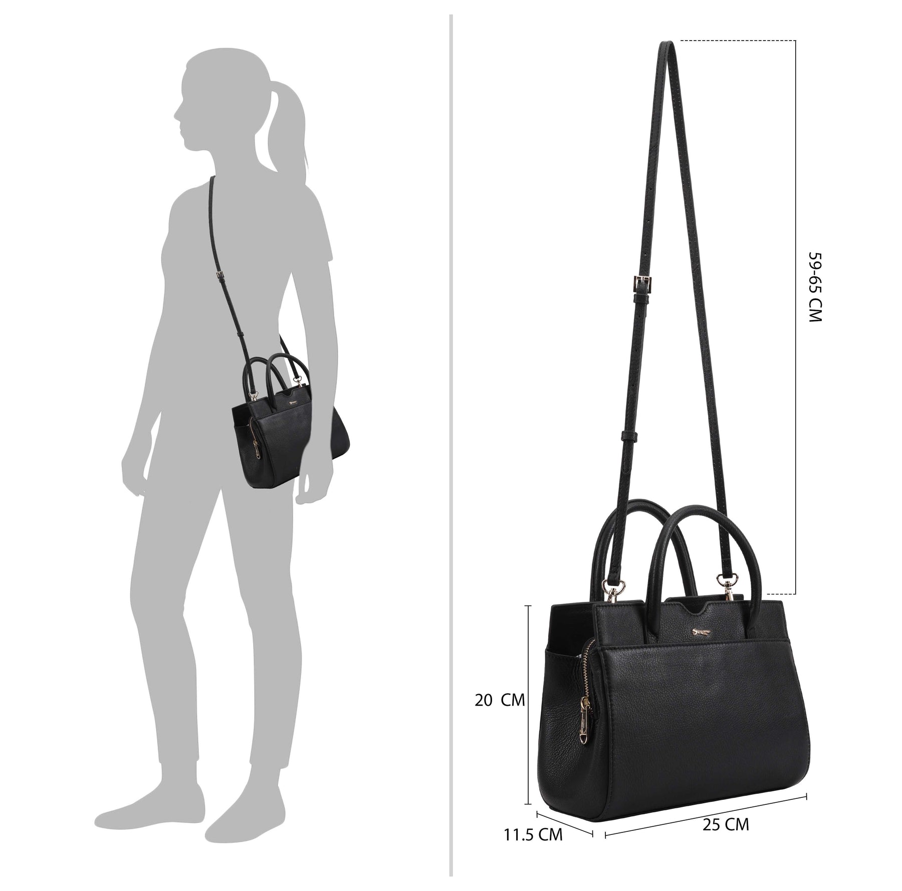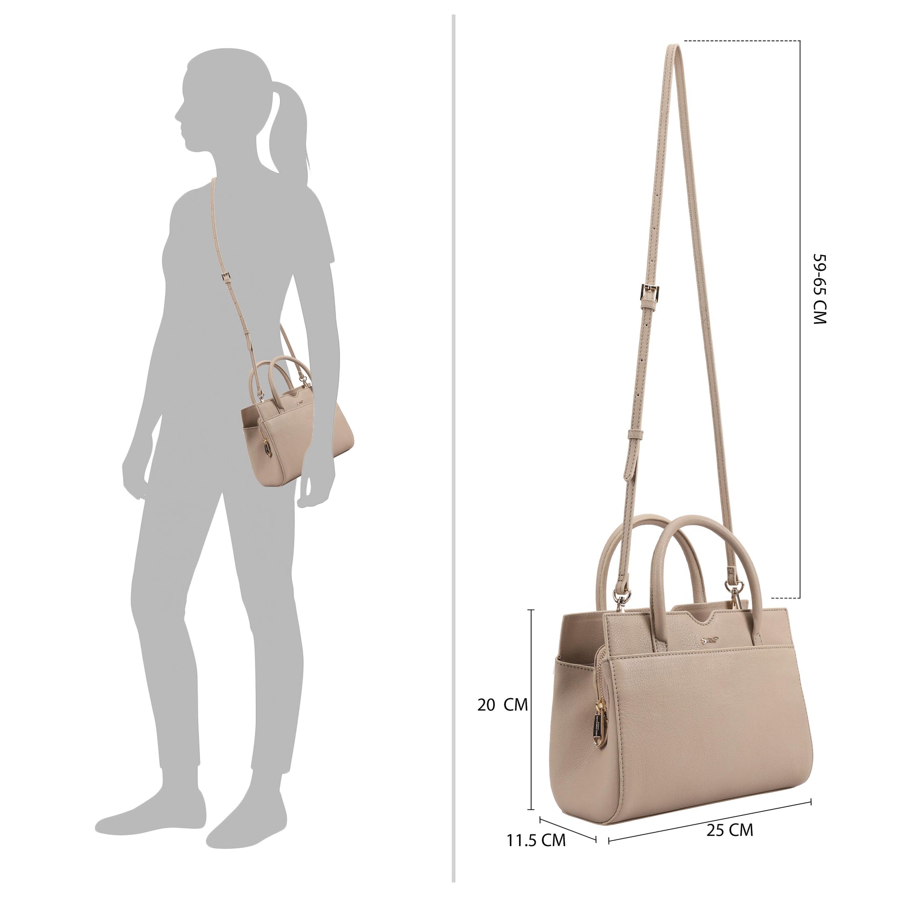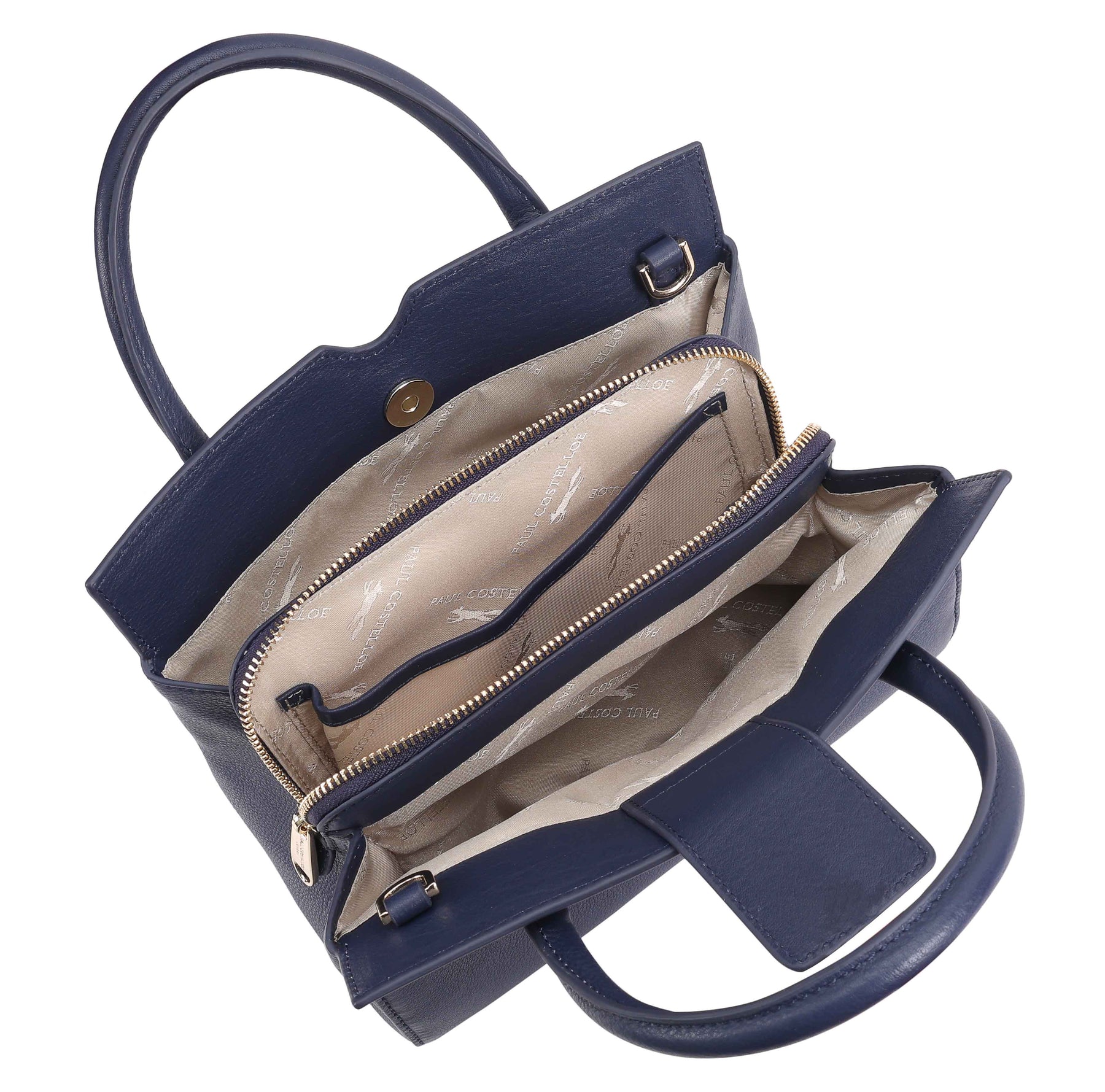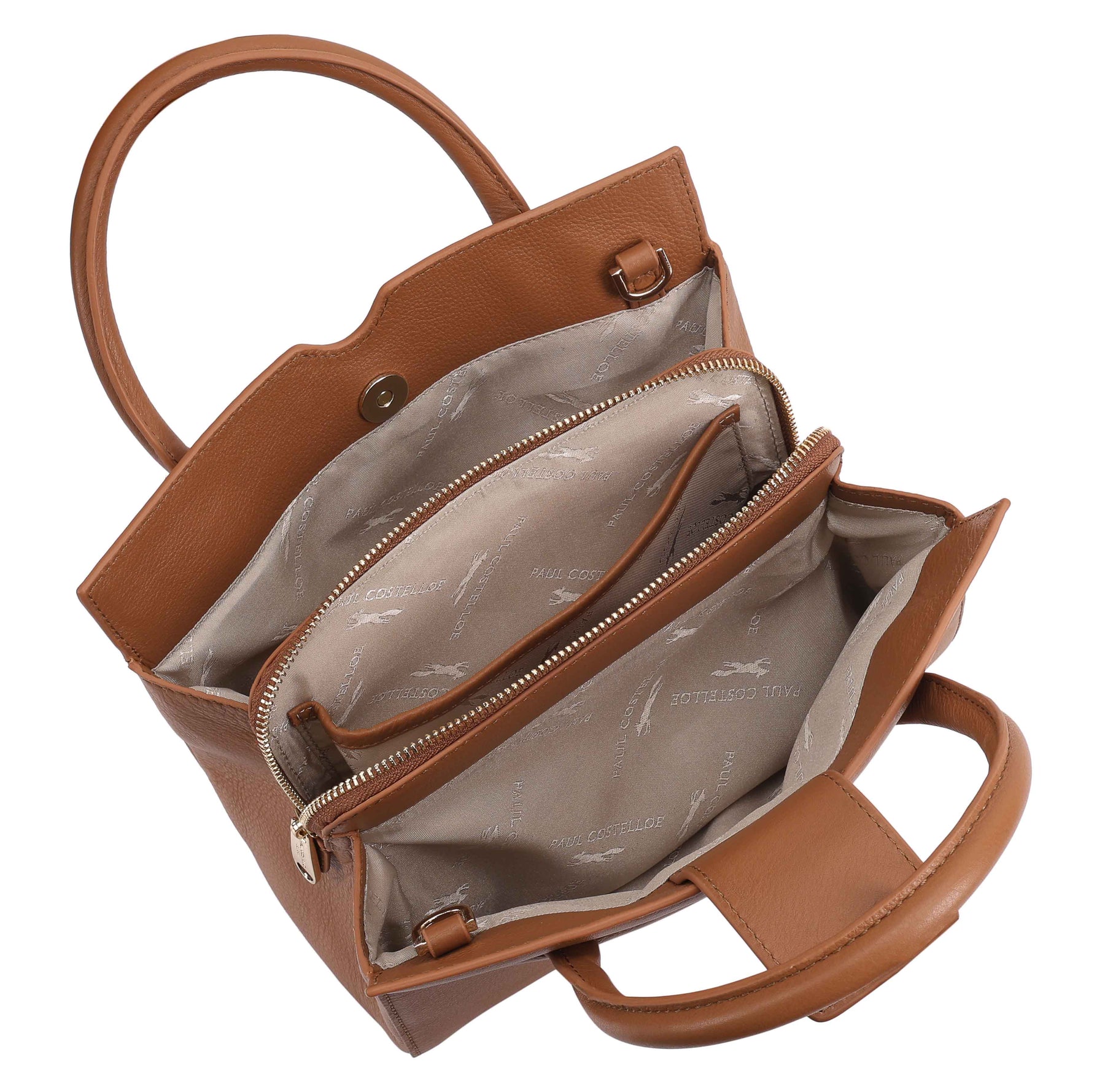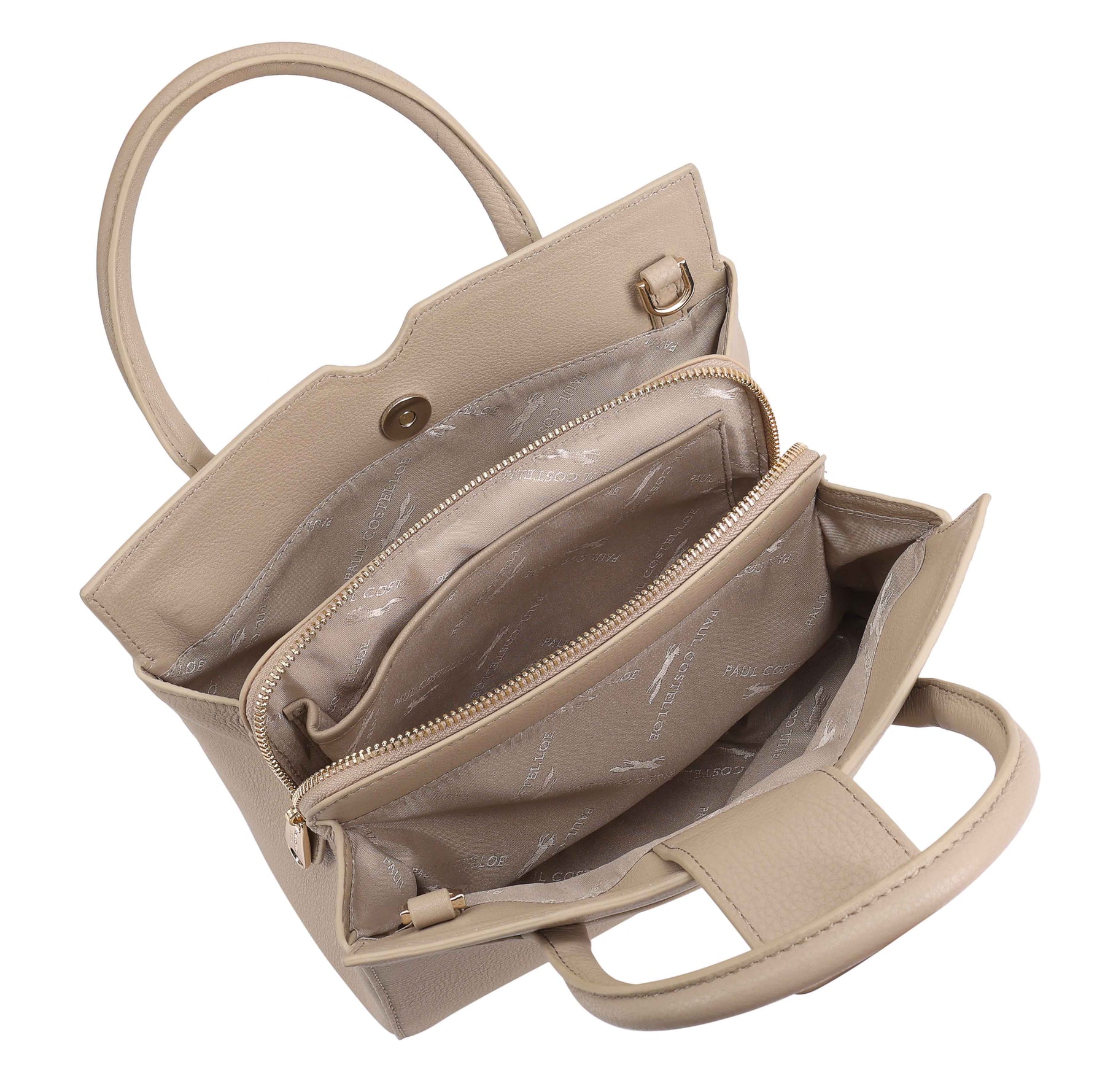 This versatile grab bag, the Paul Costelloe HUNZA, combines functionality with elegance, featuring two compartments a central zipped section, all secured with a magnetic tab. In addition to grab handles, it offers a removable and adjustable shoulder strap for flexible carrying options. A full-size slip pocket on the front and a refined logo pin enhance its classic appeal, making it a stylish and practical choice for everyday use. D:11.50cm W:25cm H:20cm
