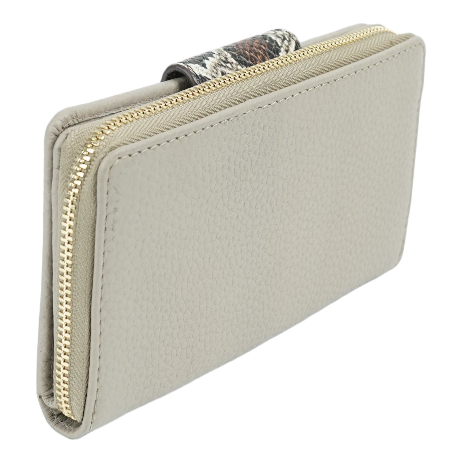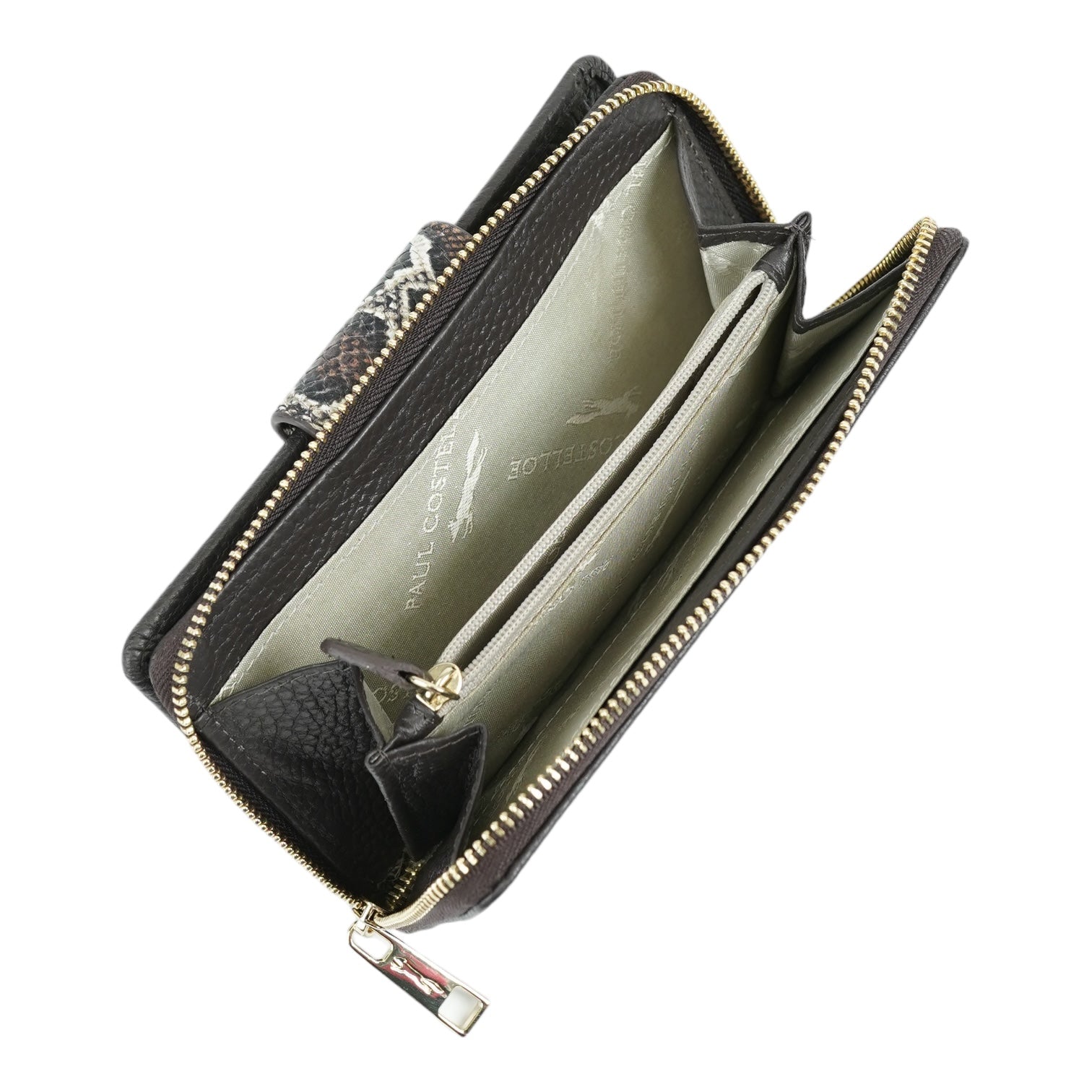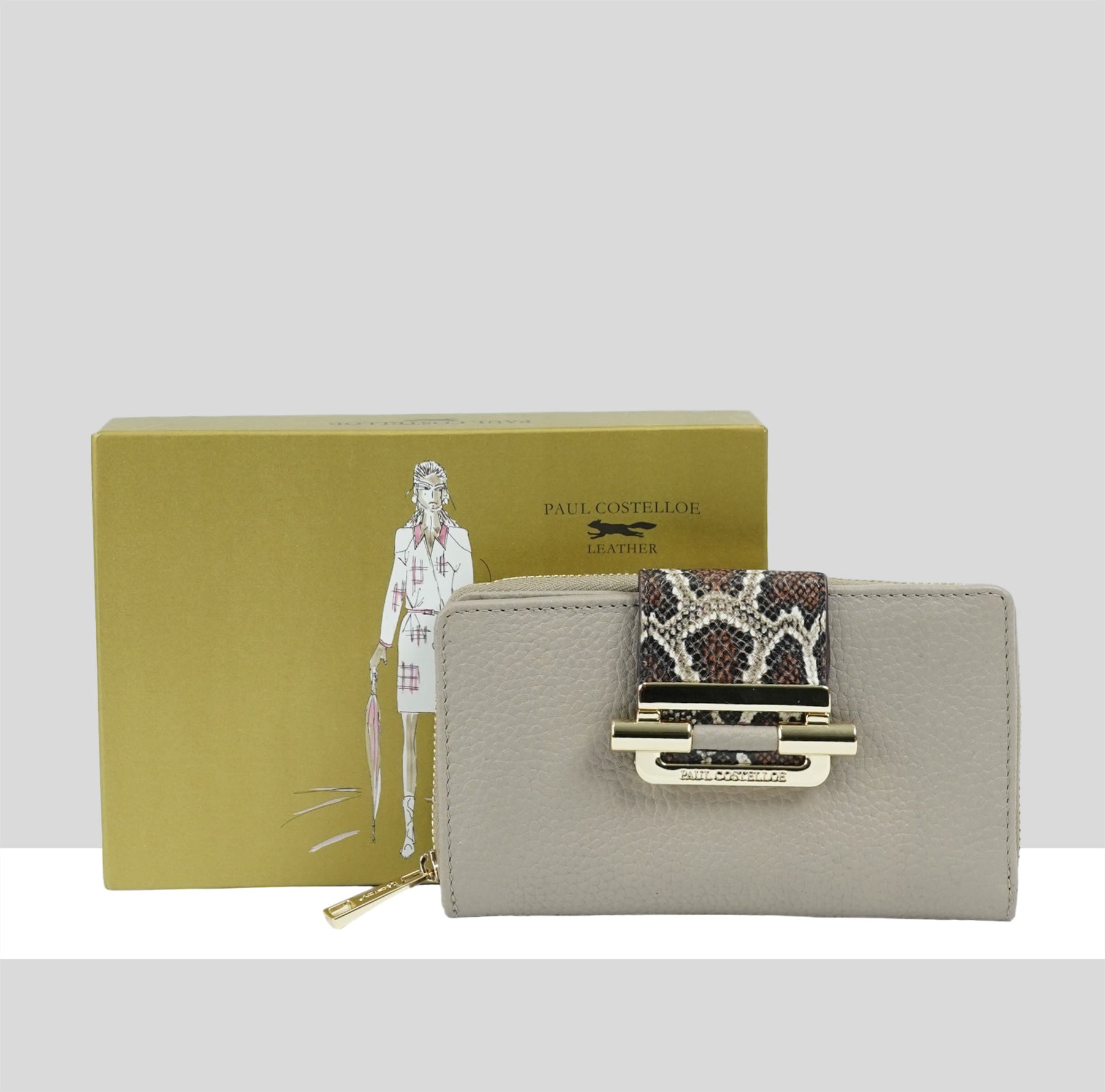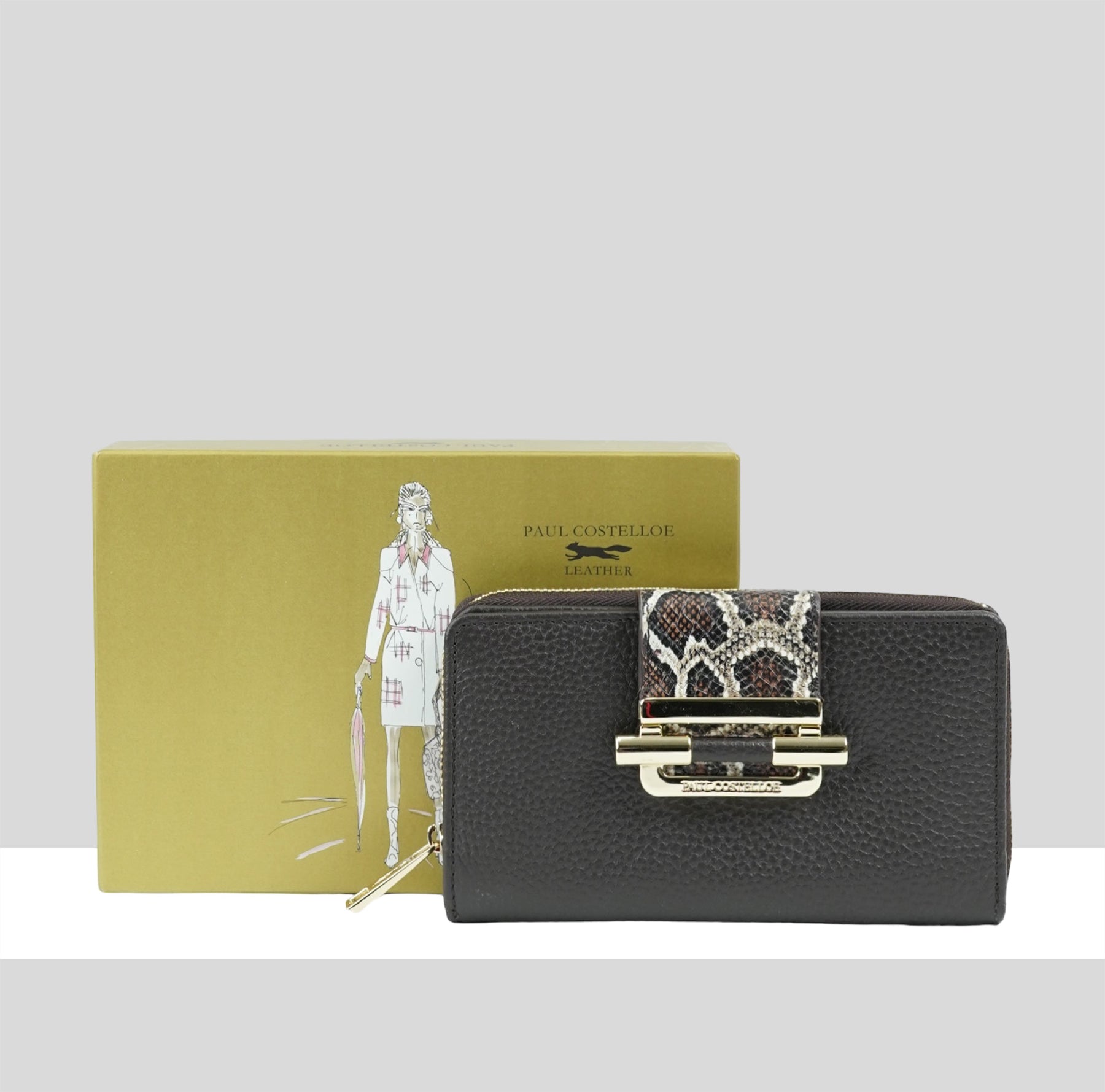 A zip-around leather purse crafted from soft, supple leather, featuring separate sections for cards and notes secured with a stylish designer flap loop. It includes a clear ID slot for added convenience and easy access. Neatly presented in a gift box, this great value purse is ideal for everyday use or thoughtful gifting.