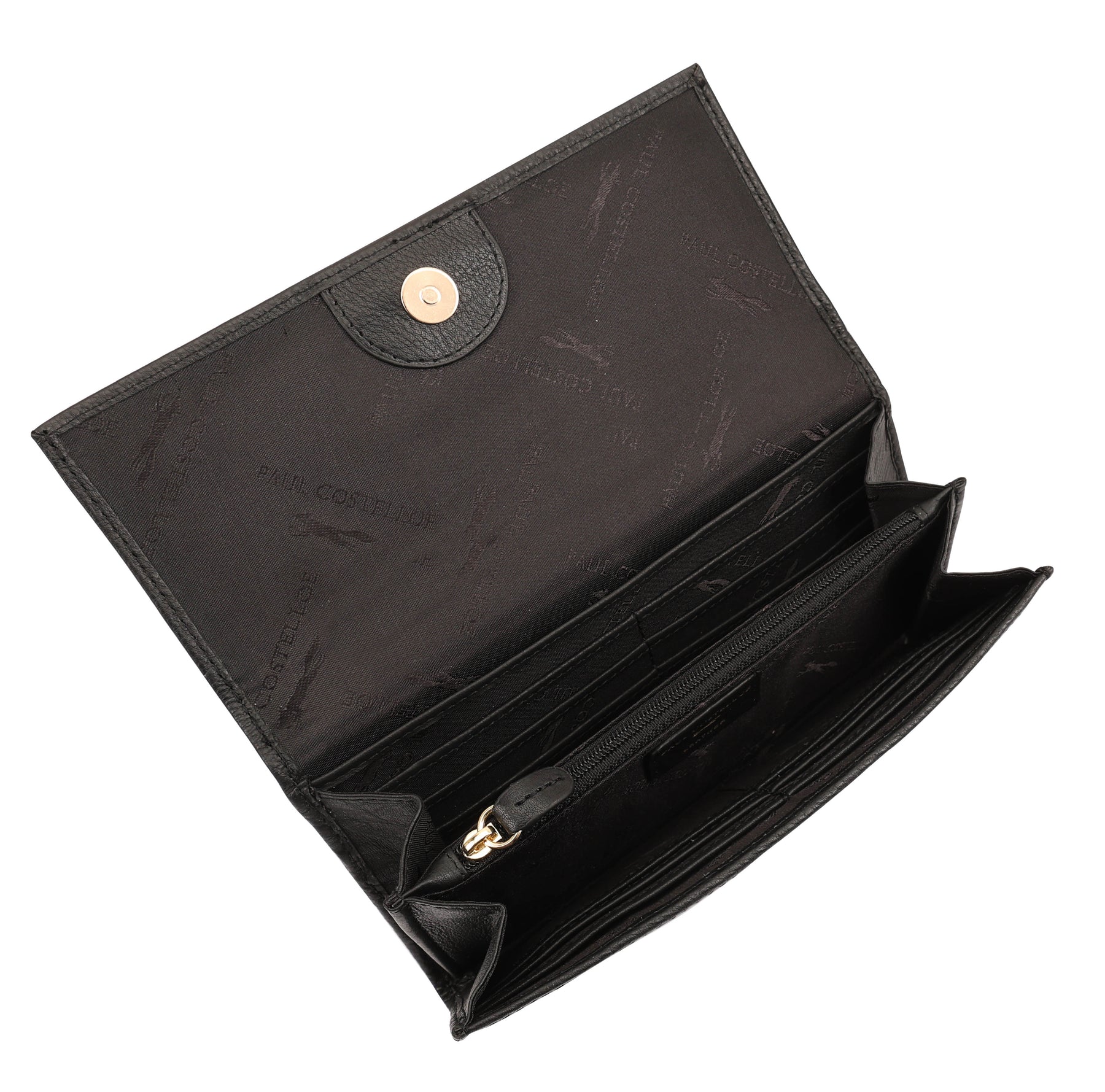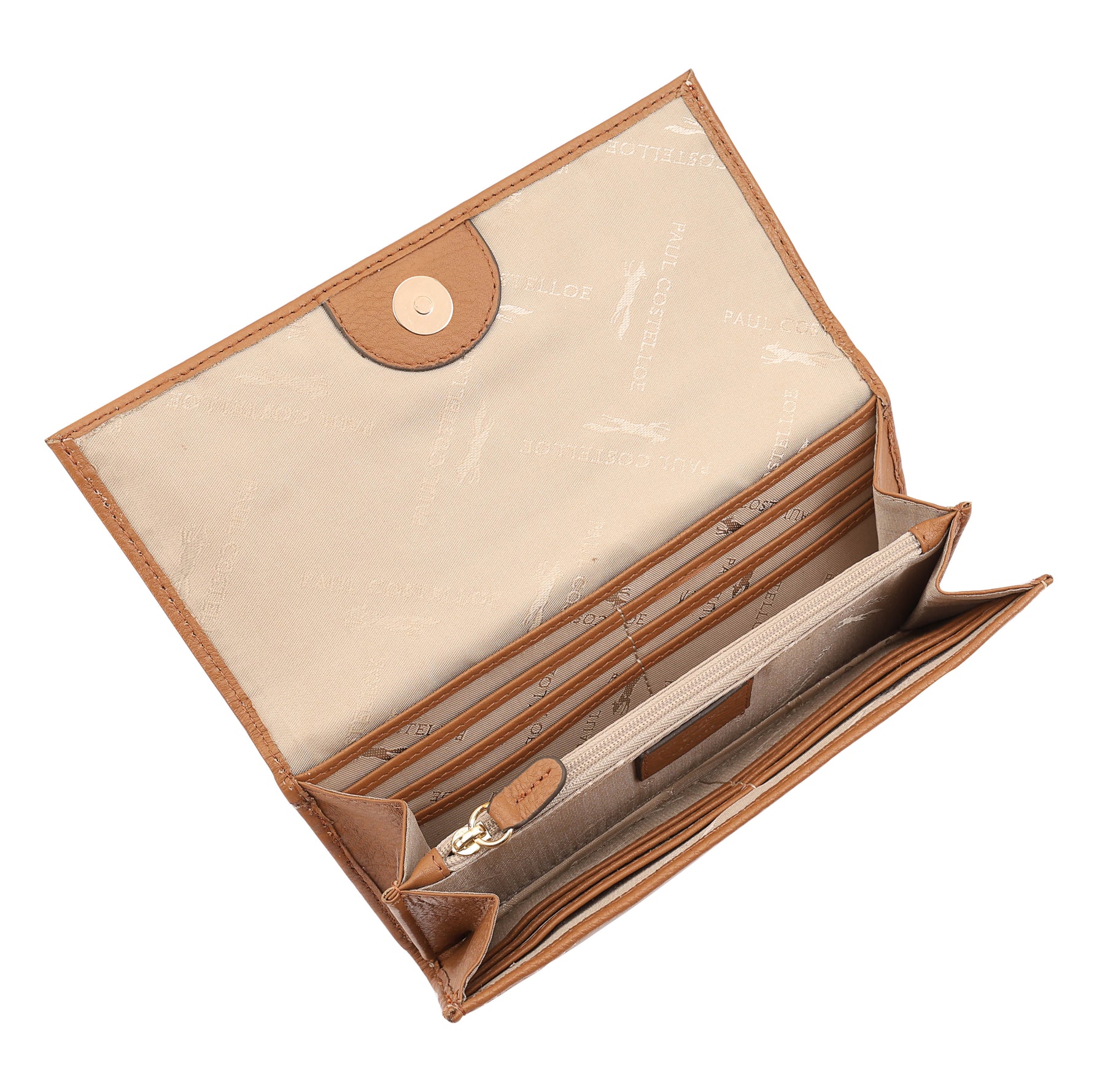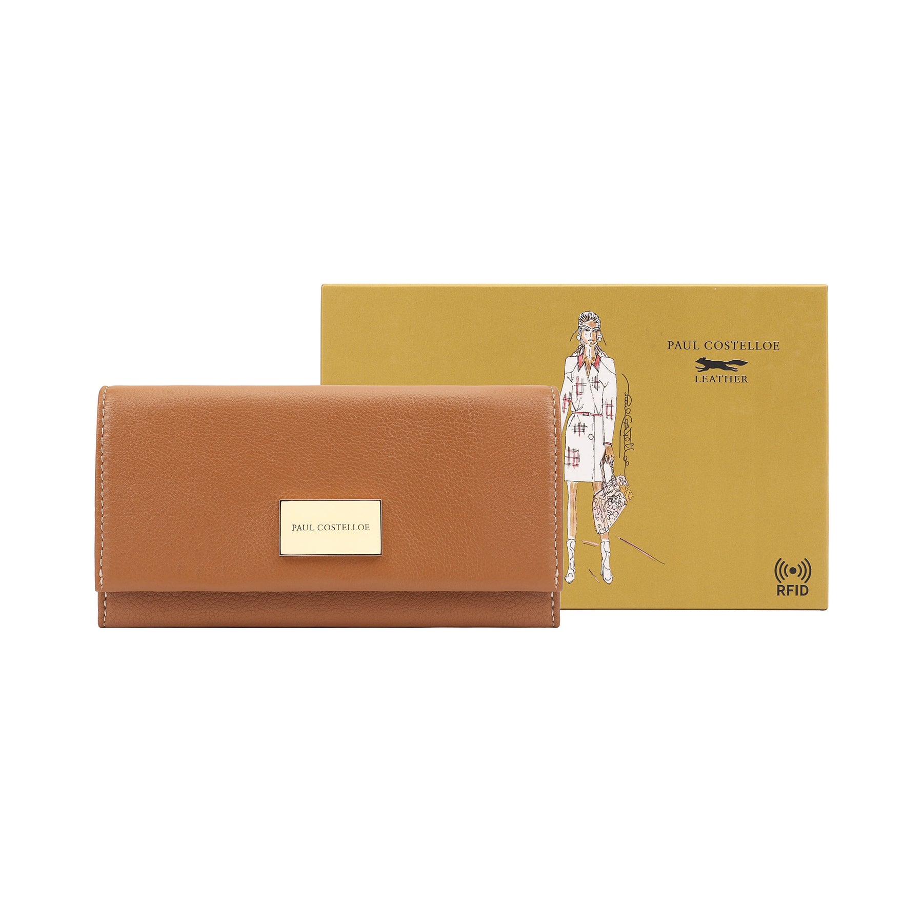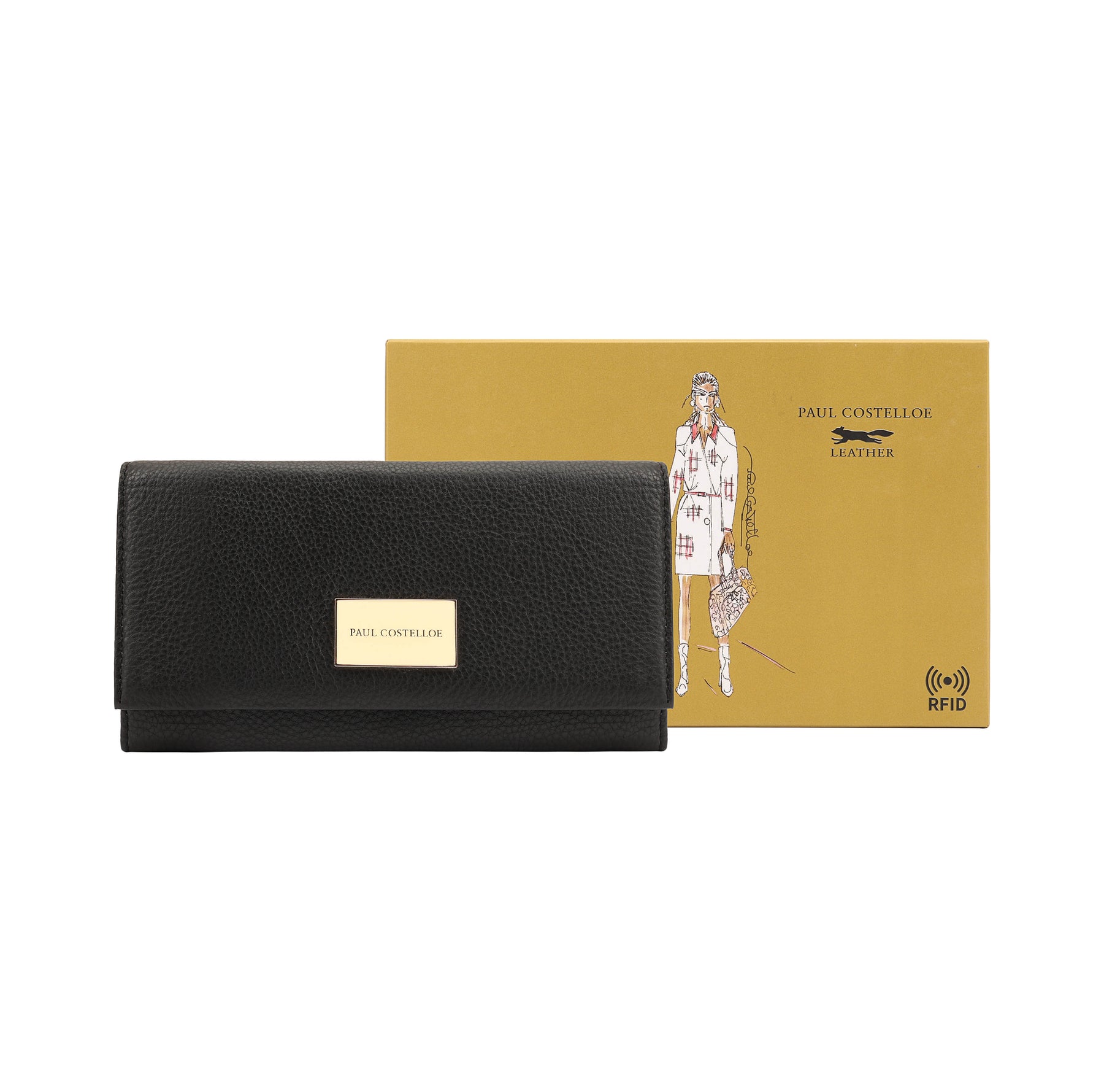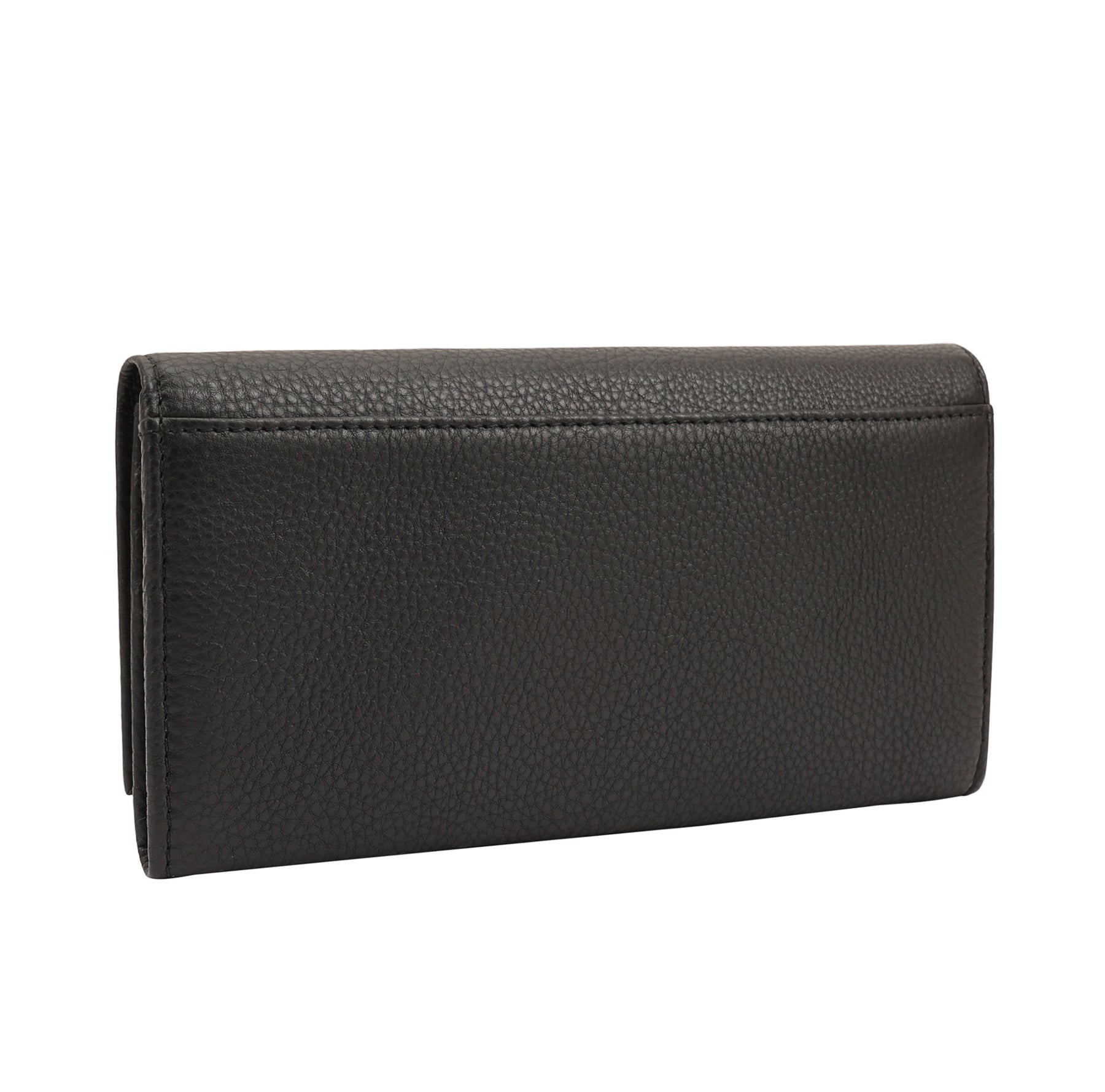 This classic leather flap-over purse exudes timeless elegance and practicality, crafted from soft leather for a luxurious feel. It features multiple card slots, a full-size note section, and a central zipped pocket for organized storage. The magnetic flap is adorned with an elegant metal logo plate, adding a touch of sophistication. Presented in a stylish gift box, this purse makes an ideal gift or a chic personal accessory. D: 2.5cm, W: 19cm, H: 10cm