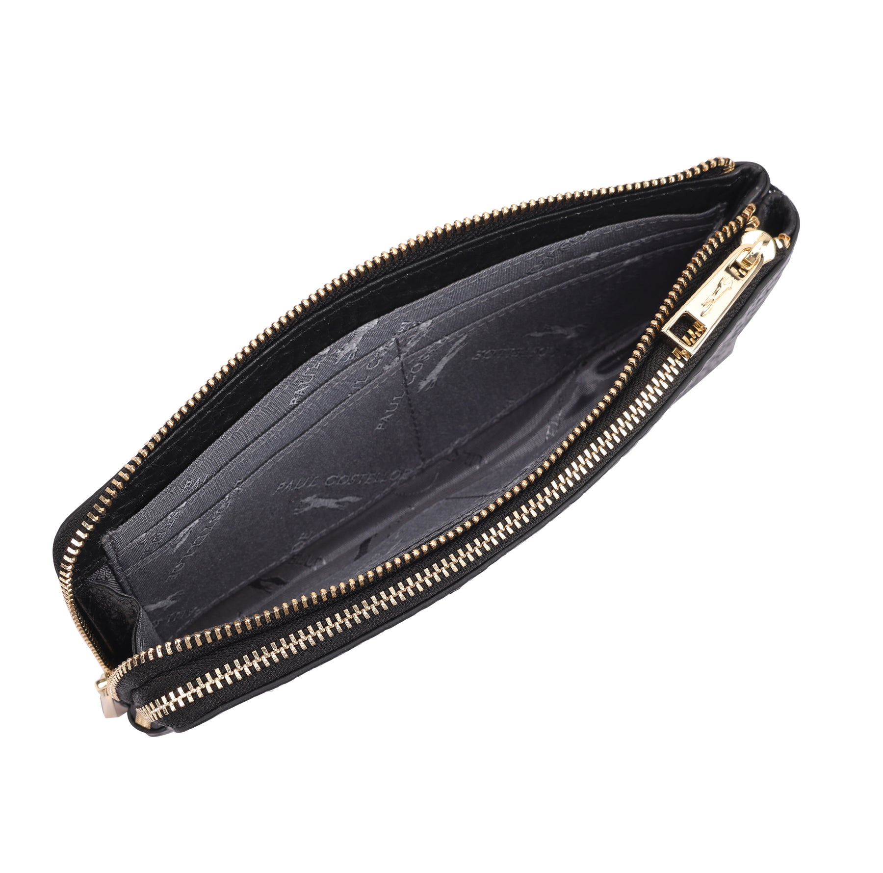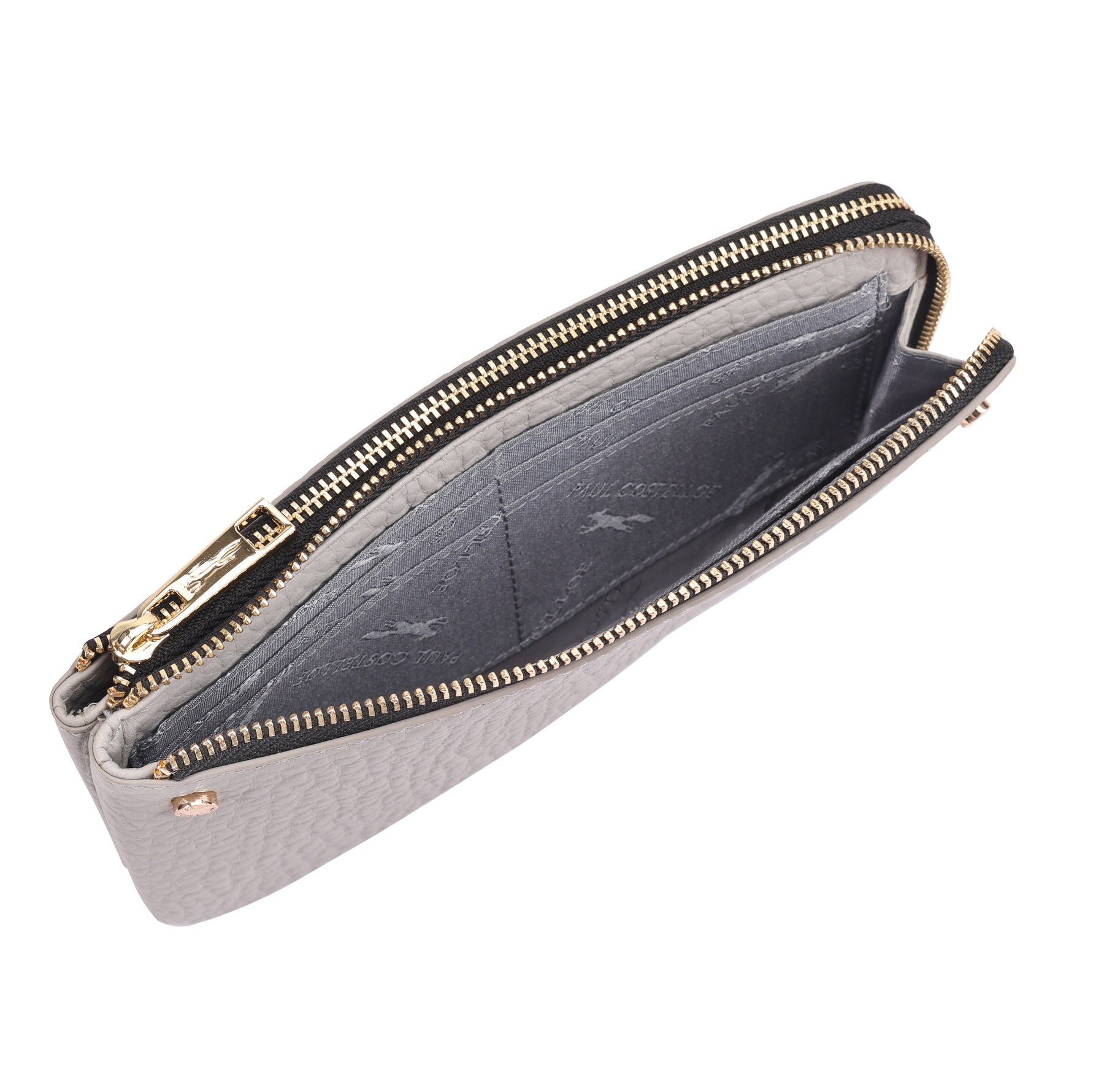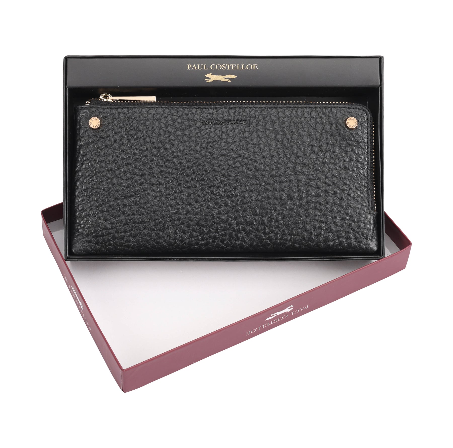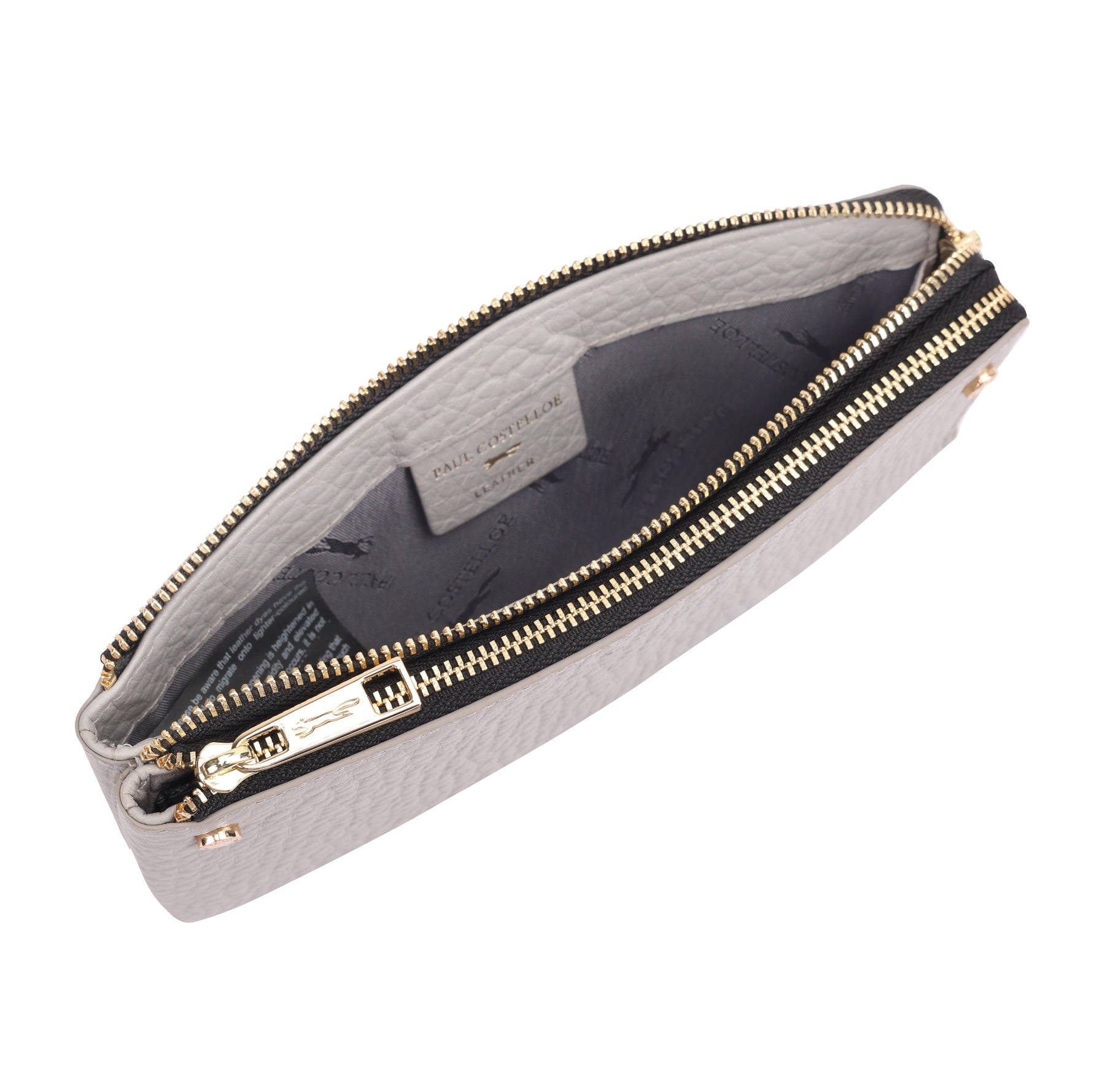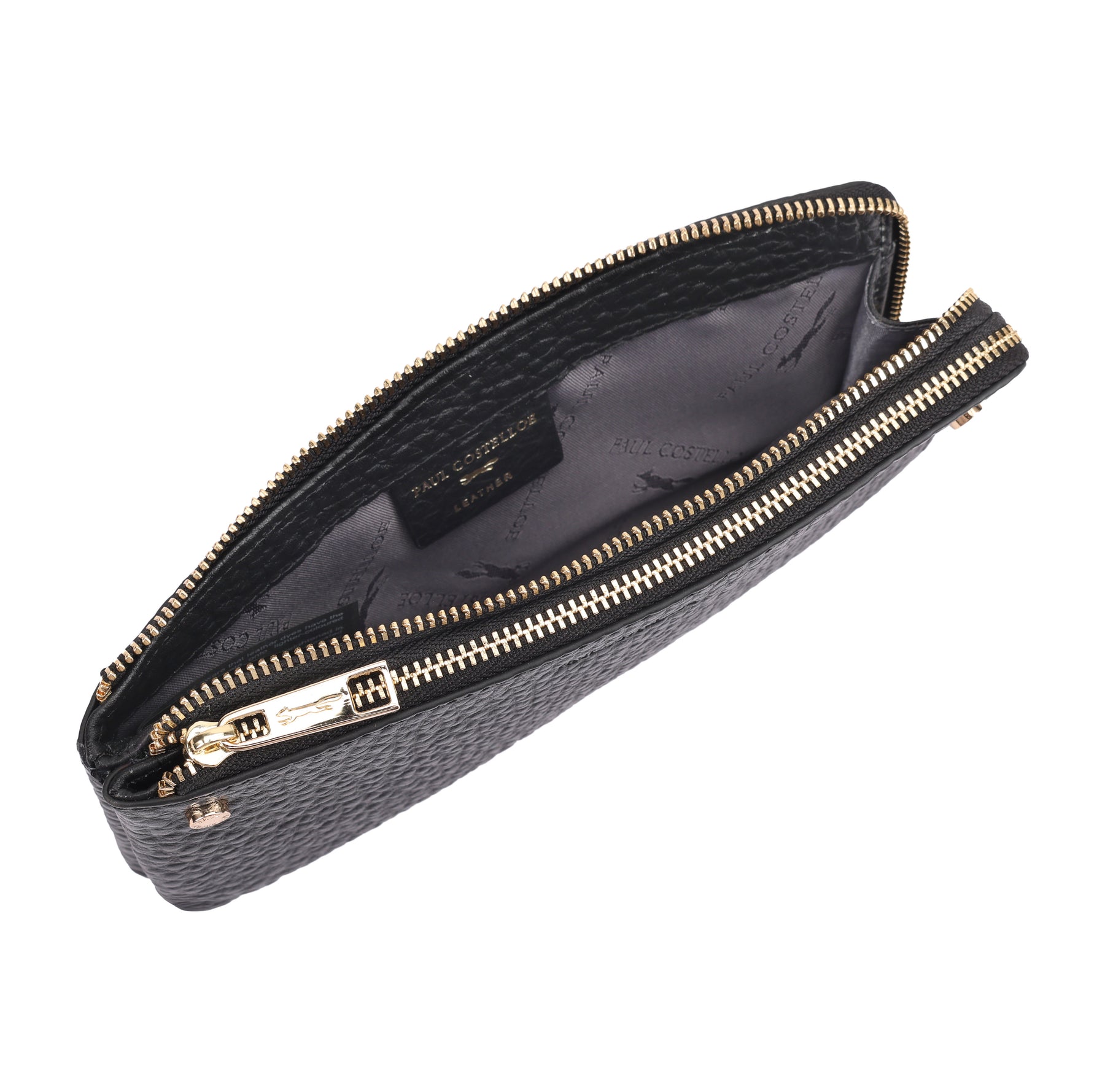 This sleek double-zipped leather purse is perfect for holding your small essentials and travel makeup. Inside, it features an internal wall with card slots to keep your cards organised and easy accessible. Crafted from soft pebbled leather, it's easy to fit into any of your bag and effortless to carry. Presented in a gift box, it's a stylish and practical companion. D:2.5cm W:20cm H:10.5cm