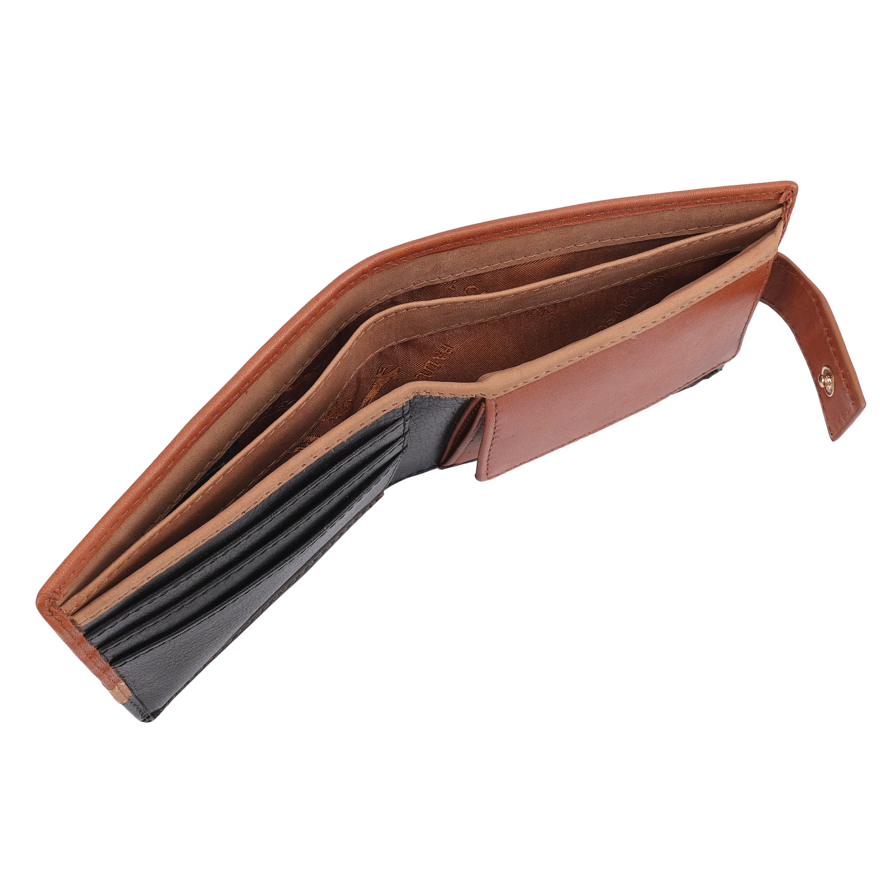 PERRY- a versatile leather wallet designed for everyday practicality, featuring multiple card slots, a spacious note compartment, and a secure coin pocket to keep your essentials organized. Crafted in a classic bi-colour design, it is neatly secured with a buttoned tab for added safety and convenience. Durable, stylish, and functional, this wallet offers great value—making it an ideal choice for personal use or a thoughtful gift. D:2 cm W:12cm H:9.7cm