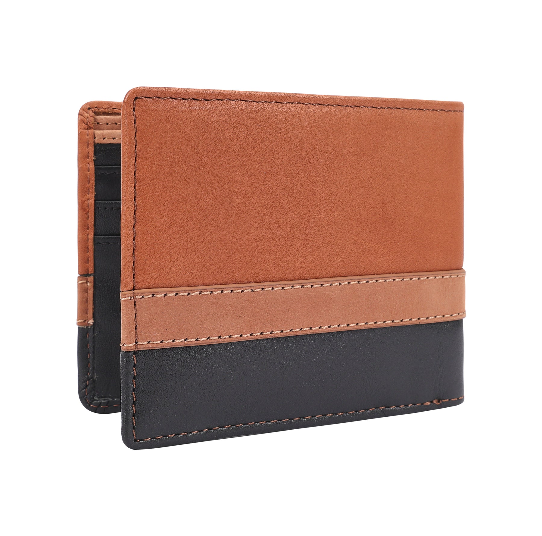 A smart and functional leather wallet designed for everyday use, featuring dedicated card slots, a spacious note compartment, and a secure coin pocket to keep your essentials neatly organized. Crafted from quality leather, it showcases a classic bi-colour design accented with a distinctive outer stripe detail for a modern touch. Durable and stylish, this wallet comes presented in a branded gift box—making it perfect for personal use or gifting. D:2 cm W:11cm H:9.7cm