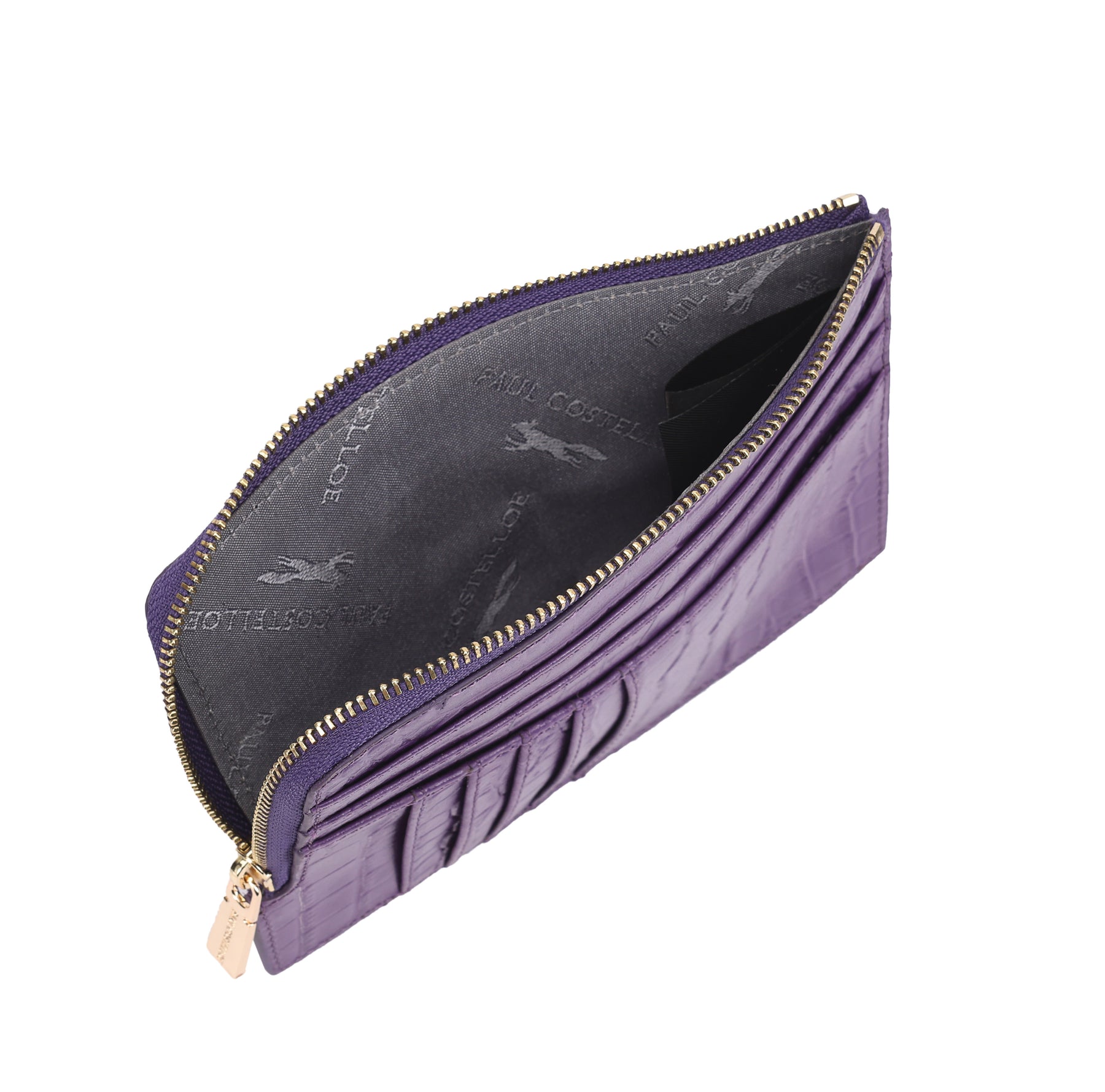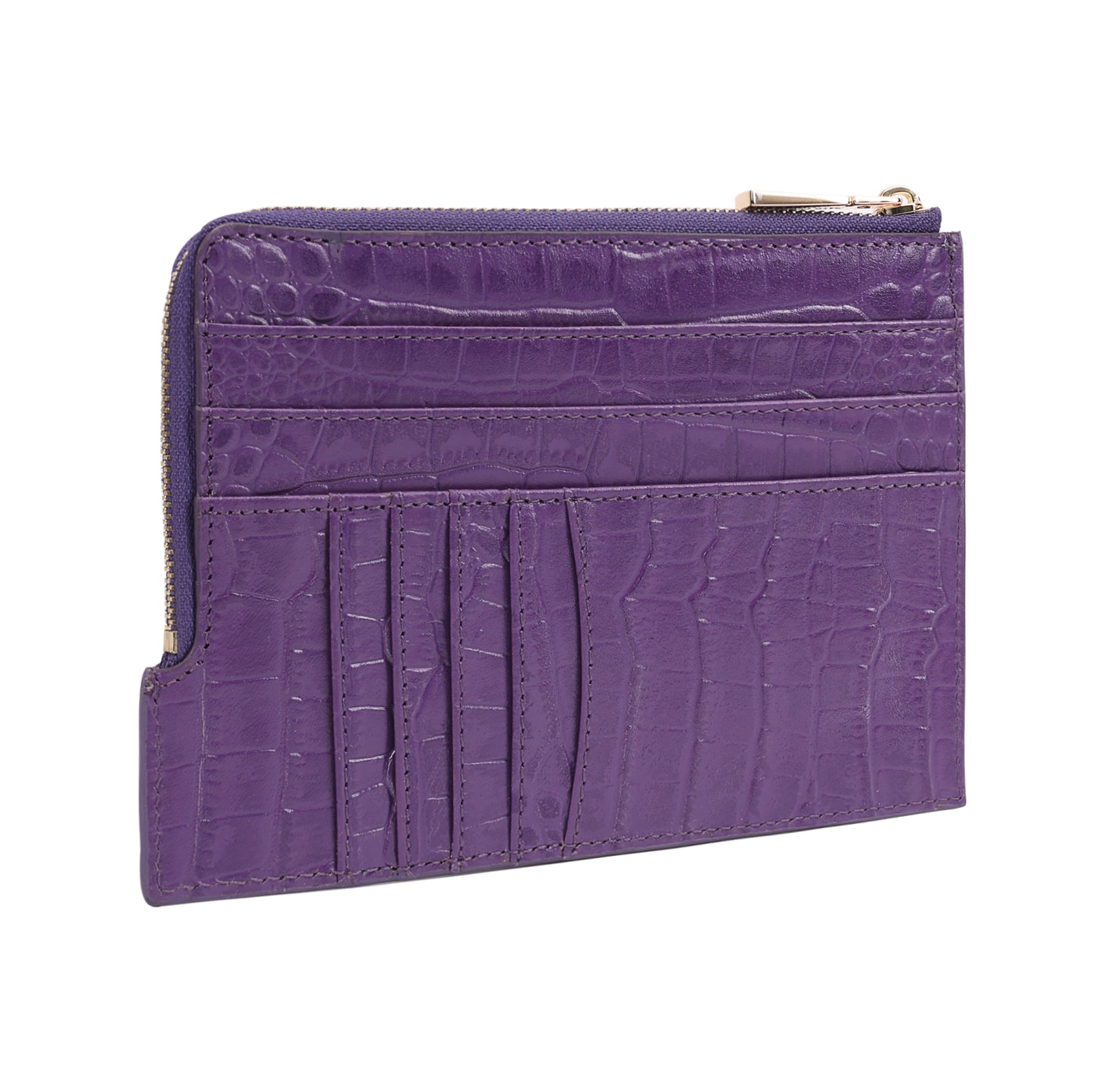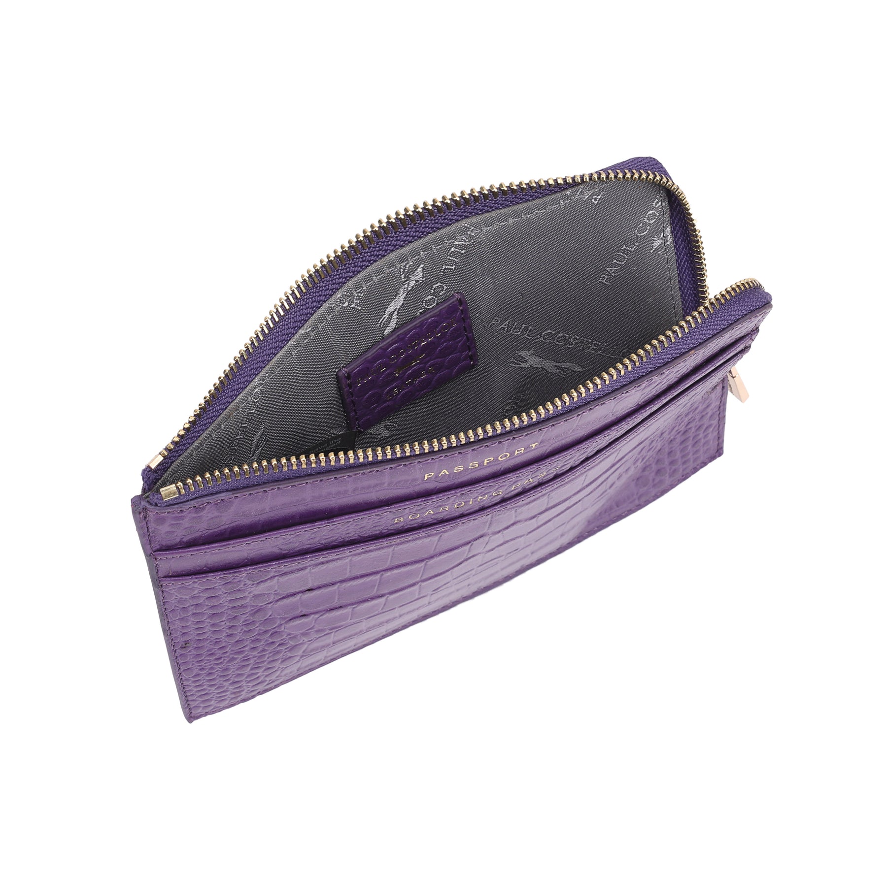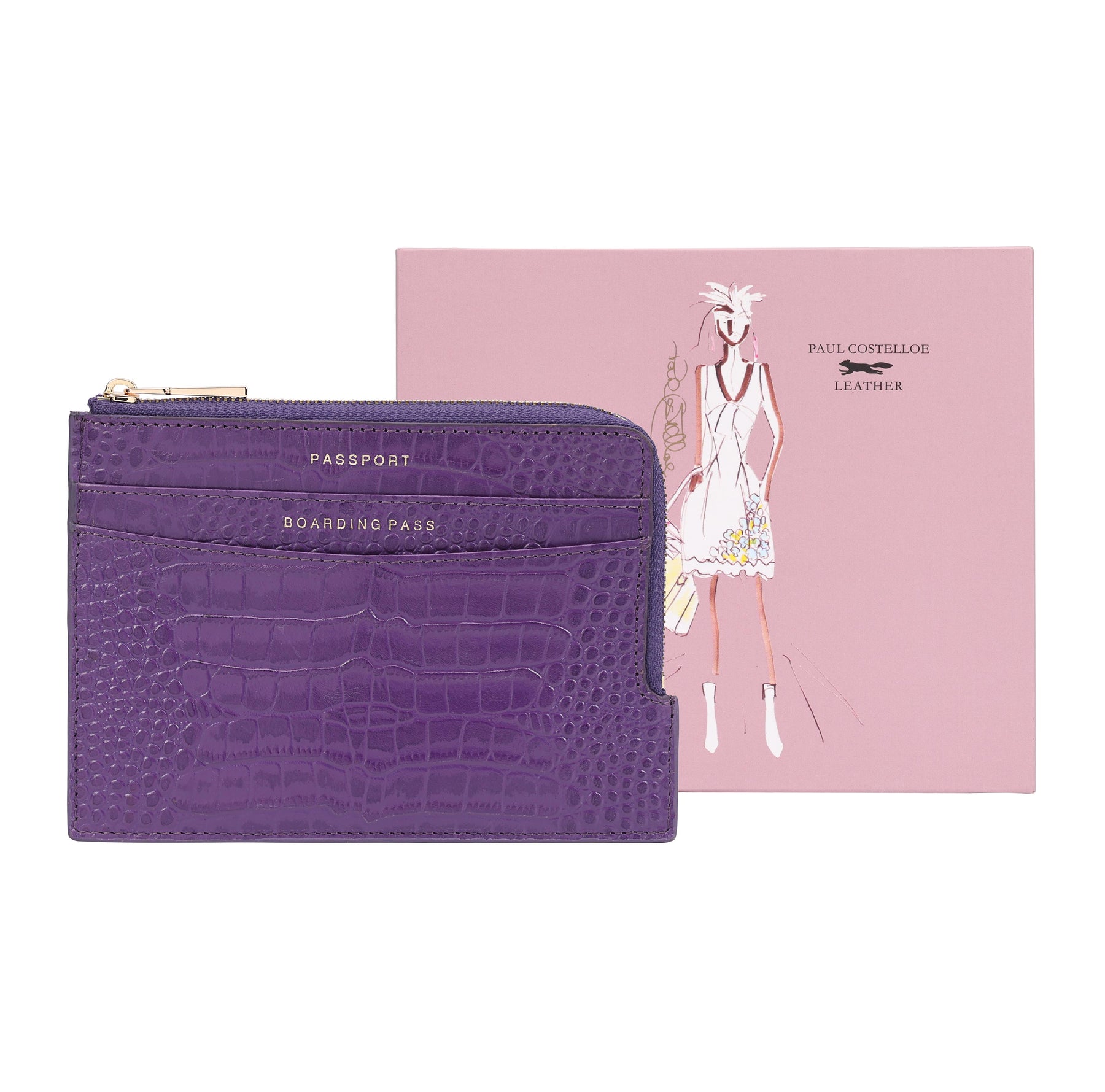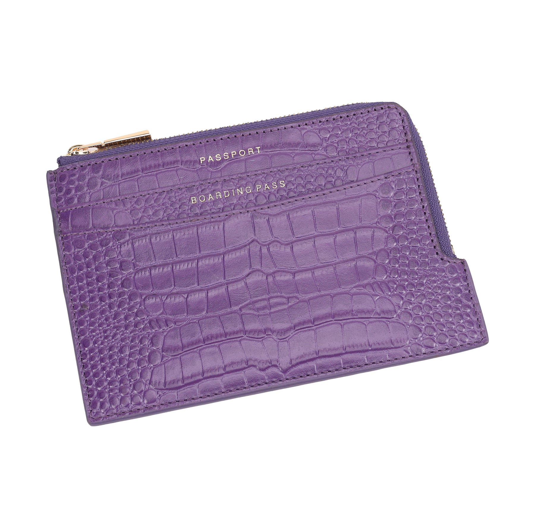 This handy leather organizer, crafted from premium croc-embossed leather, is designed to keep your travel essentials in order. It features dedicated compartments for your passport, cards, and cash, along with a slot for boarding passes or tickets. The central zipped section offers secure storage for small essentials, making it an invaluable travel companion.