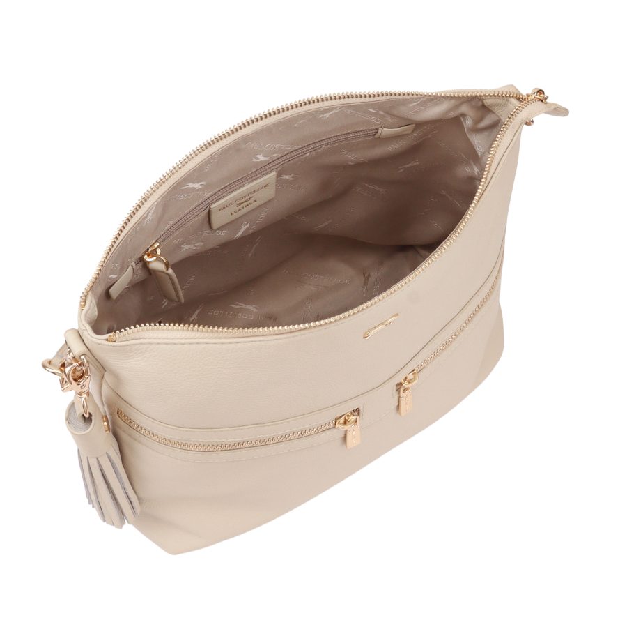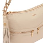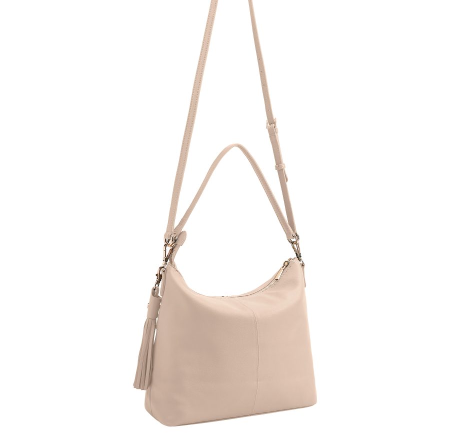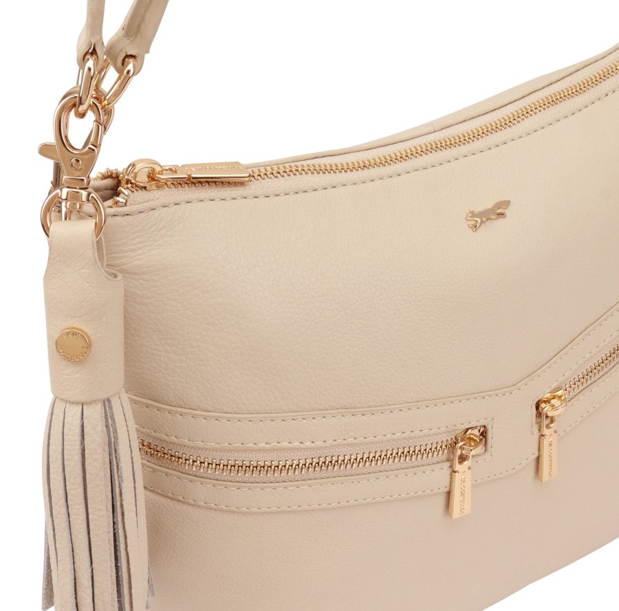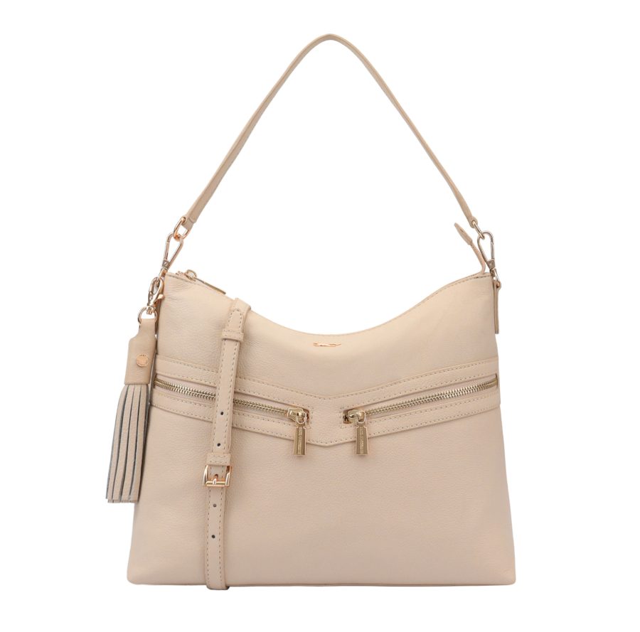AZORES is a compact multiway handbag. This handbag can be carried as a grab or a shoulder bag / crossbody. Accented with gold metal zips on its front, this stylish bag offers you secure pockets to keep your valuables safe. D:10cm W:29cm H:26cm