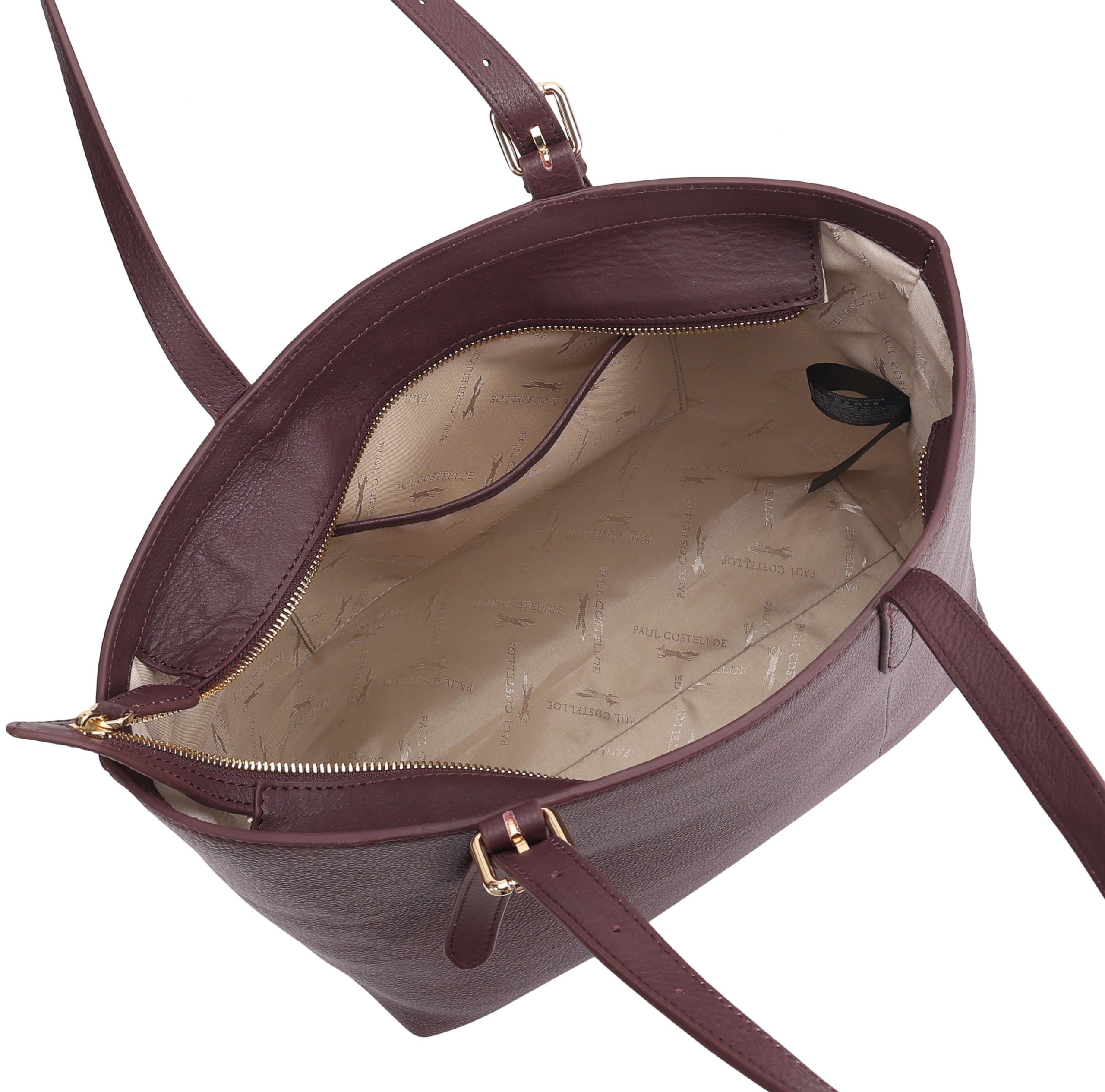 Cambridge – A refined leather tote bag with a clean, elegant silhouette, accented only by a subtle gold logo pin for a minimalist touch. The spacious interior is neatly lined and includes a zipped pocket and slip pocket for organising small essentials and your mobile. Its unique length-adjustable grab handles offer enhanced comfort and versatility. Expertly crafted from premium soft genuine leather, it’s the perfect companion for work, travel, and everyday use. D:12cm W:38cm H:28cm