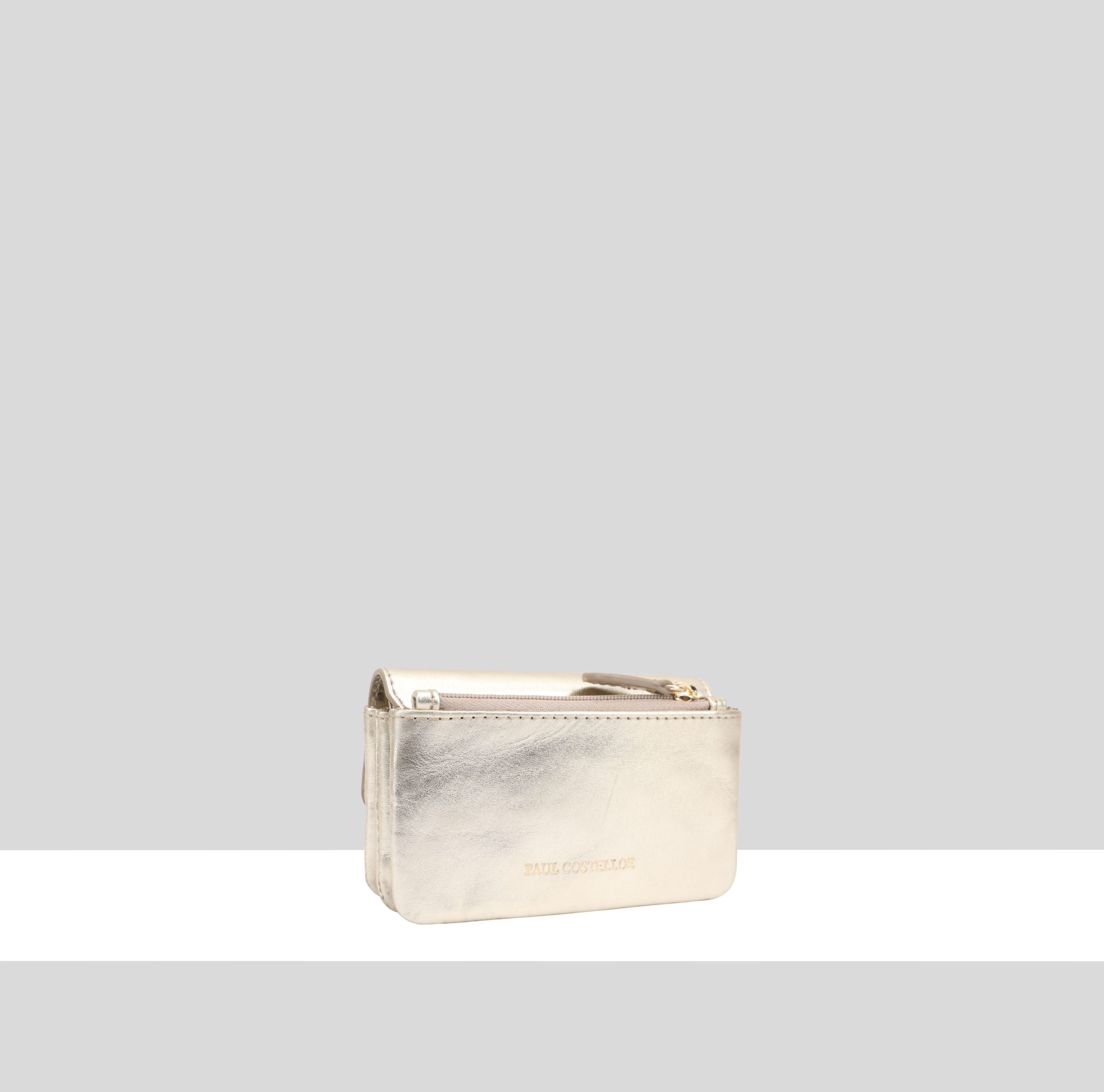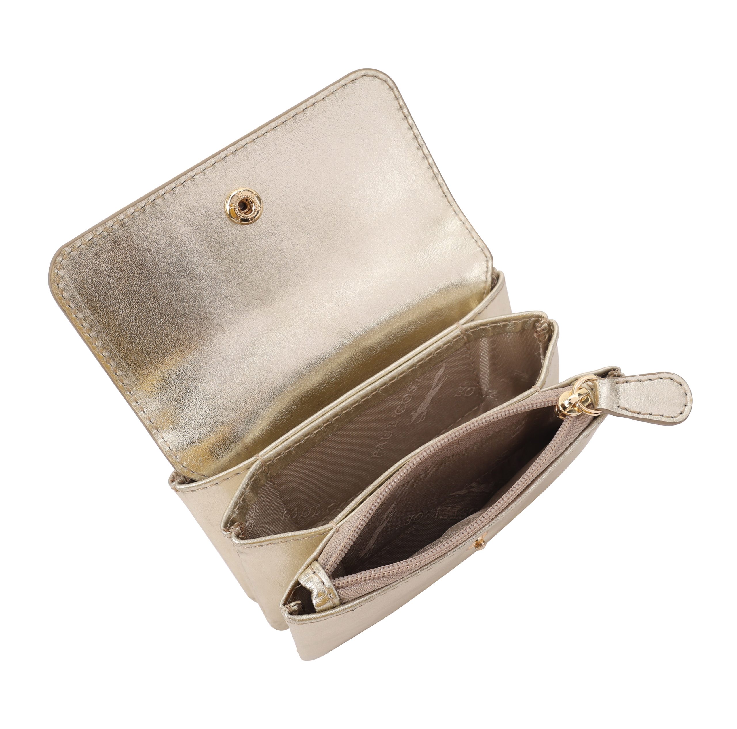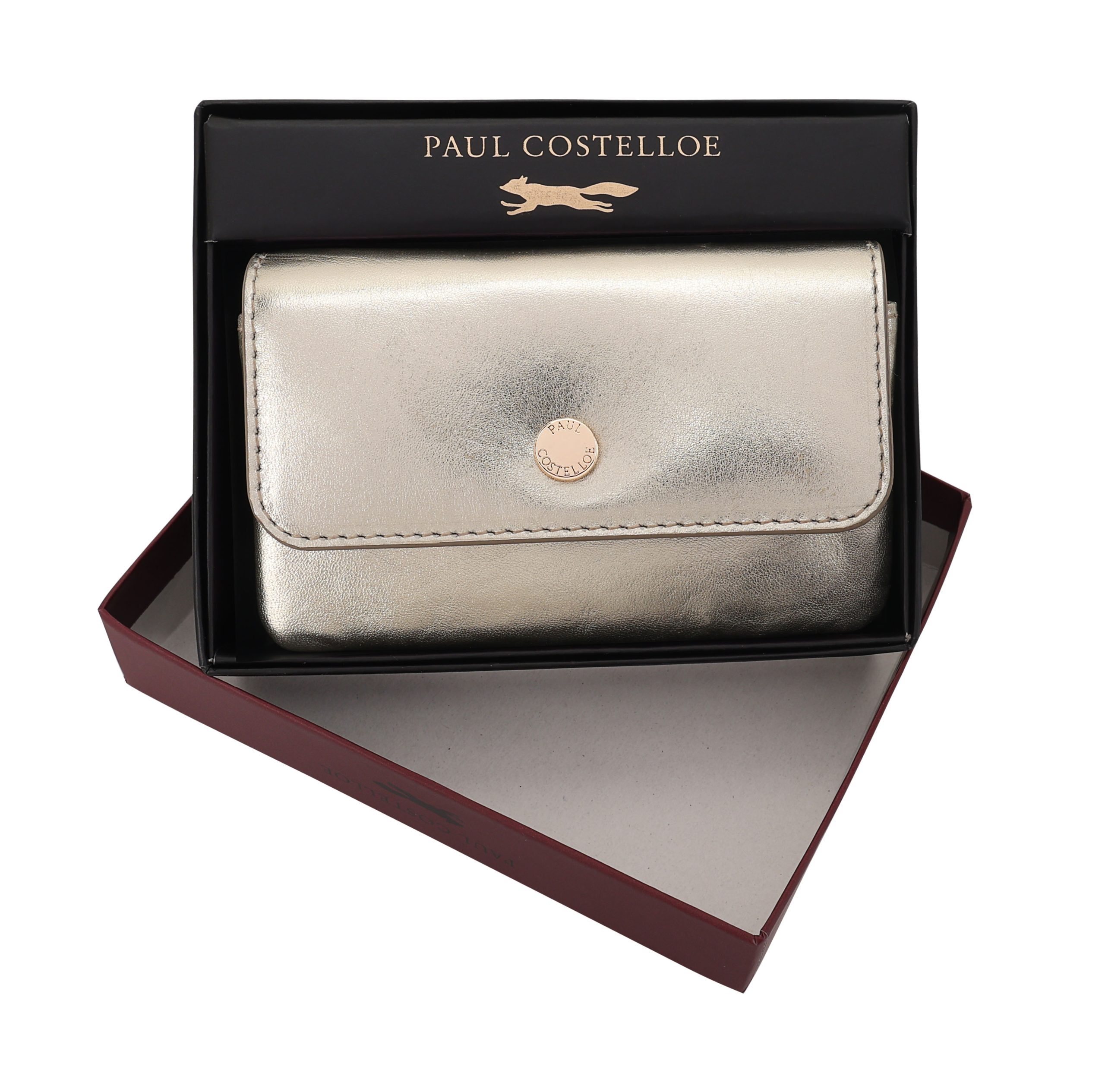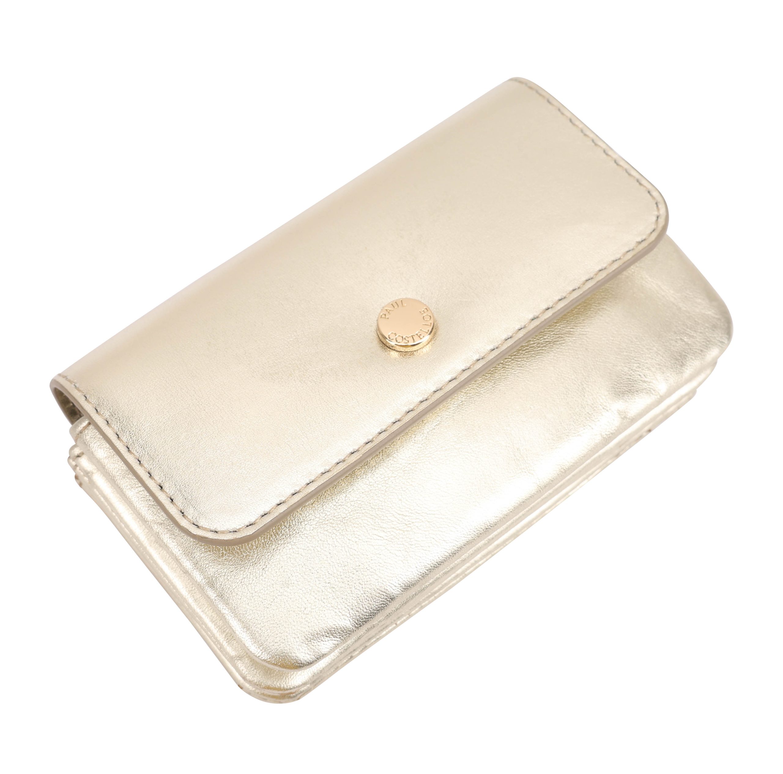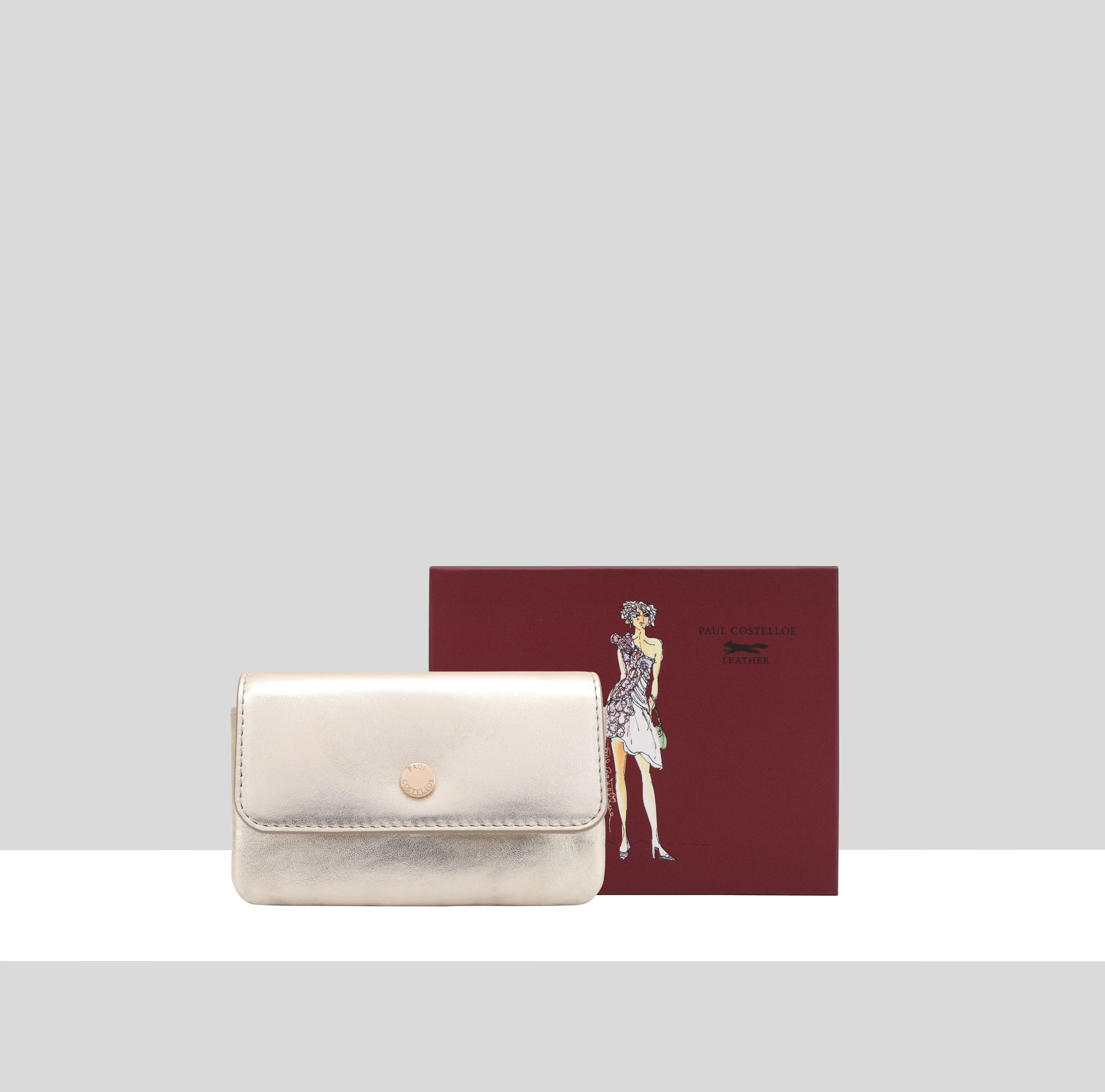 This elegant small coin and card purse, crafted from premium metallic leather, is designed for both style and functionality. Featuring multiple compartments secured by a classic buttoned flap, it keeps your essentials organized and secure. Presented in a sleek gift box, it makes a perfect treat for yourself or a thoughtful gift for someone special.