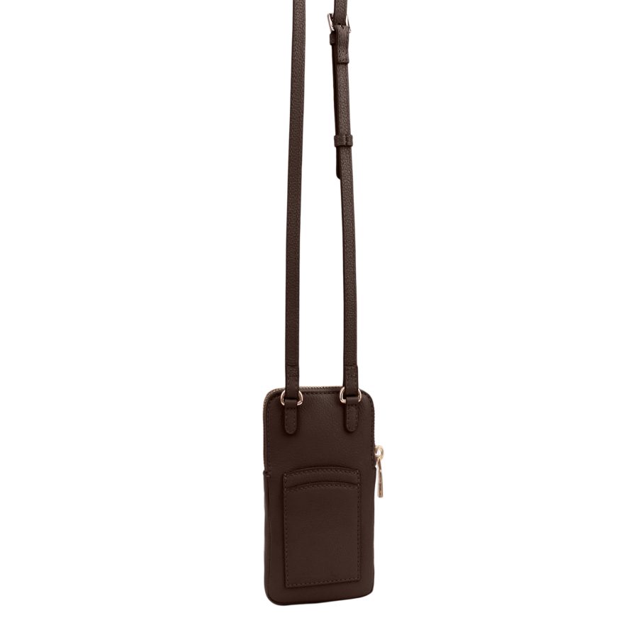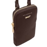 The Paul Costelloe LIMIA leather phone bag, a fusion of functionality and fashion that redefines on-the-go sophistication. Crafted from premium leather, this compact accessory is designed to cradle your essentials with style. The LIMIA features a dedicated compartment to secure your phone, back slip pockets for cards keeping it easily accessible while maintaining a sleek profile. The minimalist design is complemented by exquisite stitching and the iconic Paul Costelloe logo, adding a touch of elegance to your daily ensemble. The adjustable crossbody strap ensures comfort and convenience, making it an ideal companion for busy days and chic evenings alike. D:3cm W:10cm H:18cm