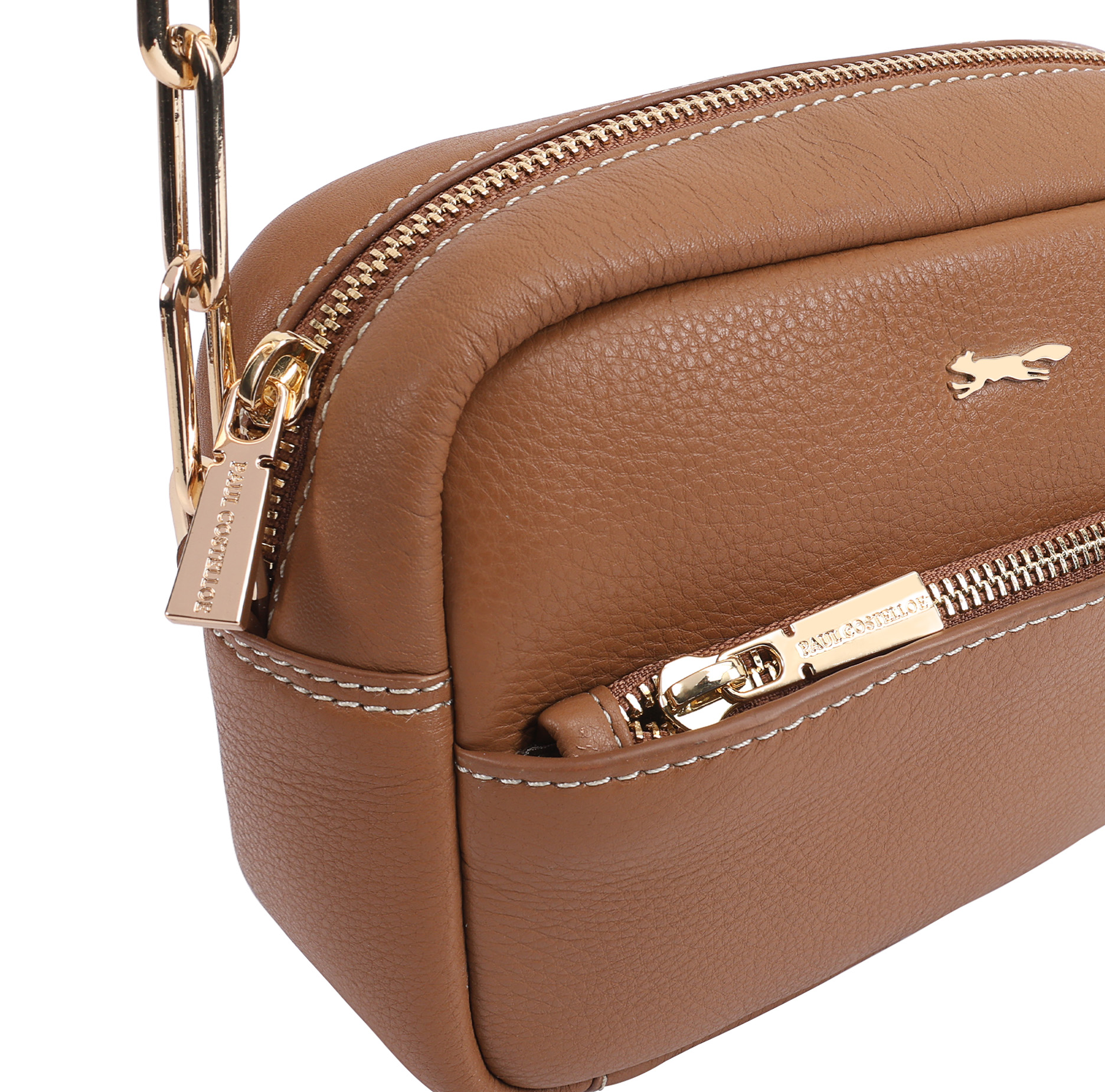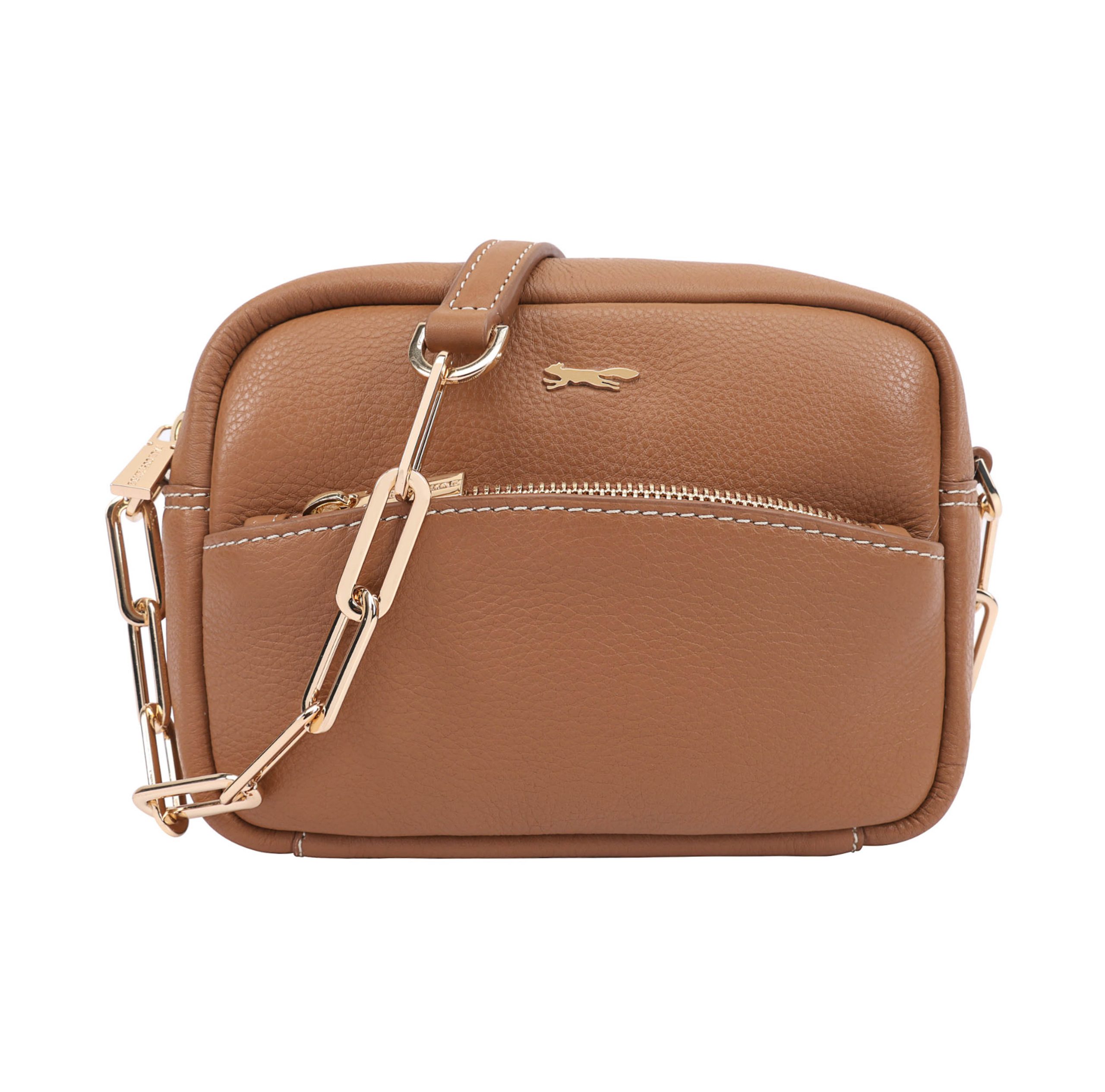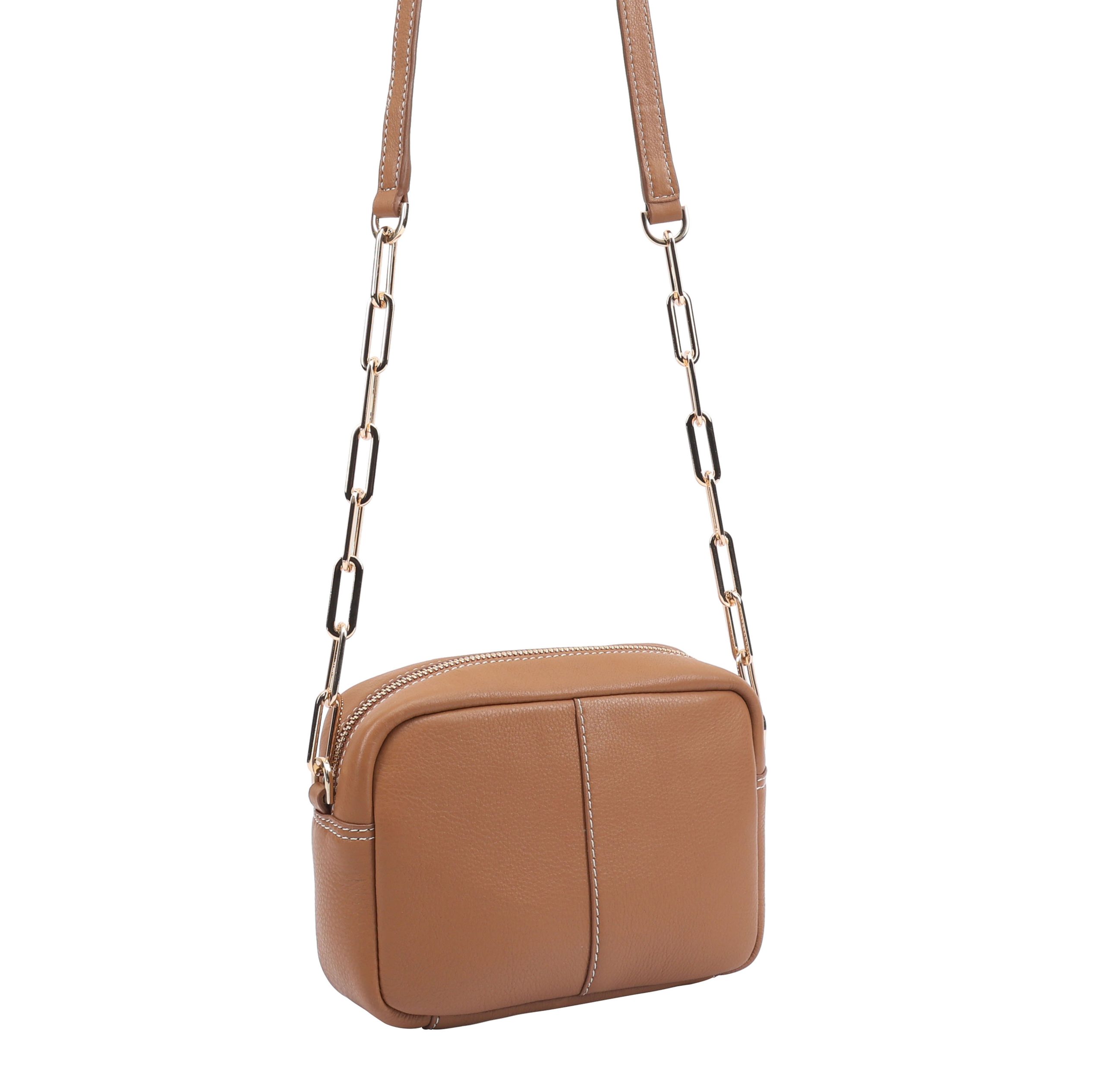 Stylish crossbody bag ‘LUKINA’ is crafted from premium grainy leather, combining durability with timeless elegance. Featuring a chic link chain shoulder strap, it offers a touch of sophistication. The bag includes a convenient front zip pocket for easy access to essentials, while the spacious interior boasts zip and mobile pockets on either side for organized storage. Finished with a sleek brand logo pin, it’s the perfect blend of functionality and refined design. D:7cm W:18cm H:13cm