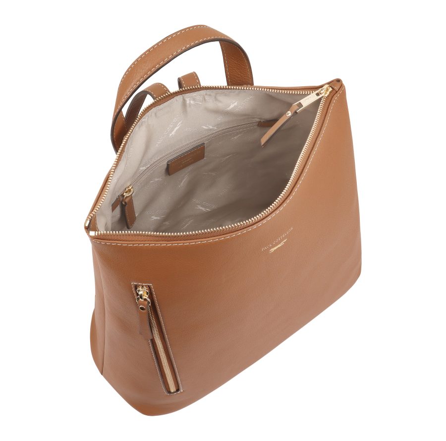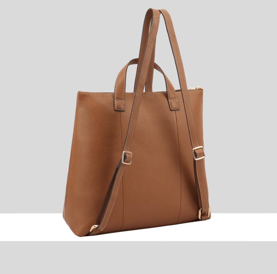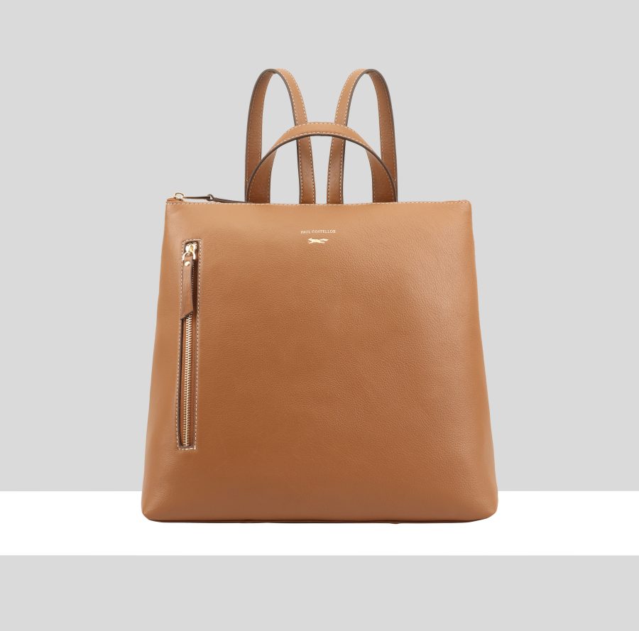 This sleek leather backpack exudes modern elegance with its minimalist design. It features a top zip closure for secure access and a smart vertical pocket on the front for quick essentials. The clean detailing is complemented by a fine brand logo, enhancing its understated style. Inside, the backpack offers a spacious main compartment with an additional zipped pocket for organized storage. The adjustable shoulder straps provide comfort and versatility, making it perfect for both casual and professional settings.