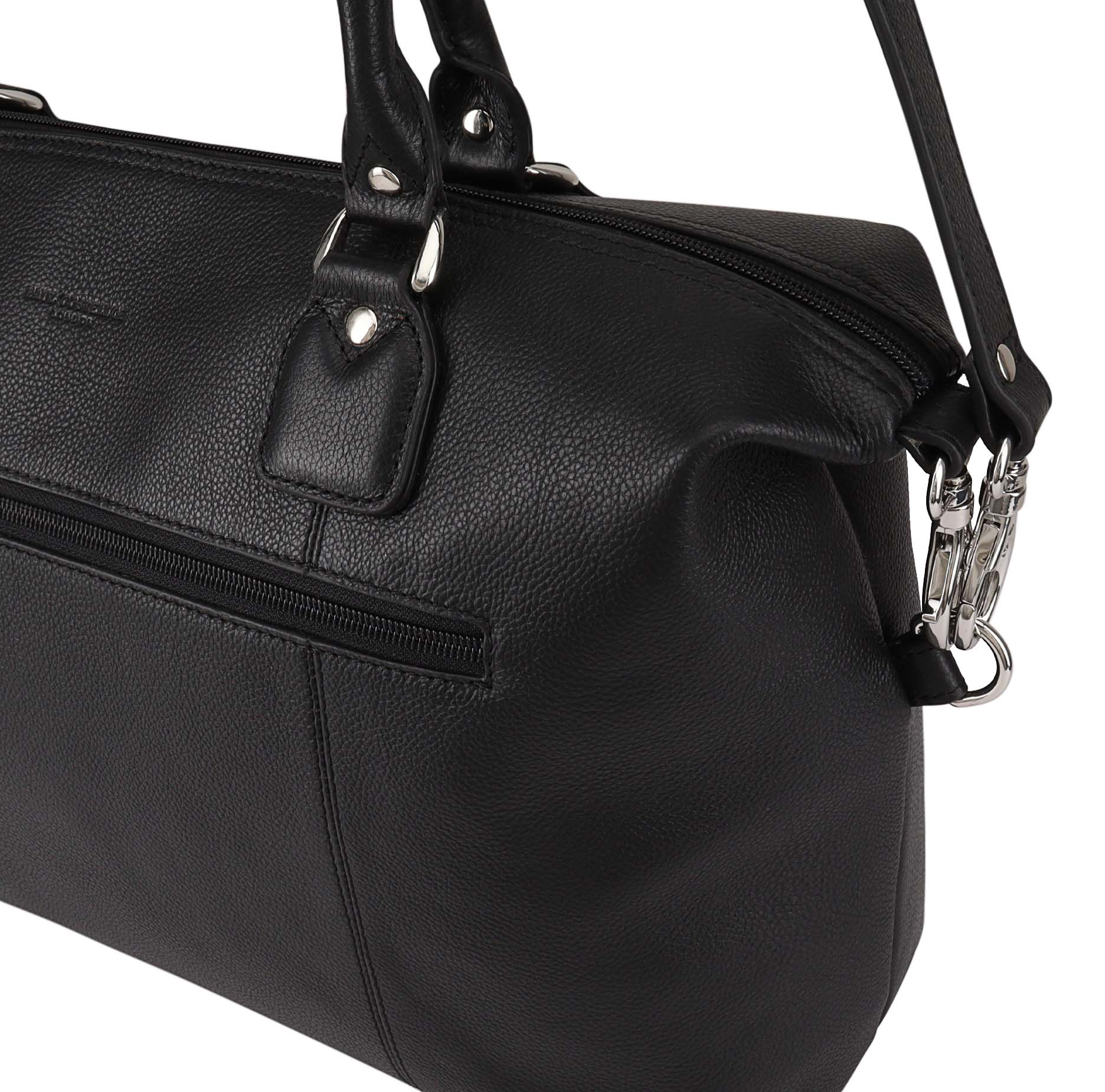 Paul Costelloe Victor Holdall Bag exudes sophistication and class. Its sleek black exterior is complemented by a spacious interior, making it an ideal choice for business trips, weekend getaways, or daily use. The bags interior includes a large main compartment and smaller pockets, perfect for organising your belongings.